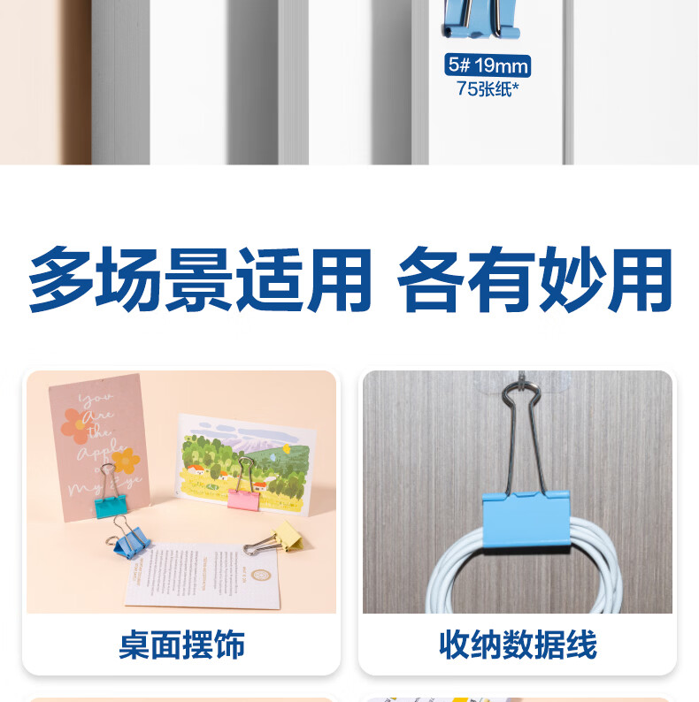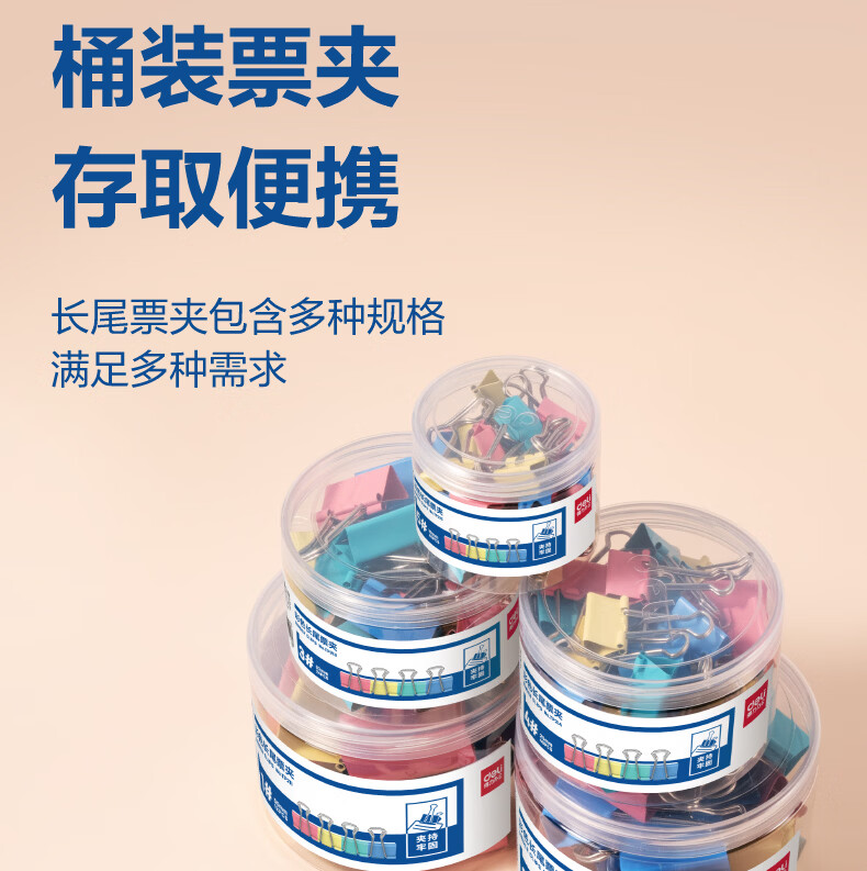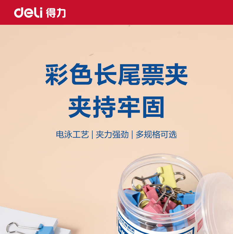 得力(deli)票夹19mm40只彩色长尾票夹燕尾夹小号大号书夹办公用品资料夹凭证夹票据夹试卷夹科目夹TP215