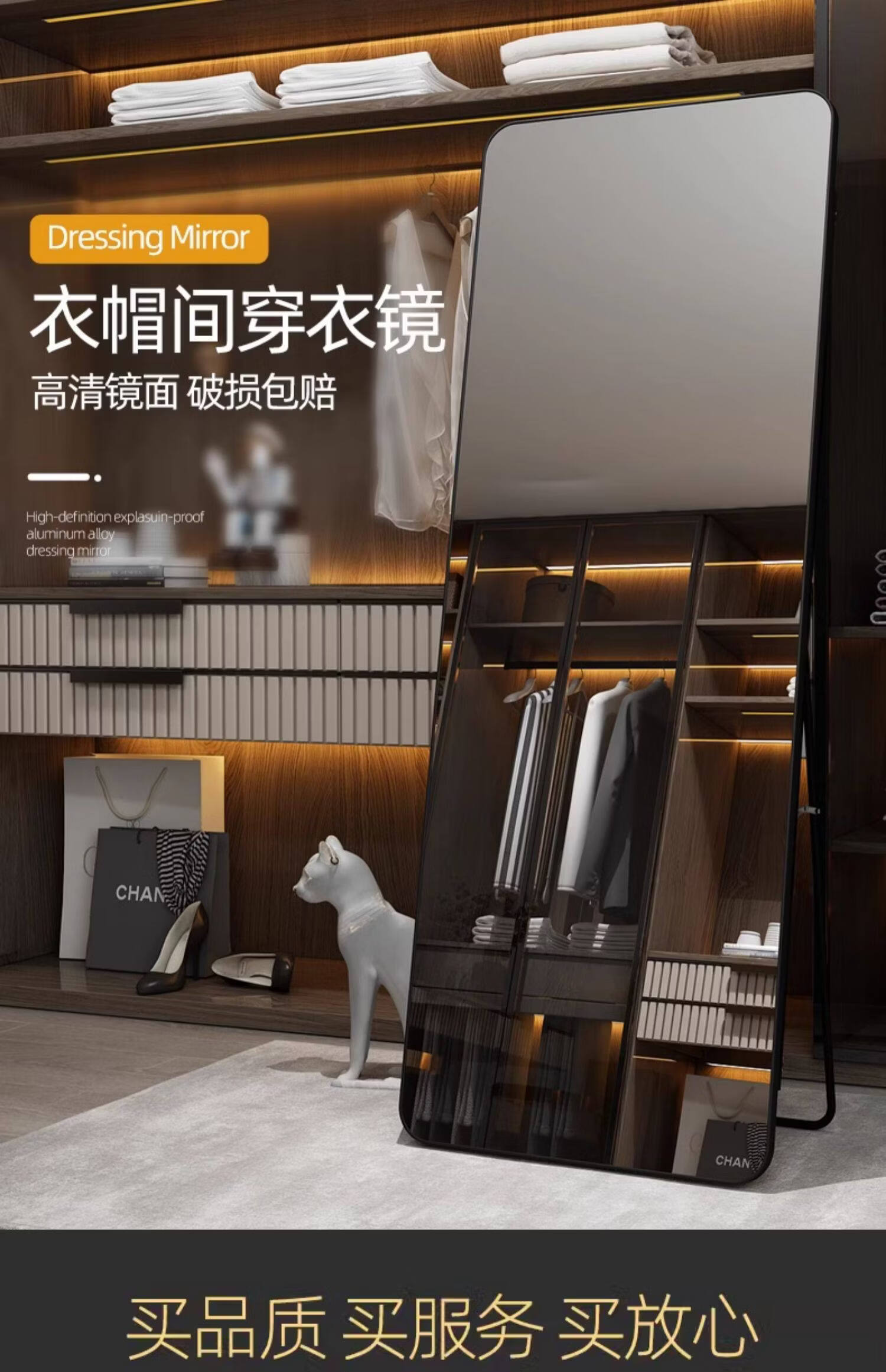 诗元衣帽间镜子落地全身镜穿衣镜女生卧室入户更衣家用壁挂立体试衣镜 【铝合金边框】经典黑 40*150【高清防爆+破损免费补发】