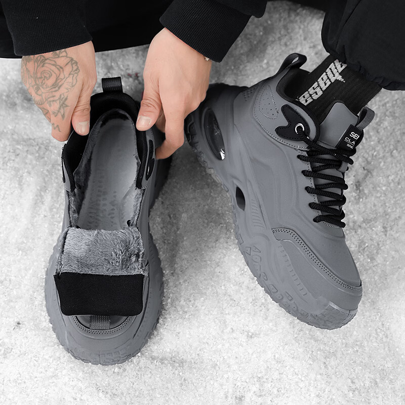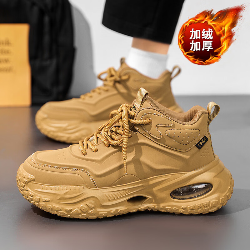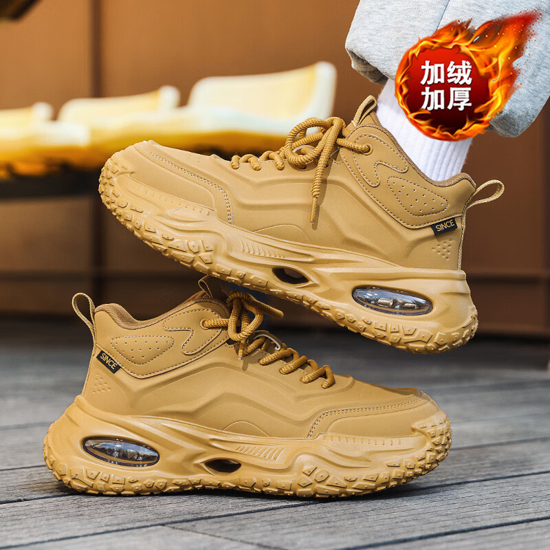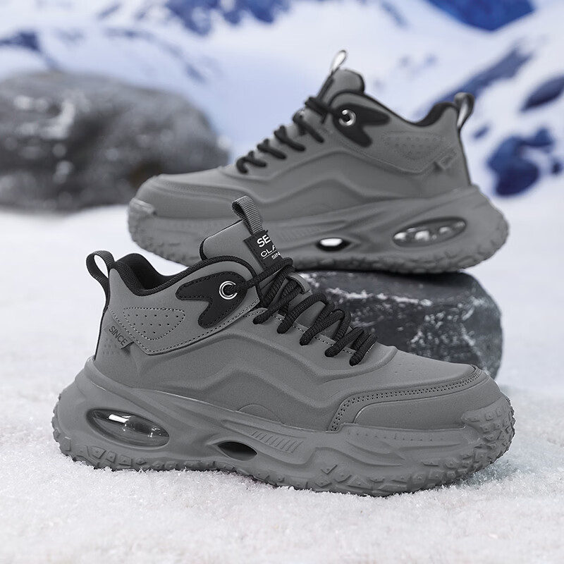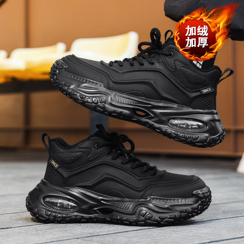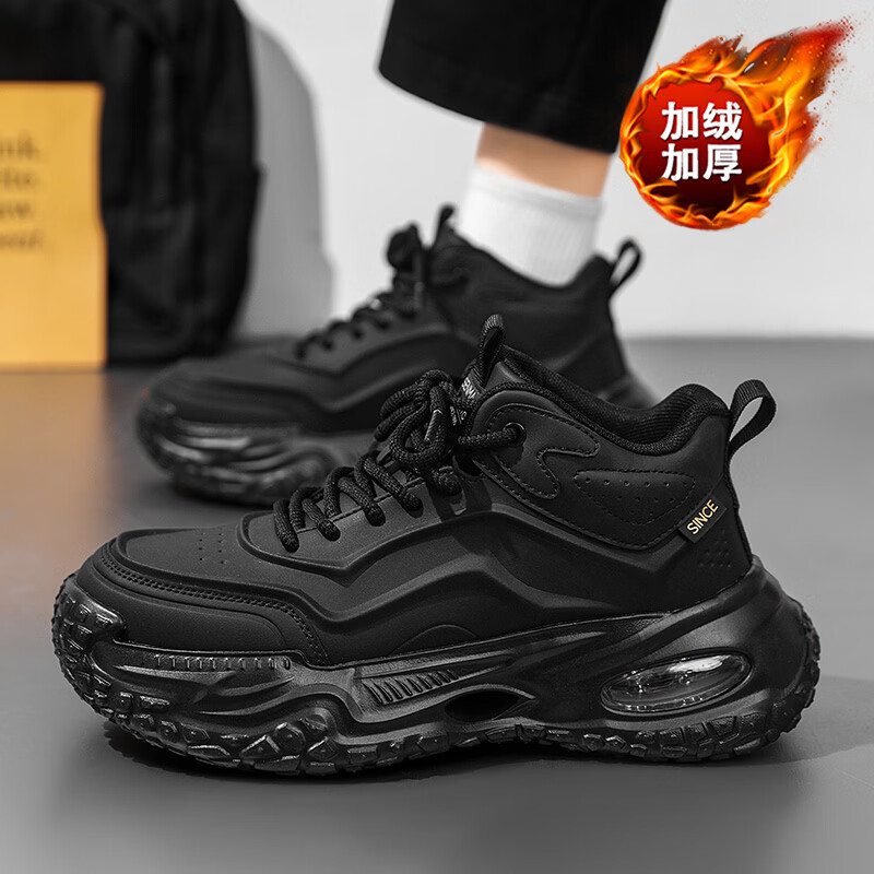 森馬男鞋春季加绒保暖棉鞋男士气垫减震休闲运动鞋男士厚底增高老爹鞋 黑武士【基础款】 41 标准码数/现货秒发