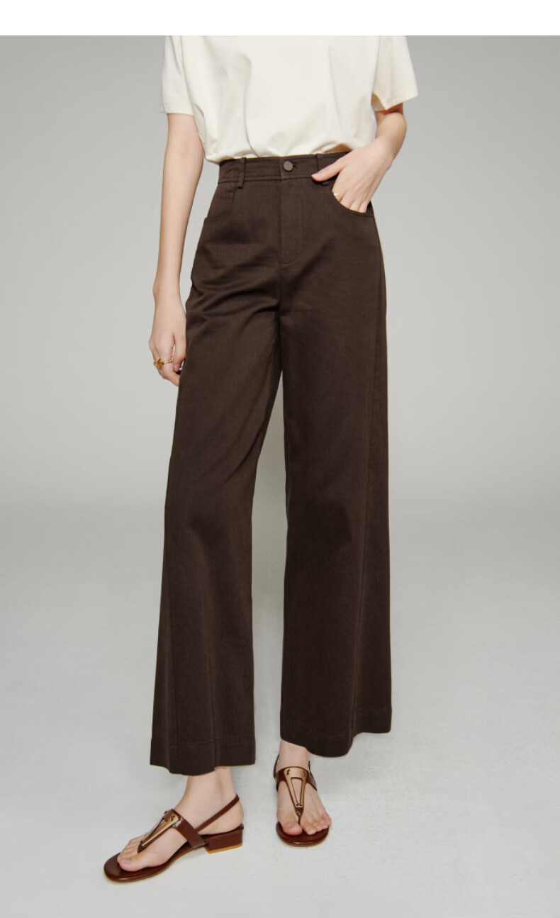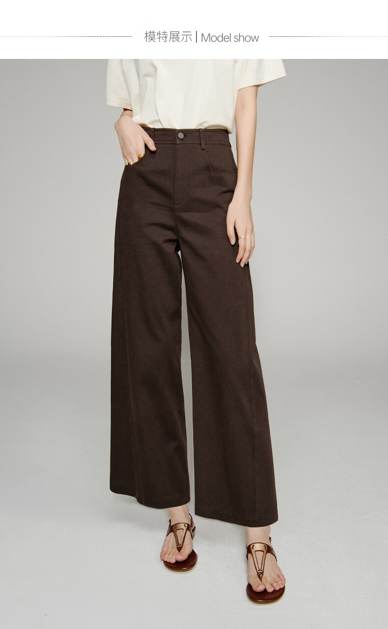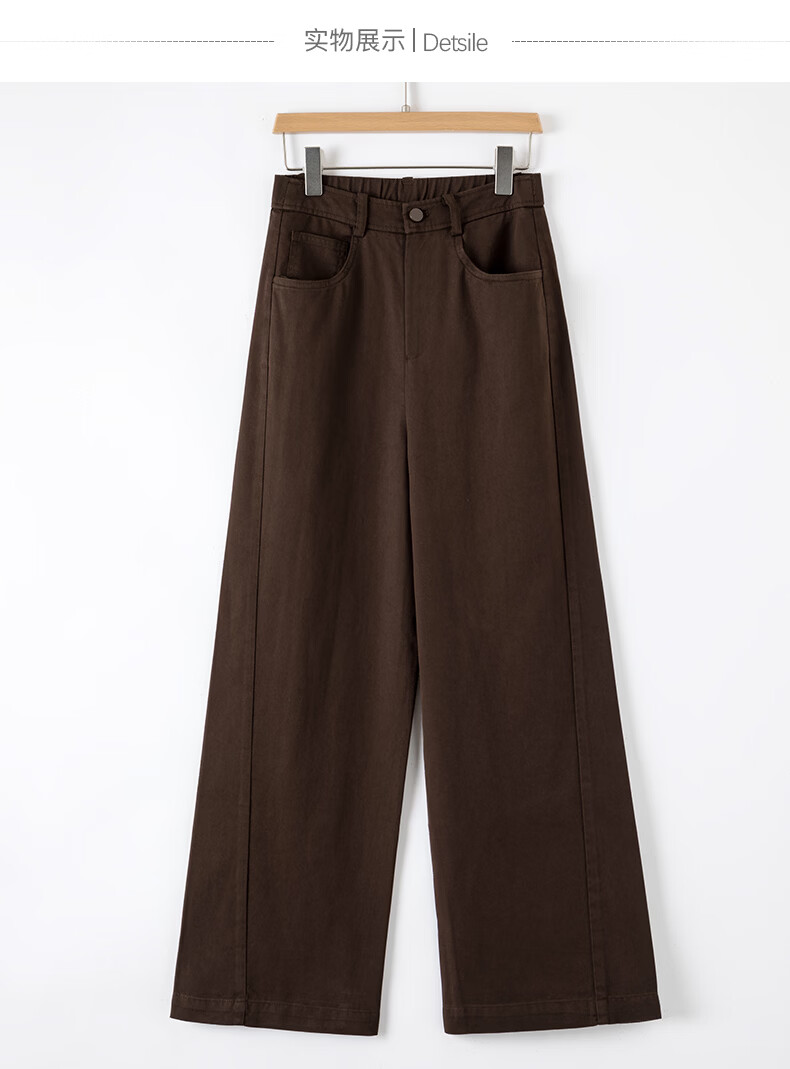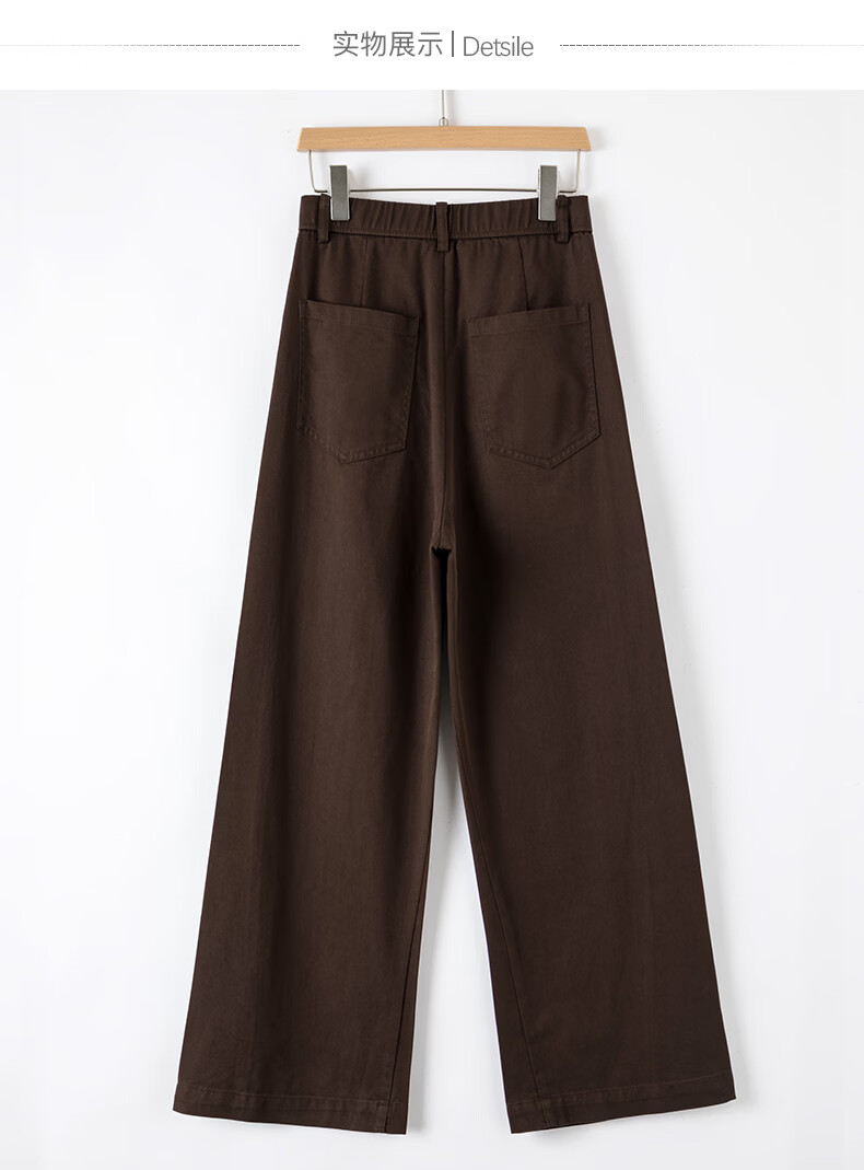 晚白【新品】2026春款休闲棉料裤子莱赛尔亲肤舒适直筒阔腿裤女 咖啡色 27