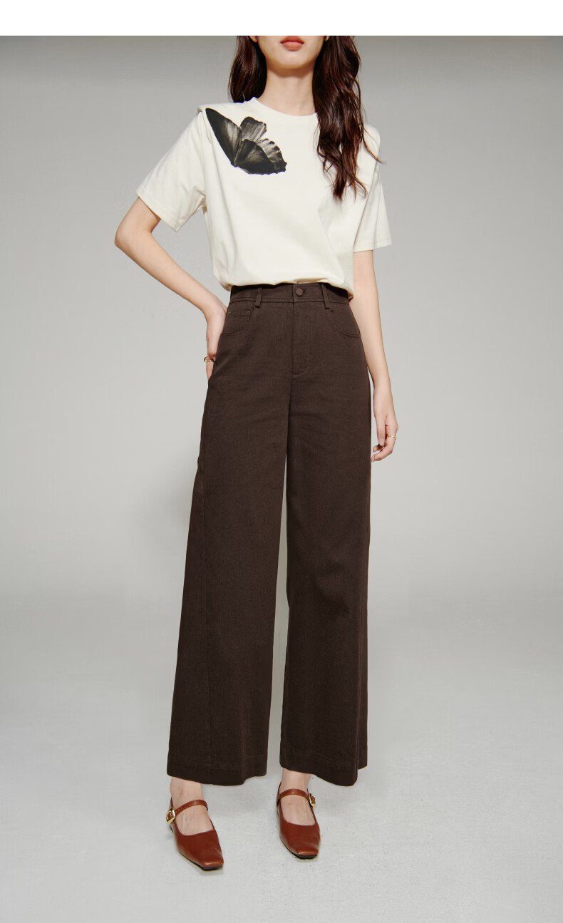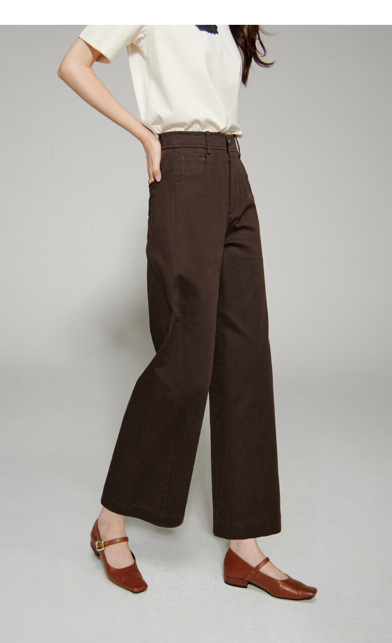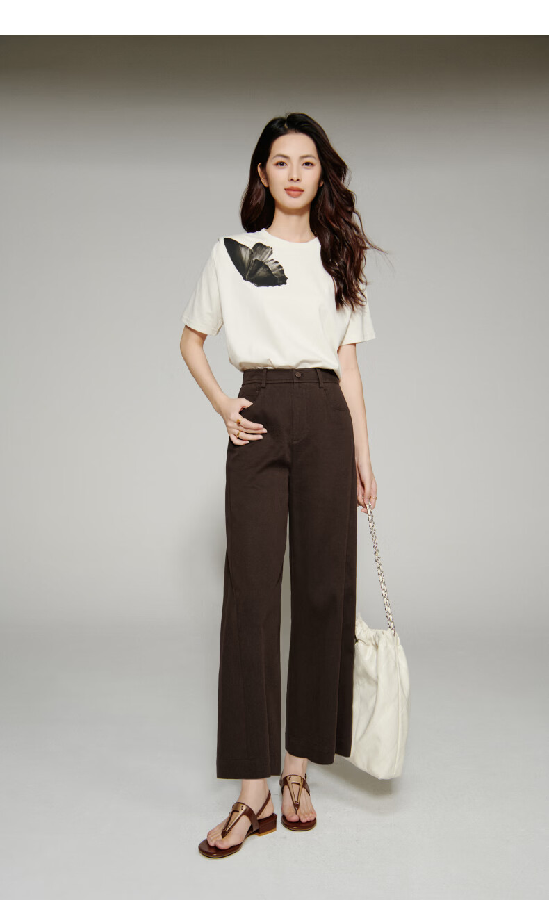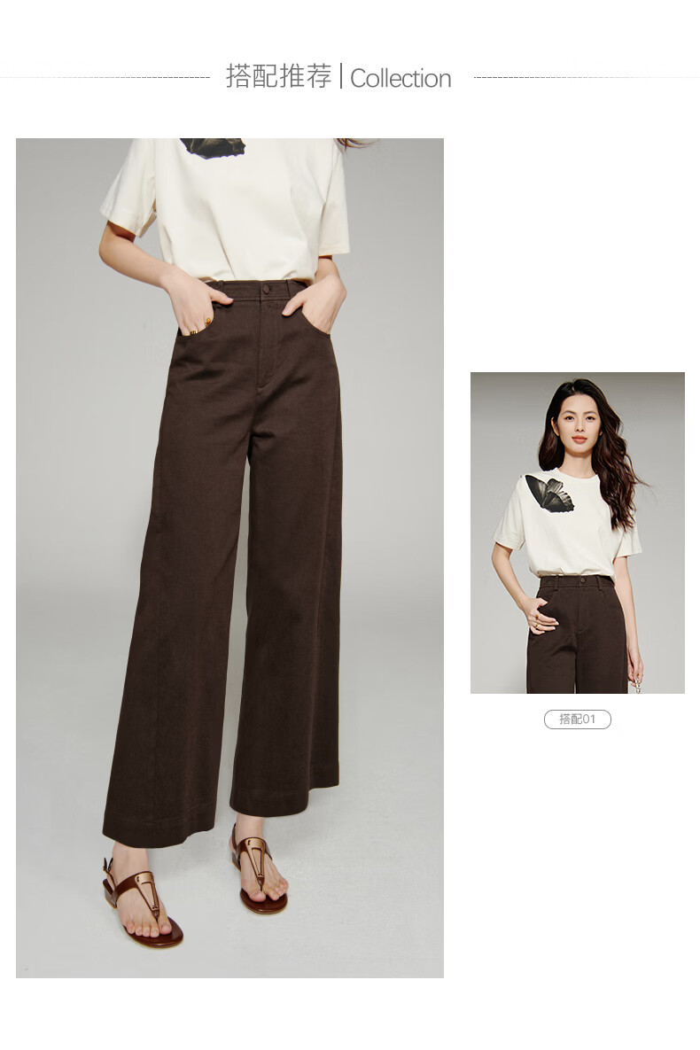 晚白【新品】2026春款休闲棉料裤子莱赛尔亲肤舒适直筒阔腿裤女 咖啡色 27