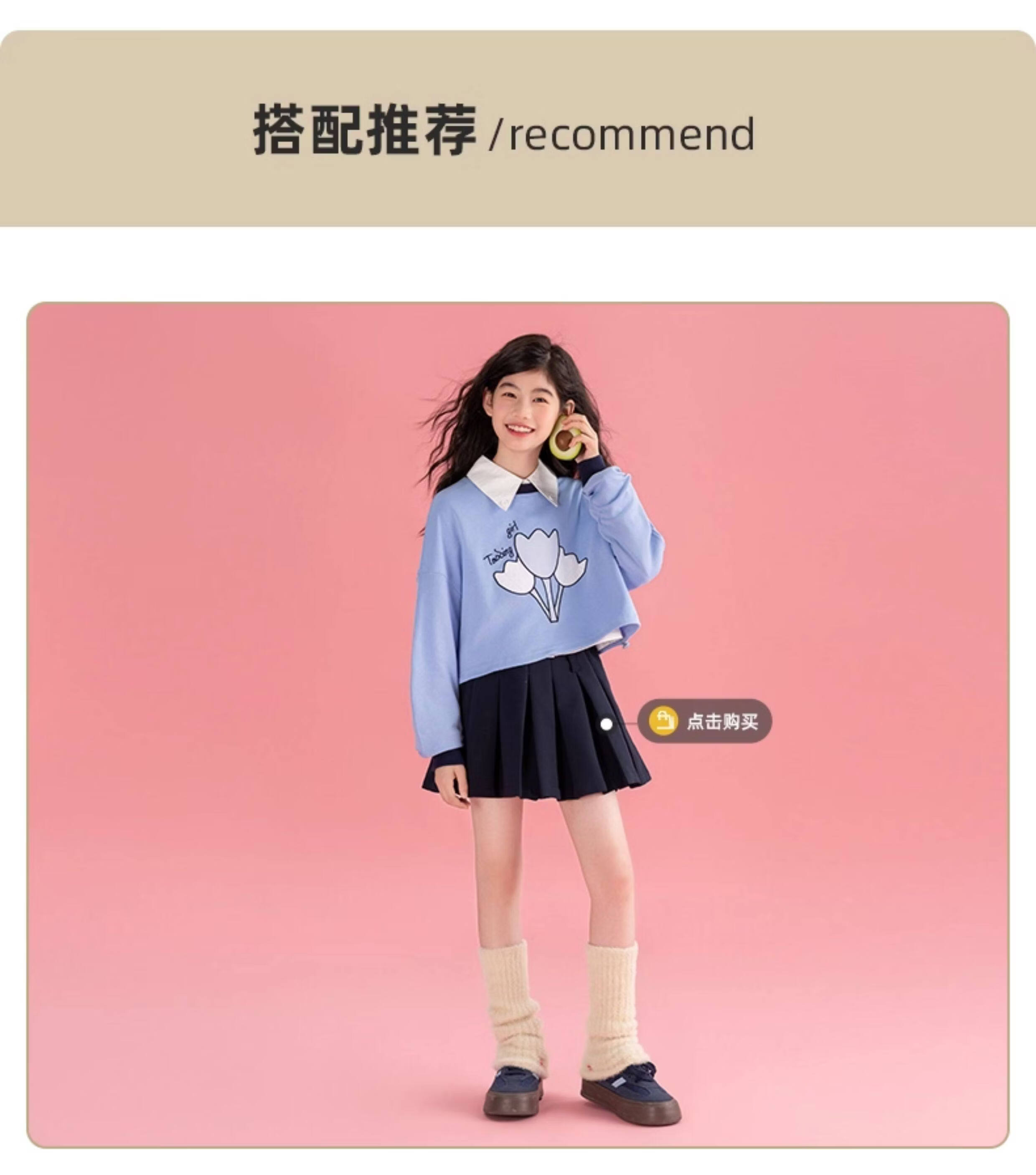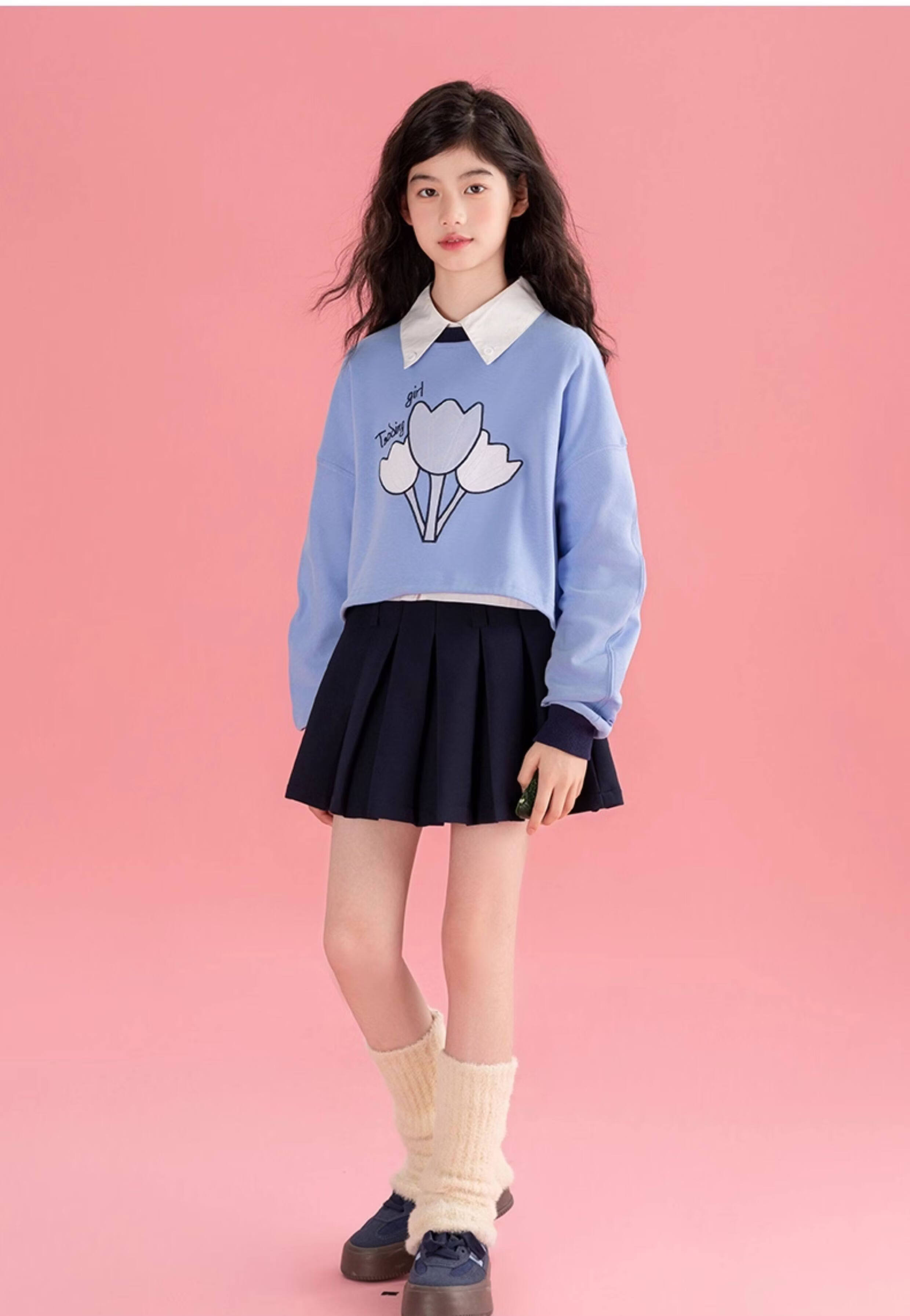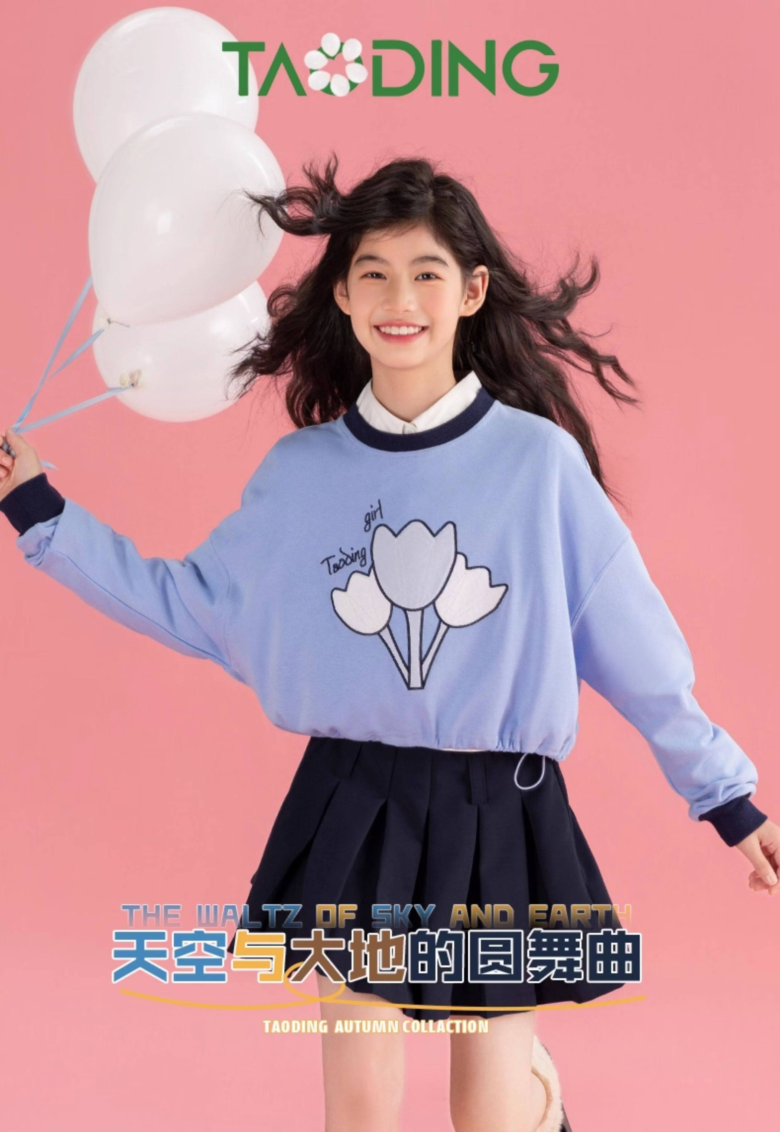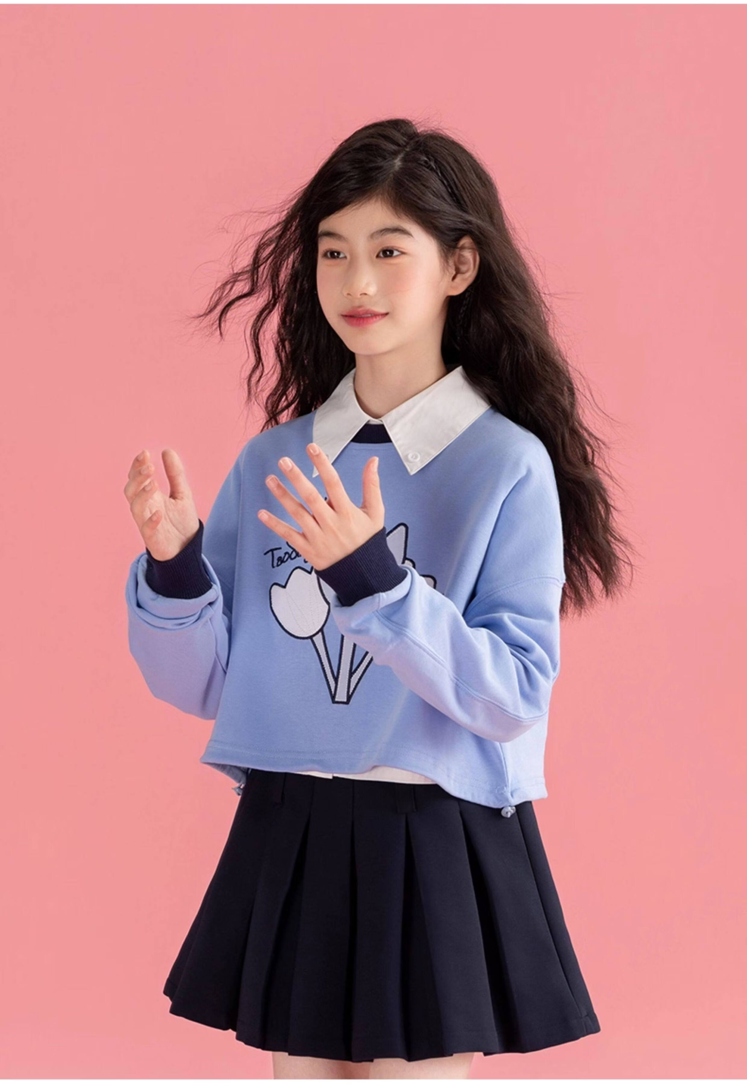 淘町女童卫衣短款气质春秋中大童小清新贴布绣收腰打底百搭韩版 浅蓝色 120
