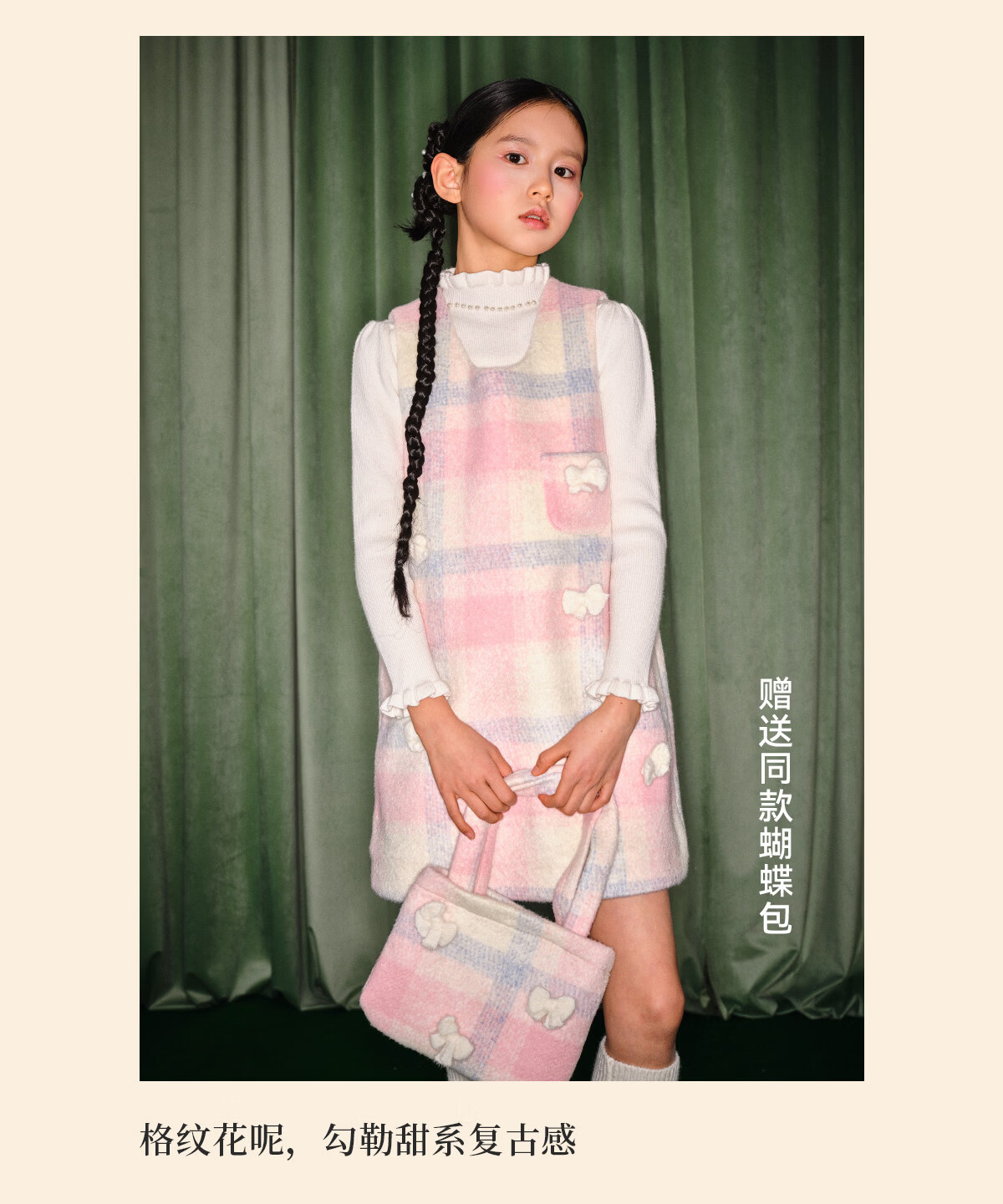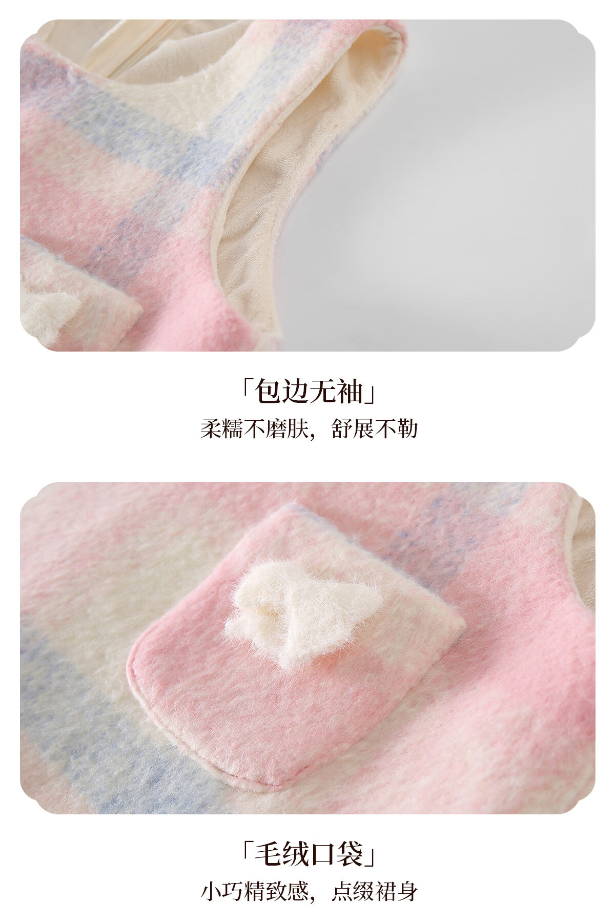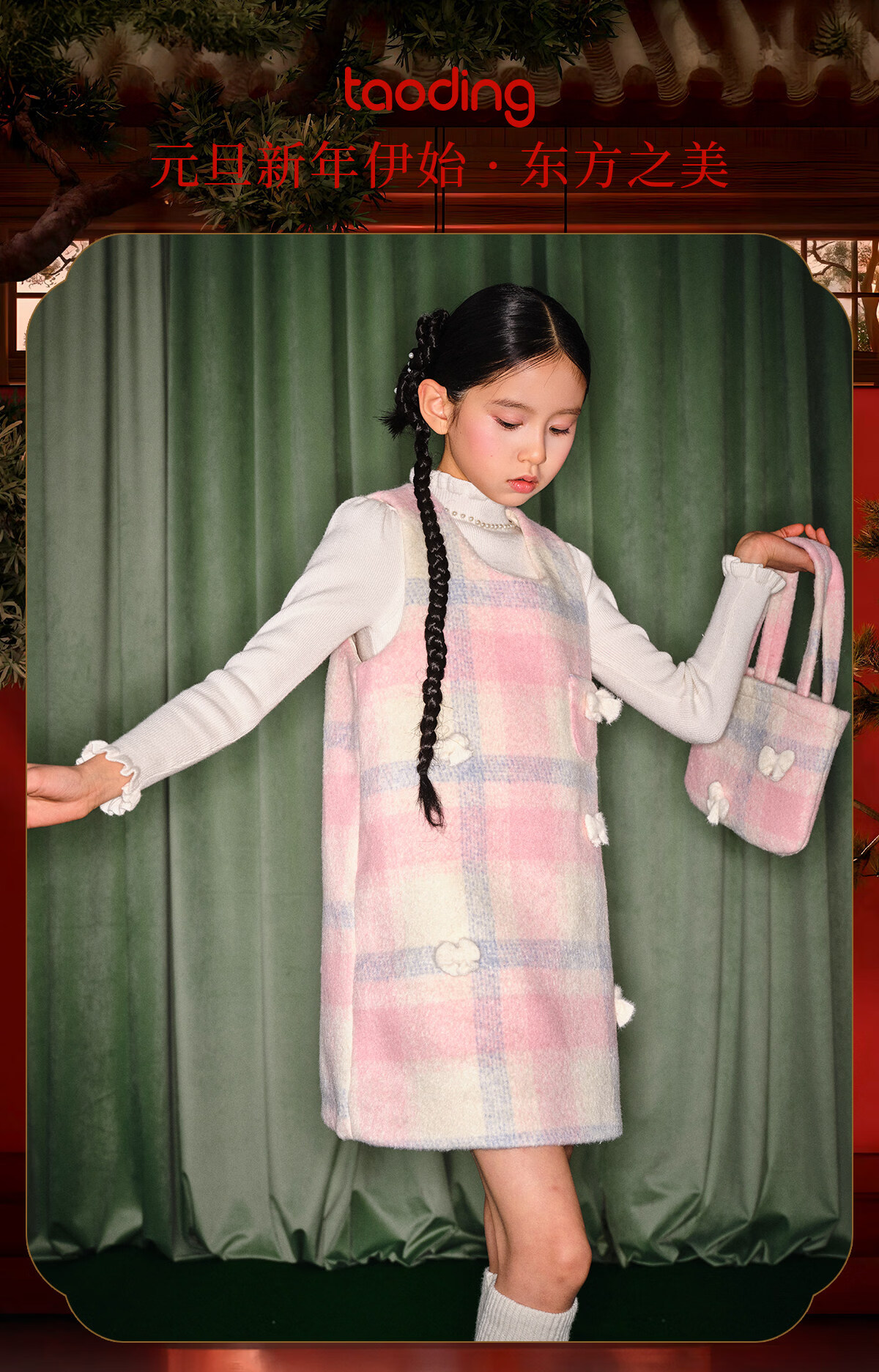 淘町淘町女童格纹连衣裙秋冬新款加厚保暖2026新款洋气大童拜年背心裙 粉色 格纹背心裙 170 L成人款/105-120斤