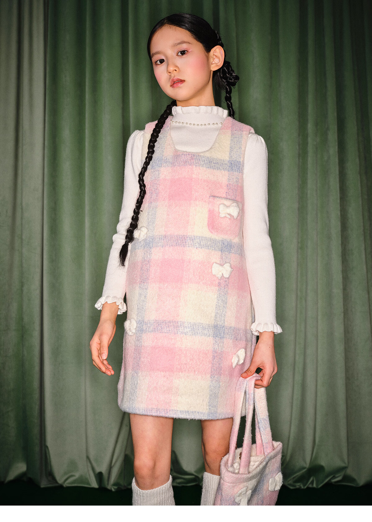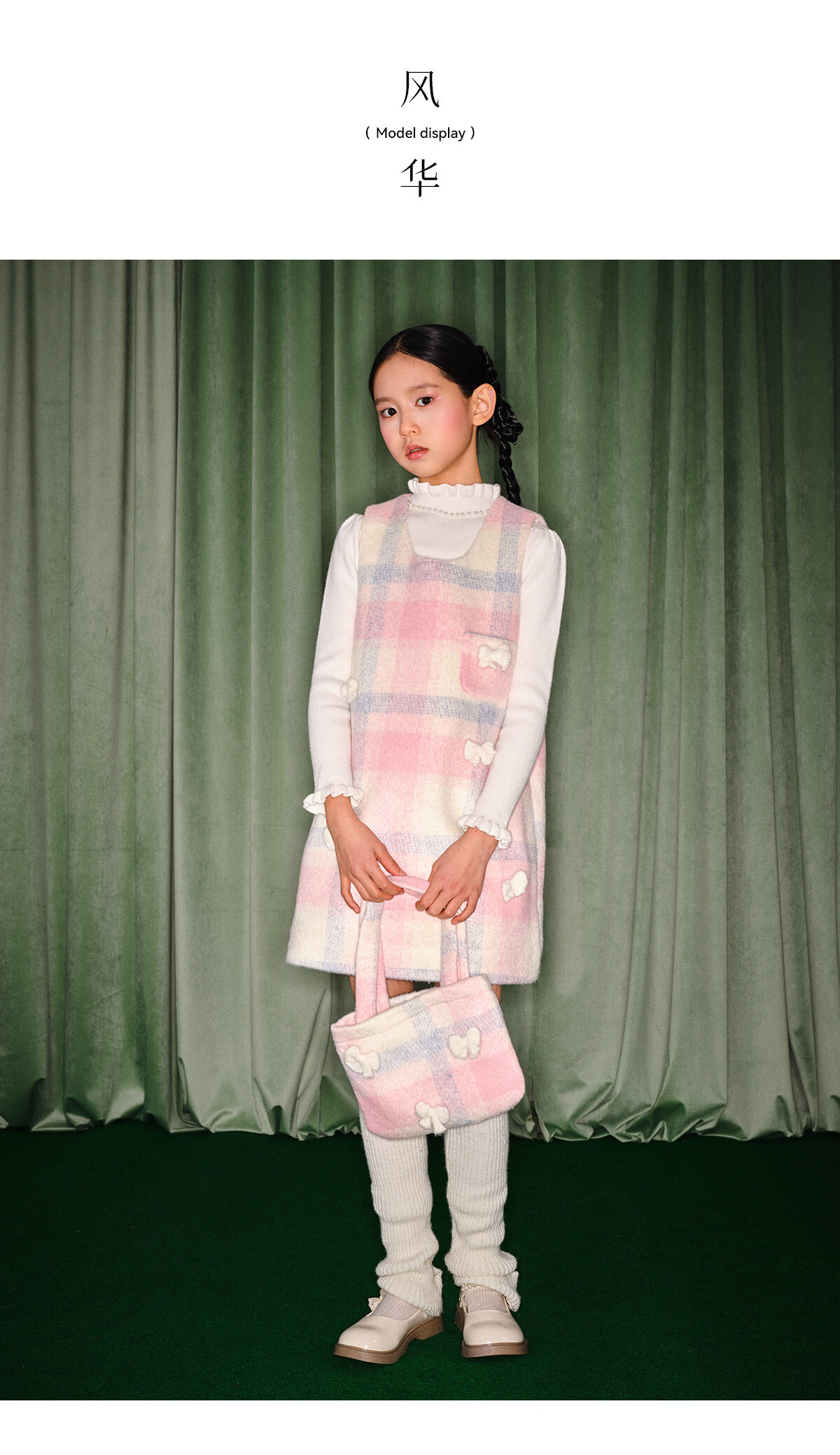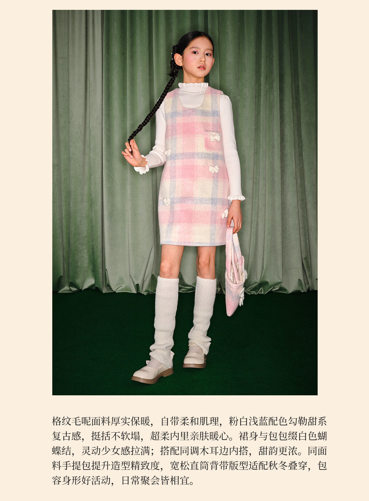 淘町淘町女童格纹连衣裙秋冬新款加厚保暖2026新款洋气大童拜年背心裙 粉色 格纹背心裙 170 L成人款/105-120斤