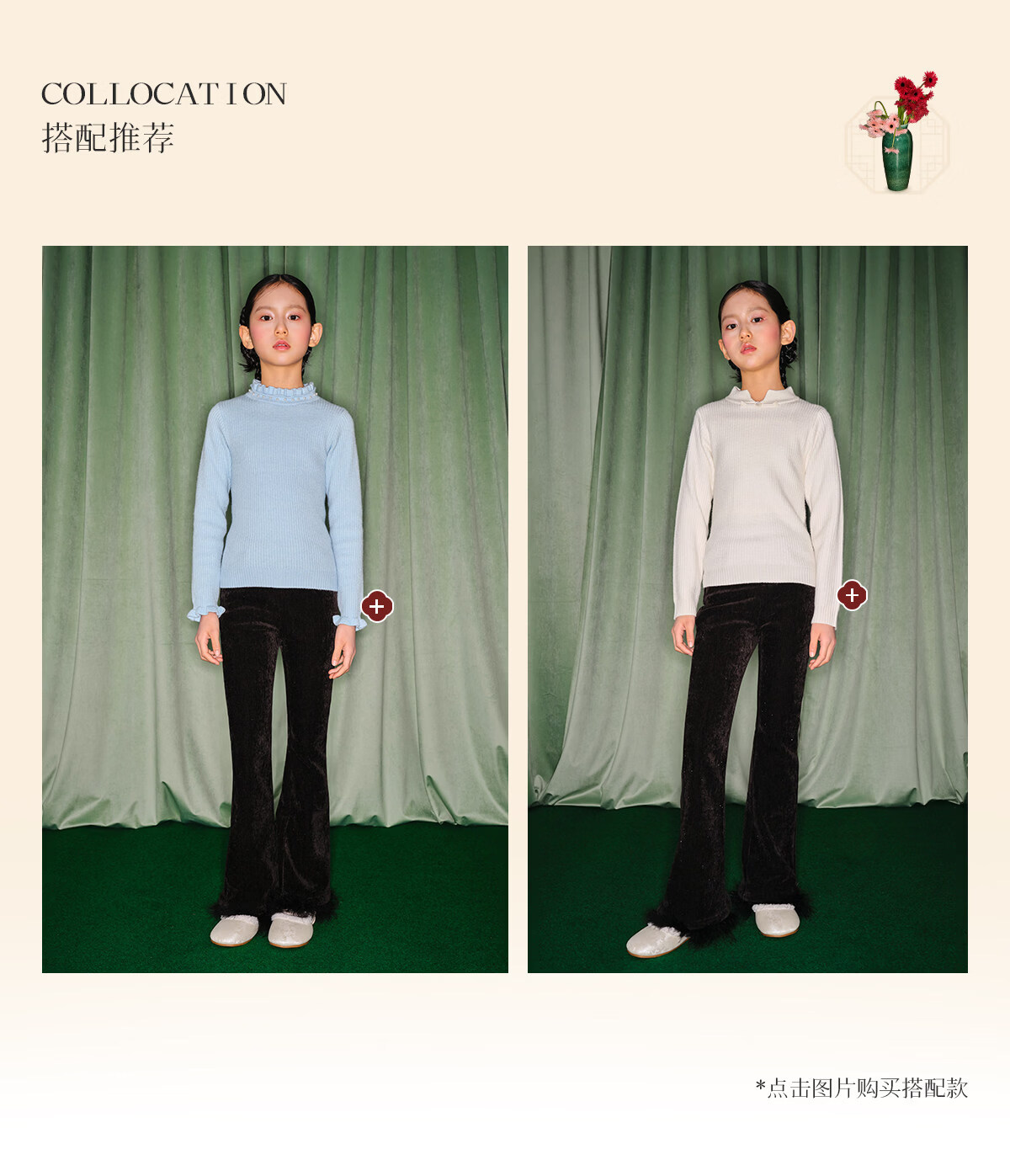 媛媛公主女童加绒休闲裤秋冬新款儿童裤子中大童百搭高弹仿牛仔长裤喇叭裤 黑色 110