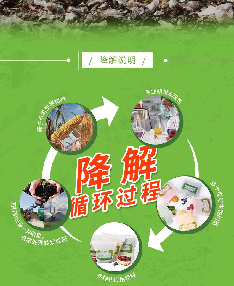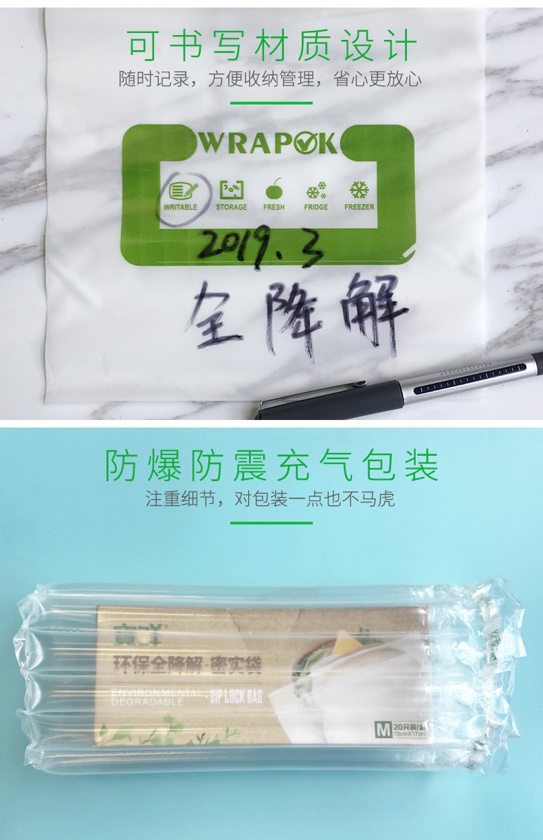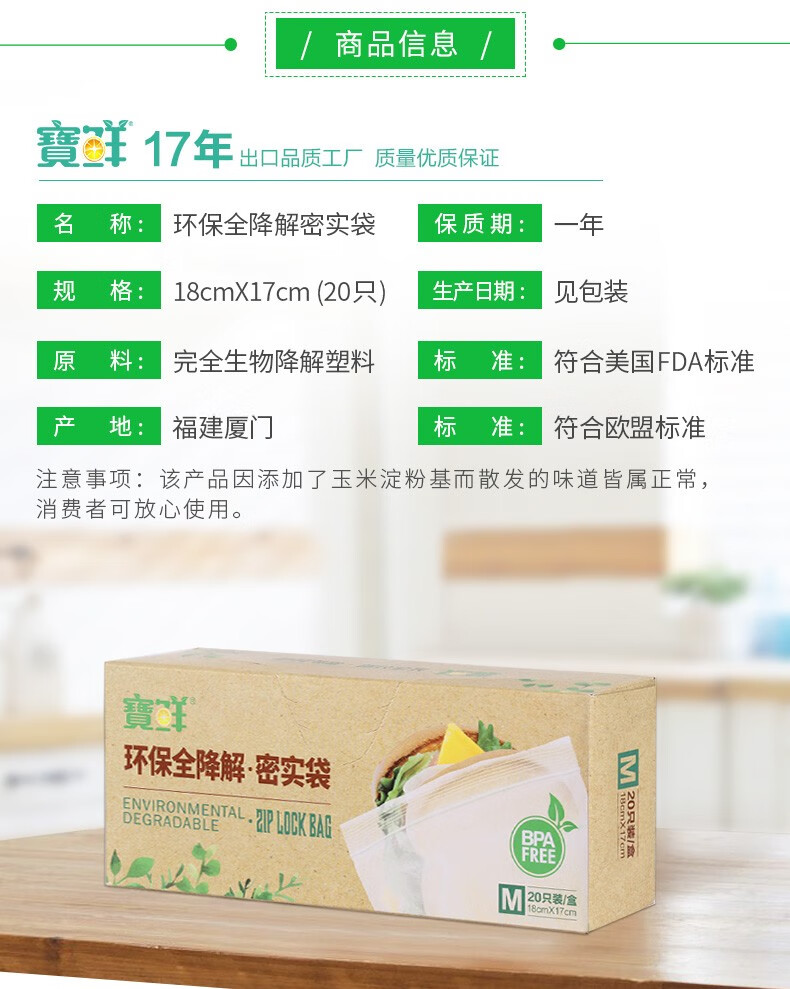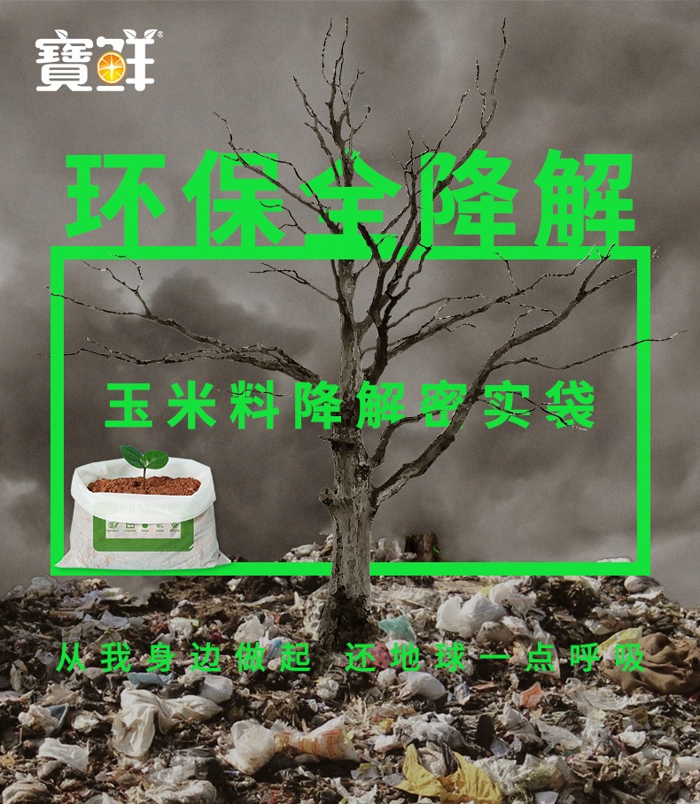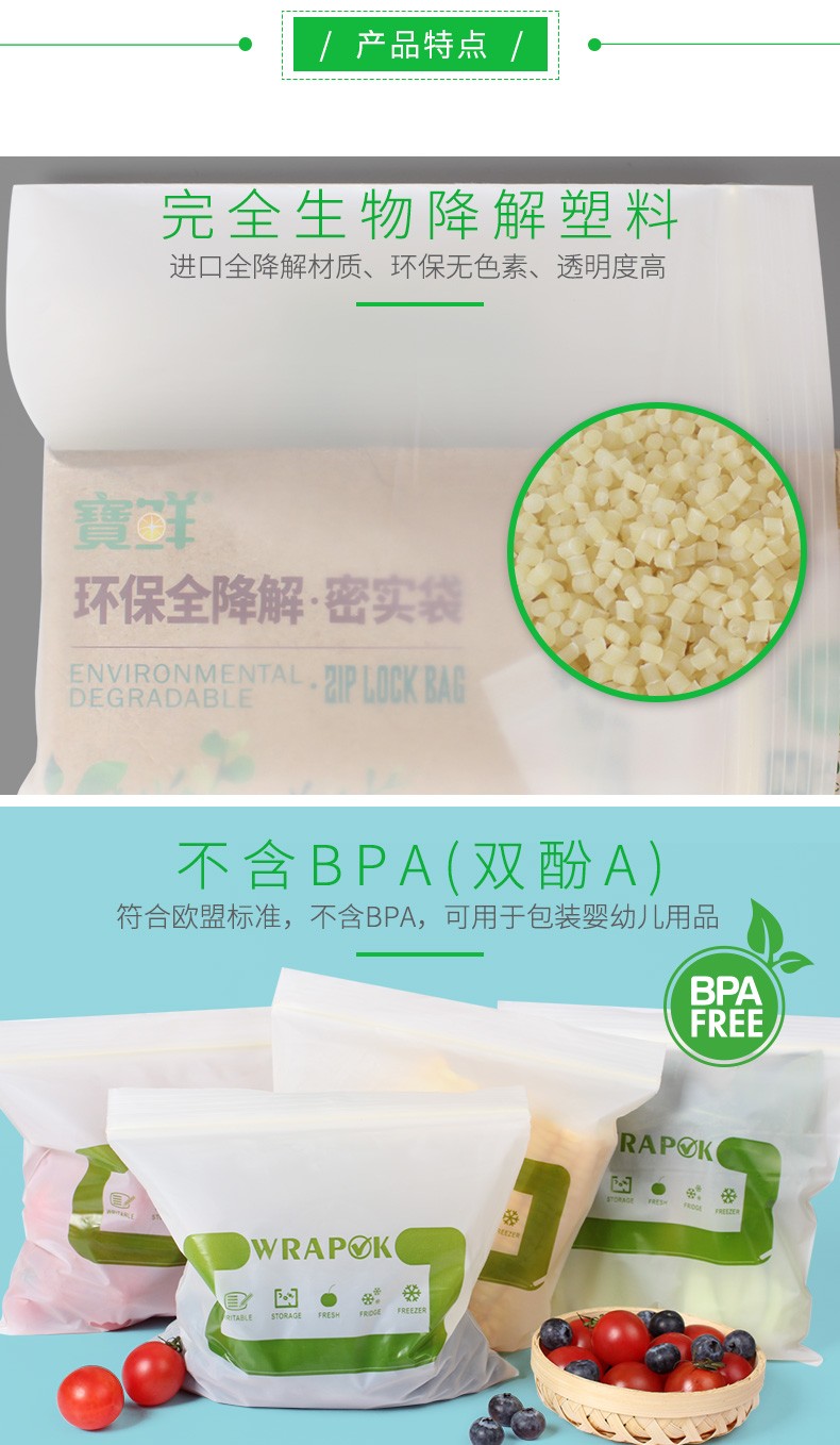寶鲜全降解可堆肥不含双酚A玉米料食品级加厚可重复利用密实袋 全生物降解28*27cm50只