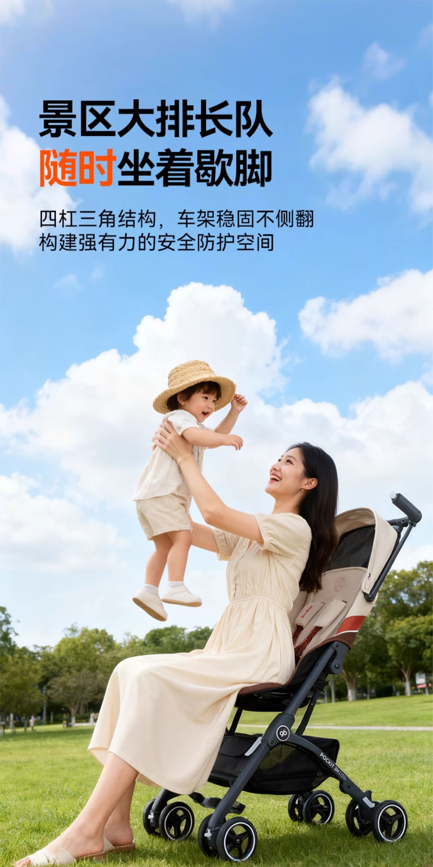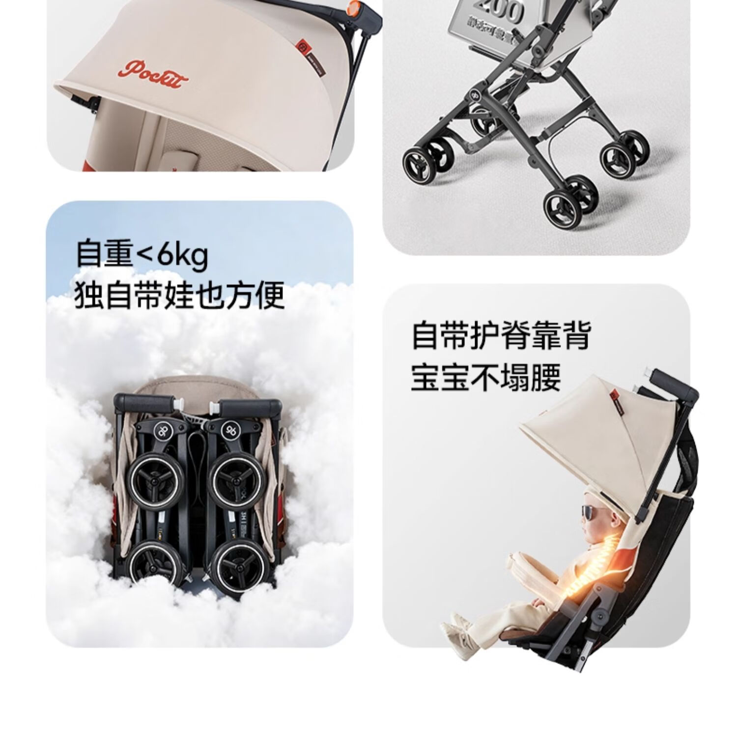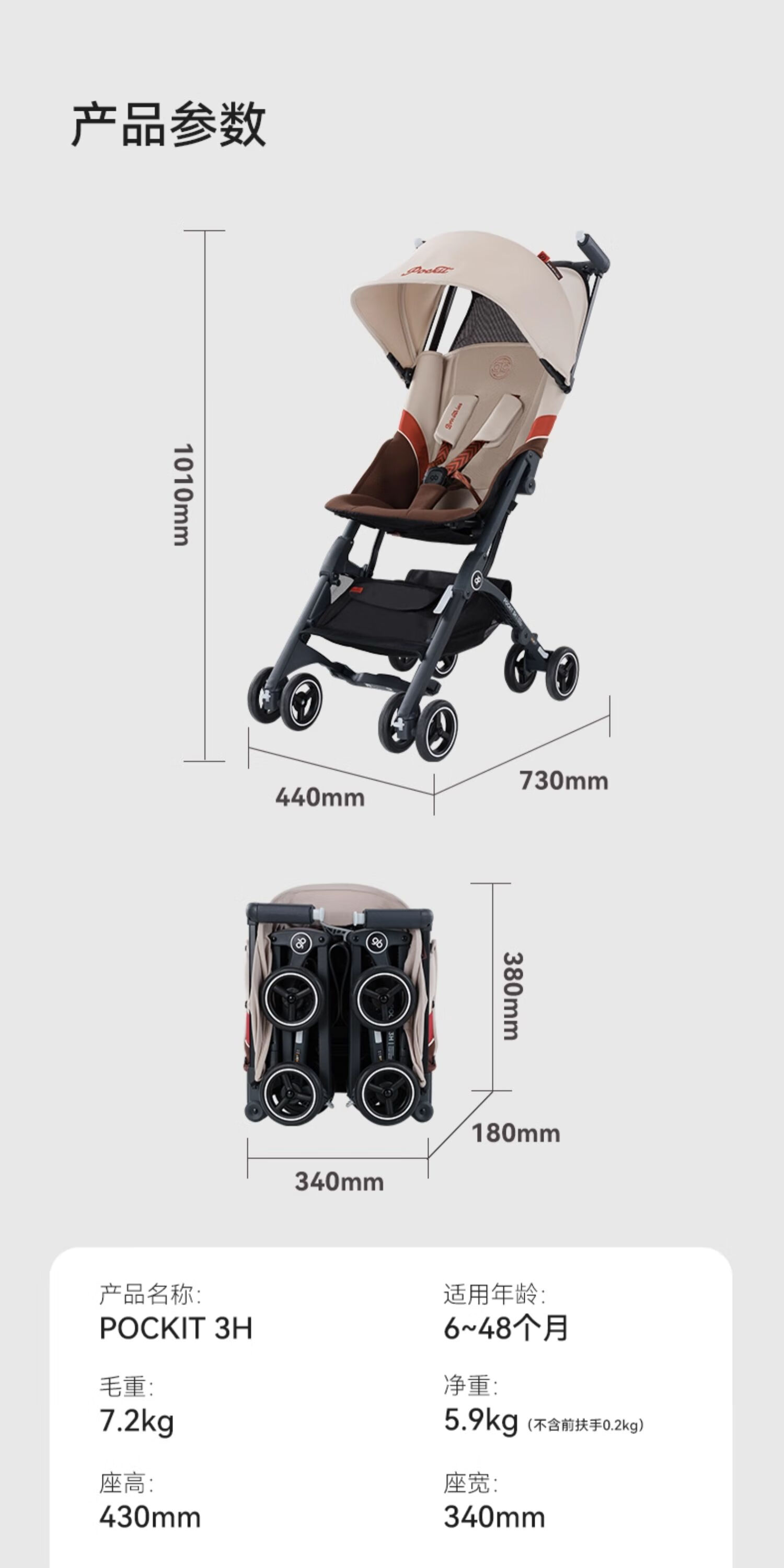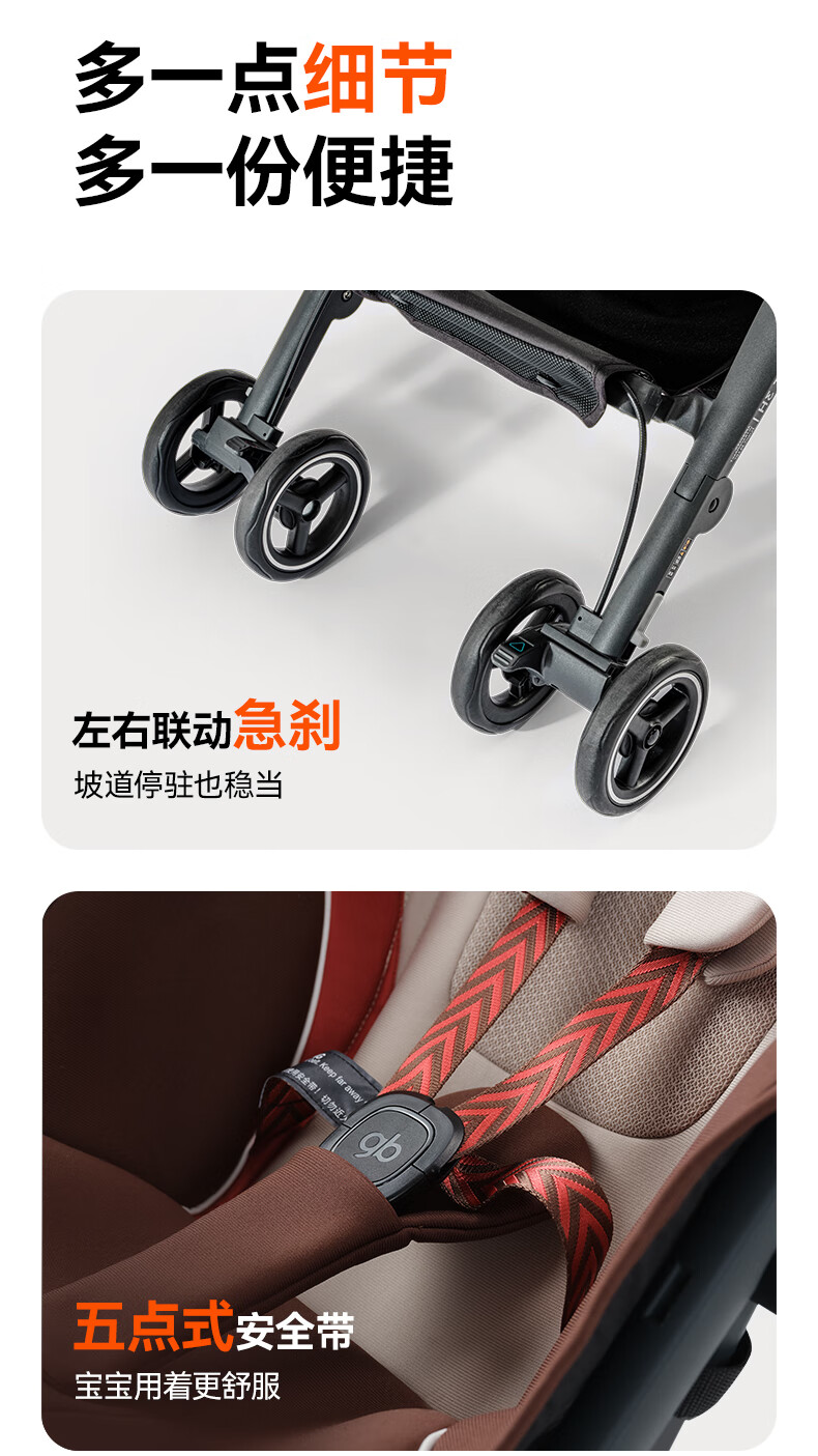 gb好孩子口袋车遛娃神器婴儿车轻便可登机推车快速折叠POCKIT 3H 【明星款】学院白