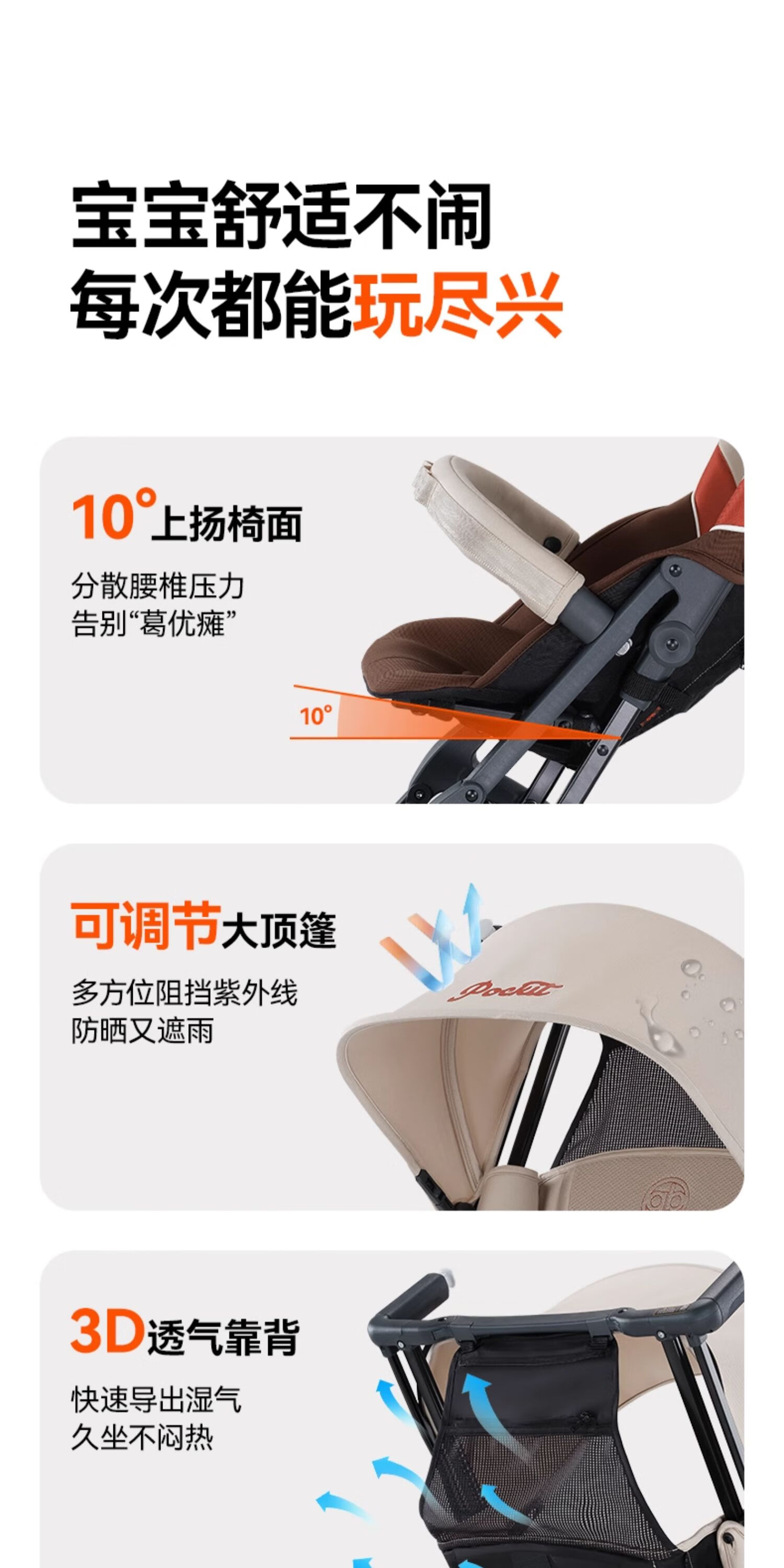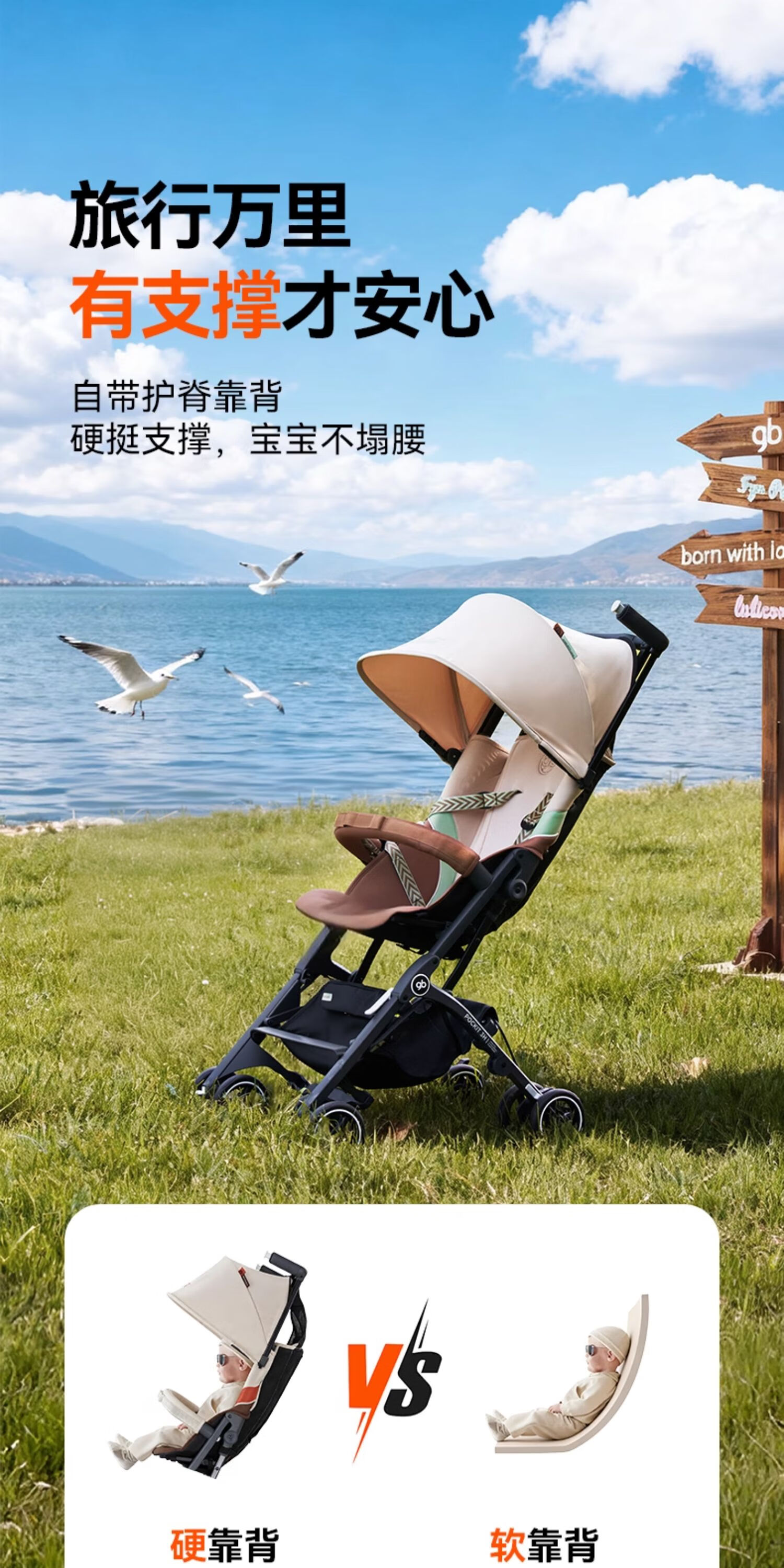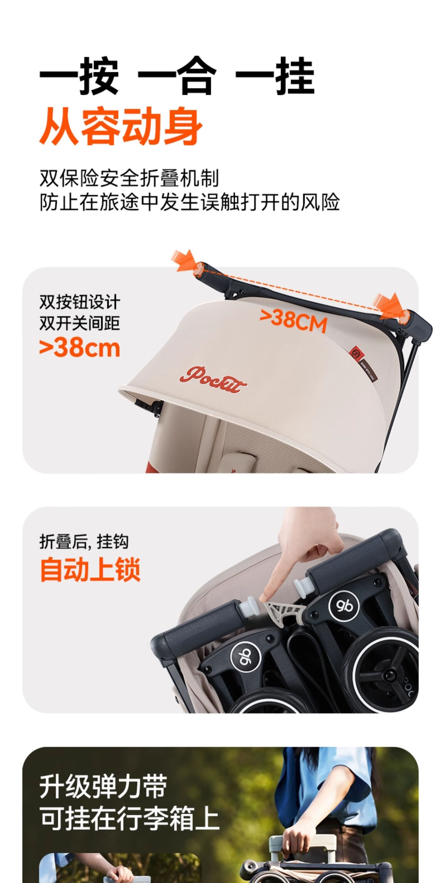 gb好孩子口袋车遛娃神器婴儿车轻便可登机推车快速折叠POCKIT 3H 【明星款】学院白