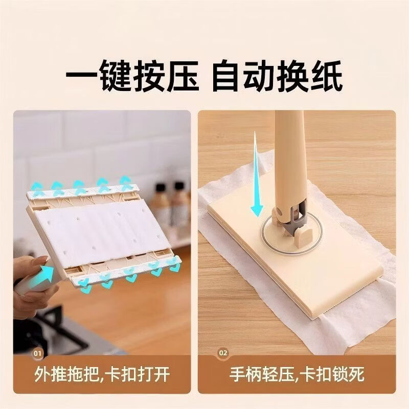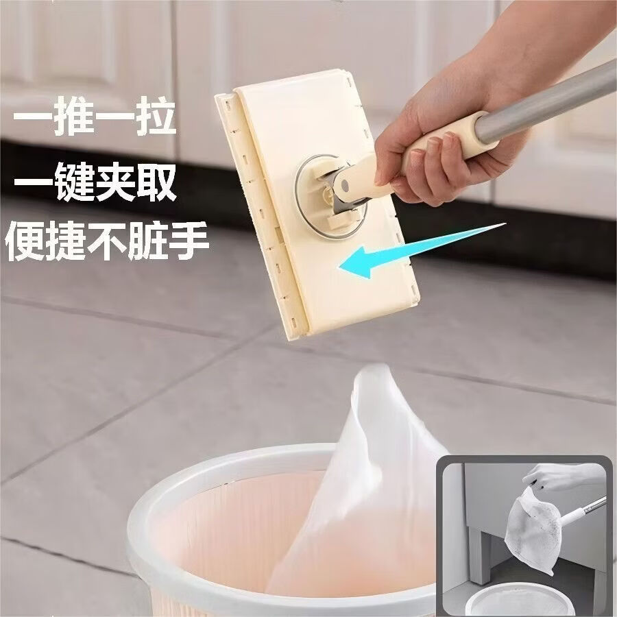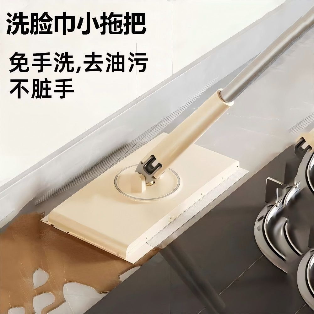 L小红书同款懒人除尘湿巾AA 加长拖把70cm 洗脸平板拖把免手家用夹布清洁面巾