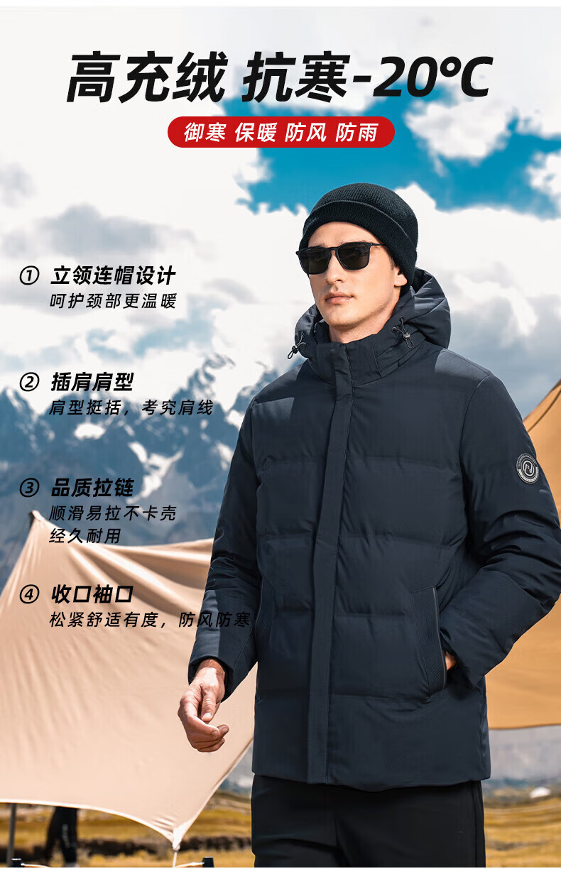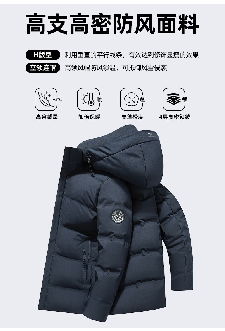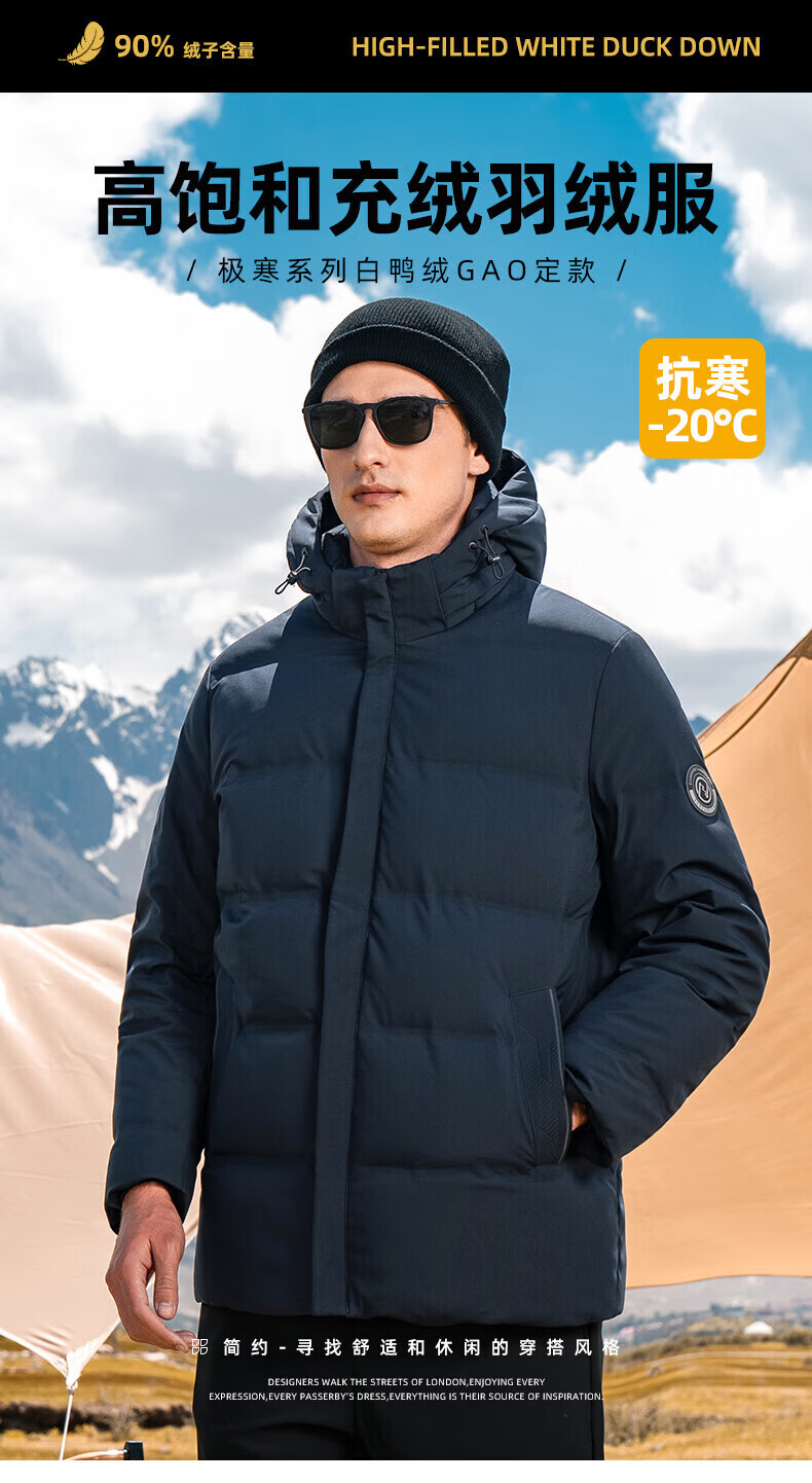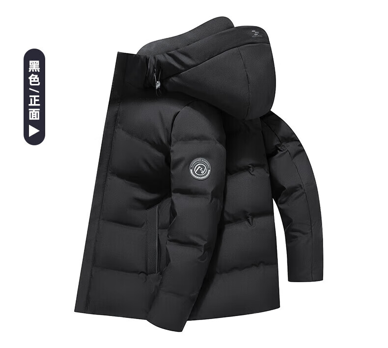 鸭鸭(YAYA)羽绒服男厚款连帽短款百搭保暖冬季新年中青年商务休闲防寒外套 黑色 XL 180(建议135-150斤)