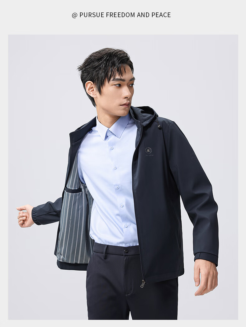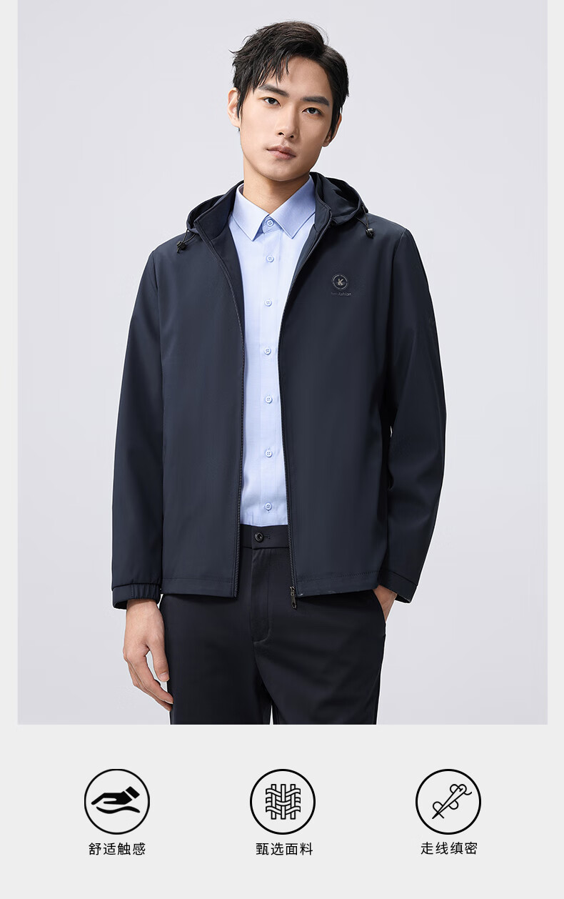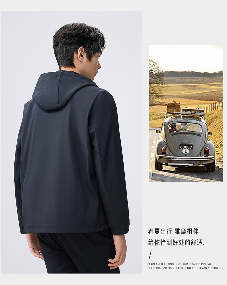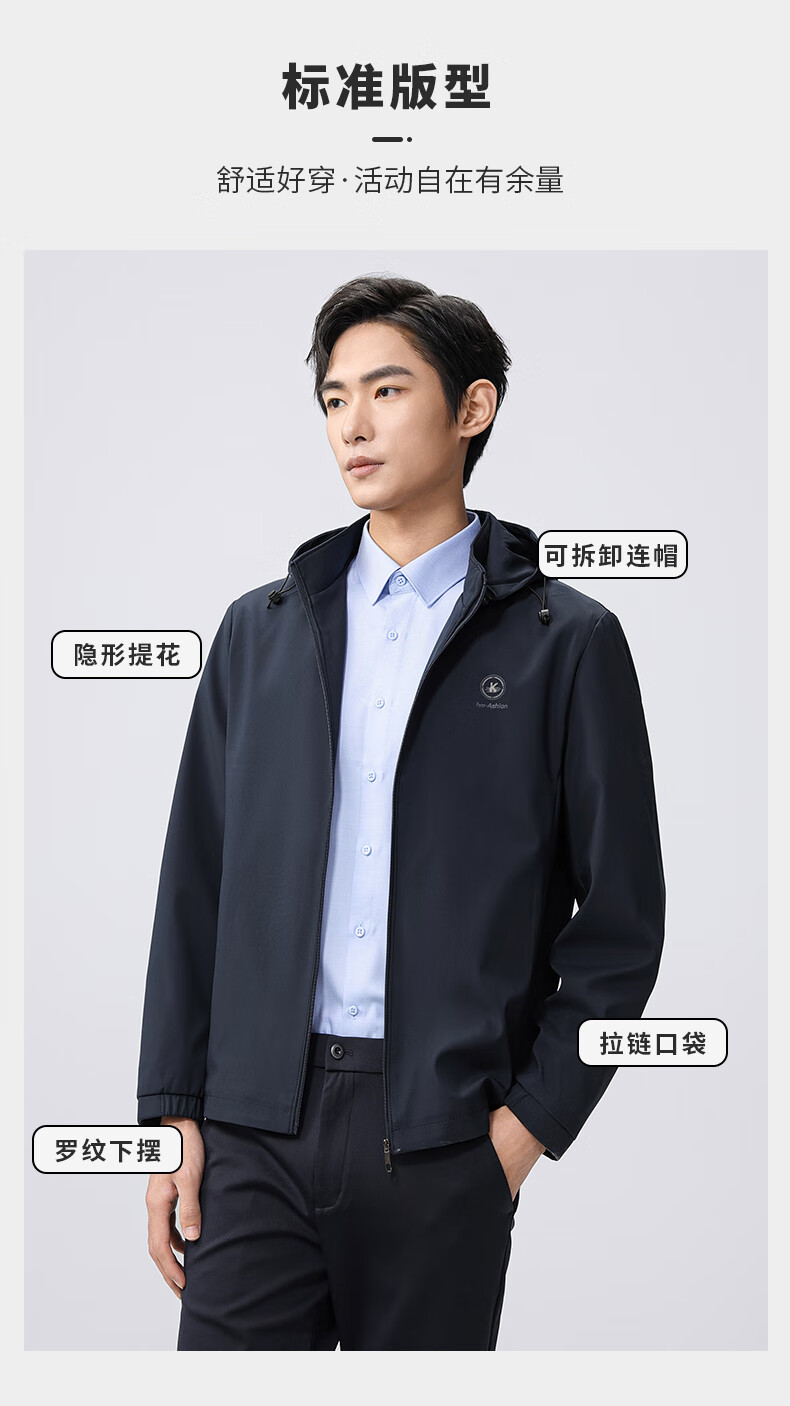 雅鹿夹克男连帽可拆卸2026春季新款商务休闲中青年外套时尚男装上衣 蓝色 180/XL