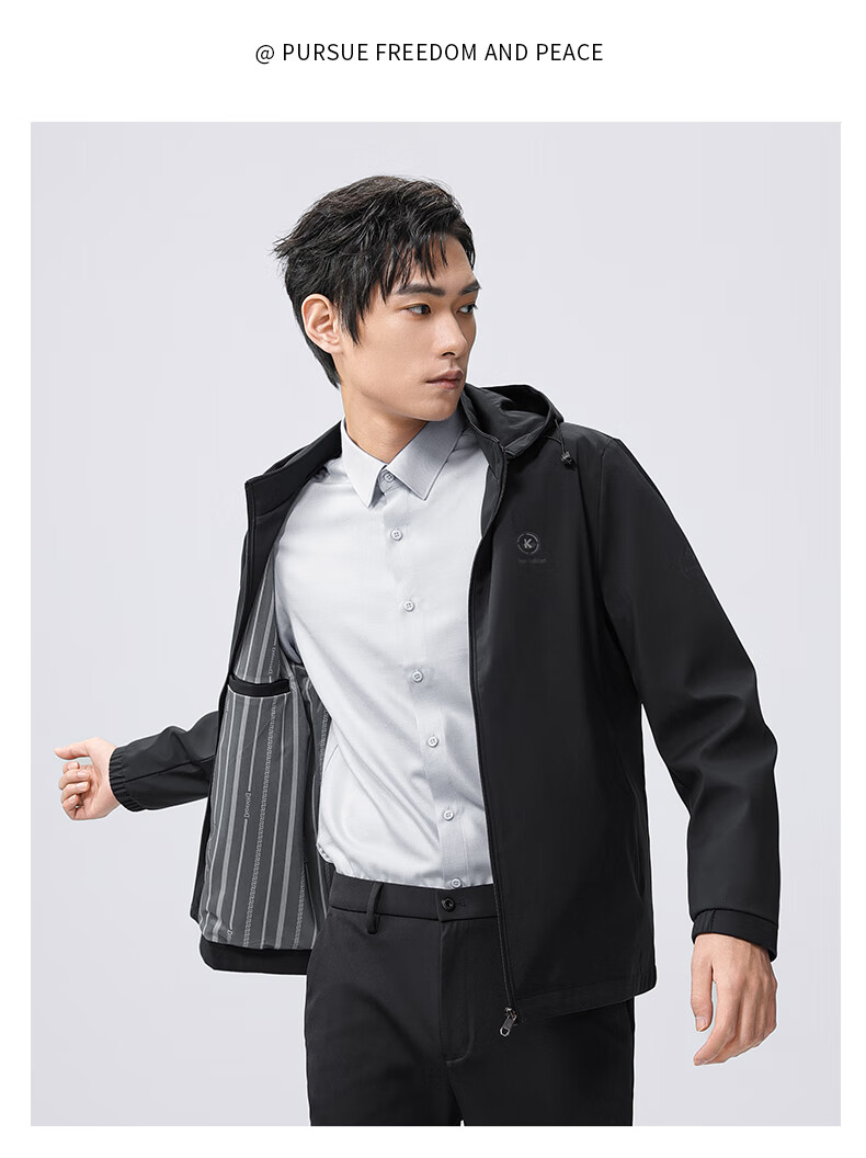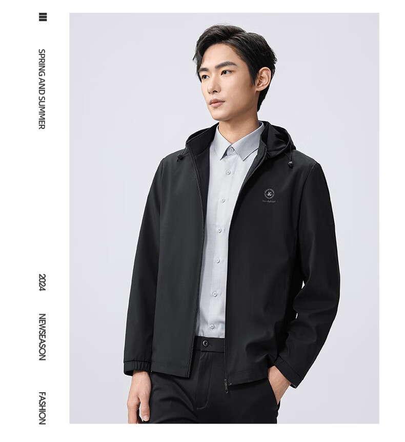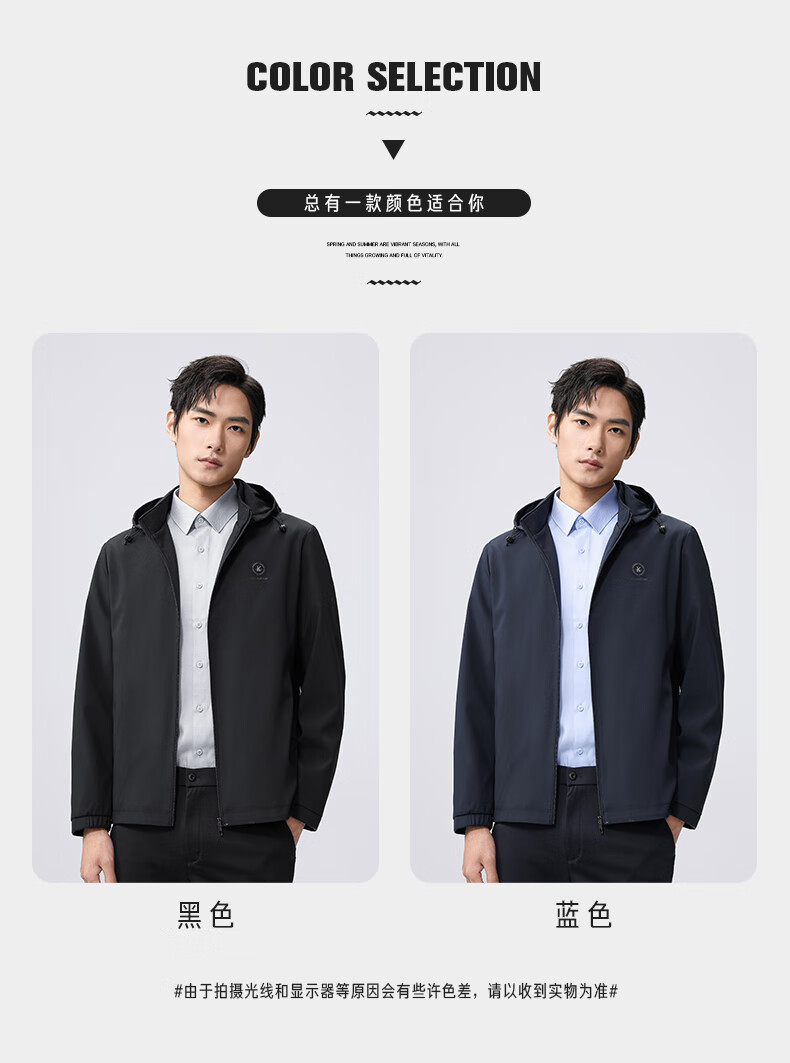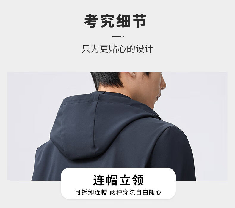 雅鹿夹克男连帽可拆卸2026春季新款商务休闲中青年外套时尚男装上衣 蓝色 180/XL