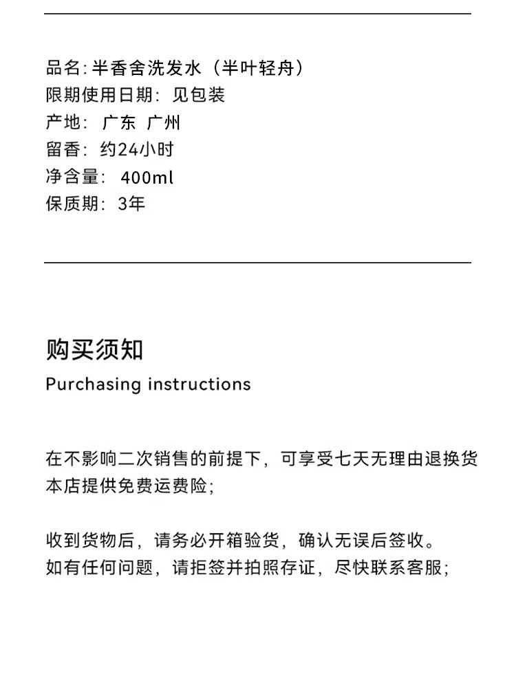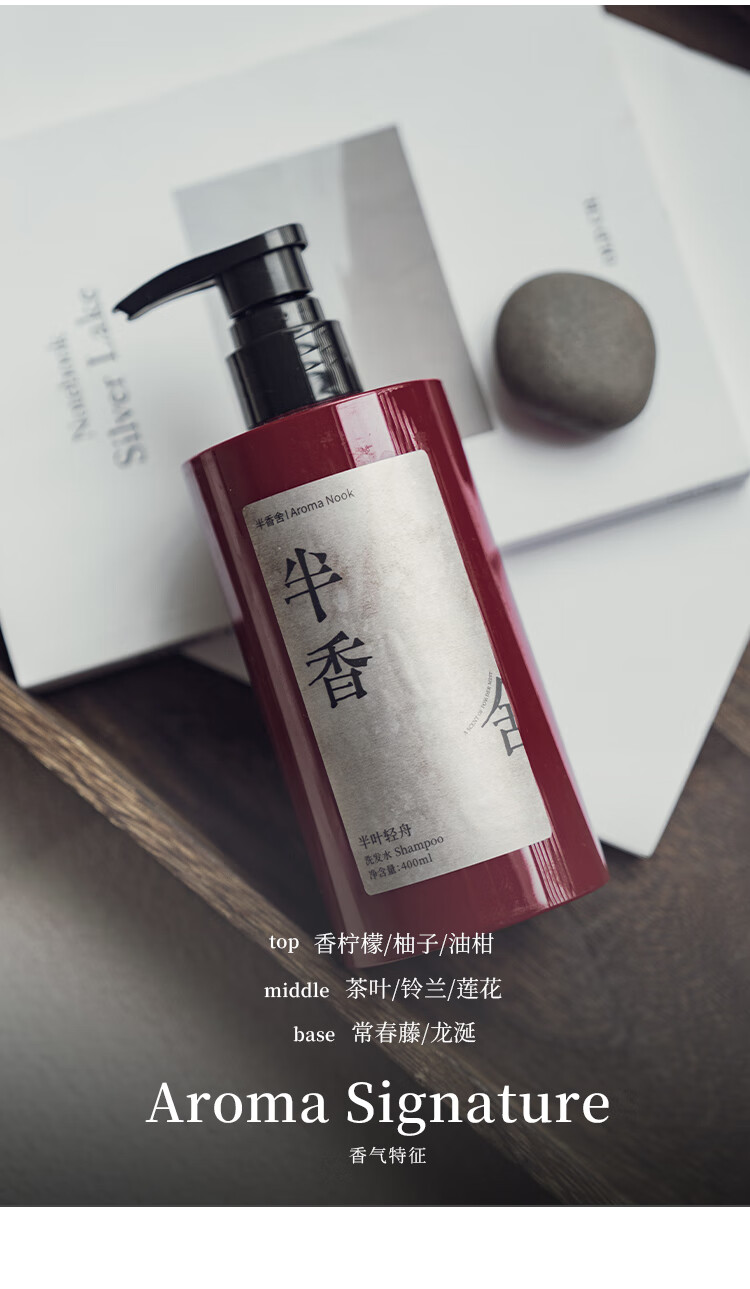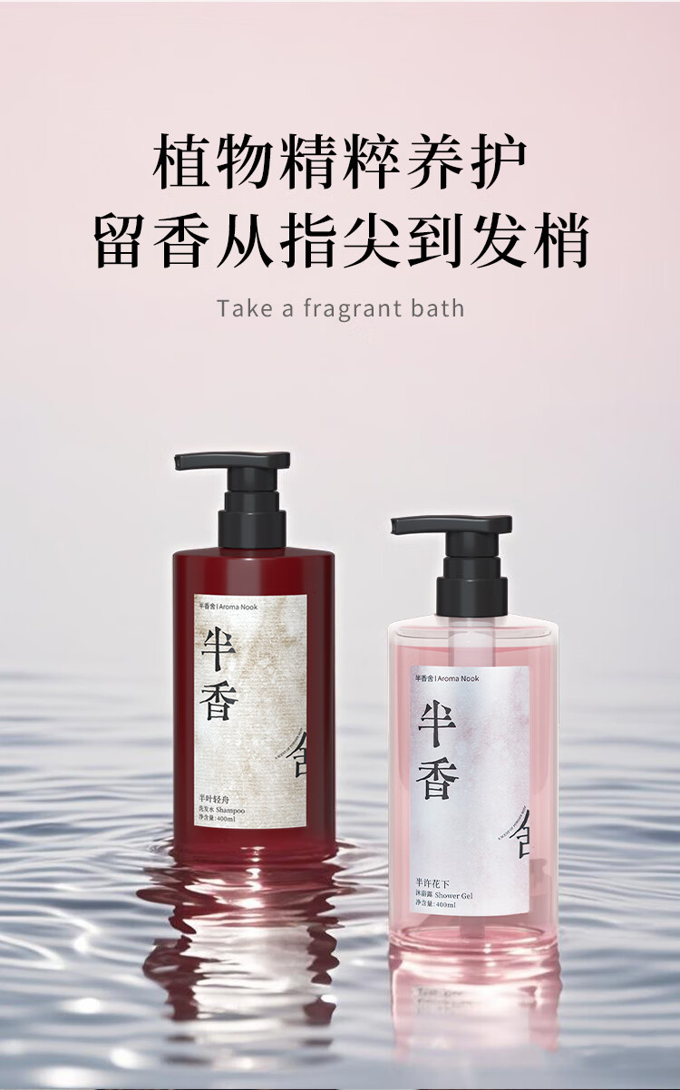 半香舍·Aroma Nook·【洗浴套装】香氛沐浴露持久留香+控油蓬松洗发水 半叶轻舟洗发水400ml+半归沐阳沐浴露400ml