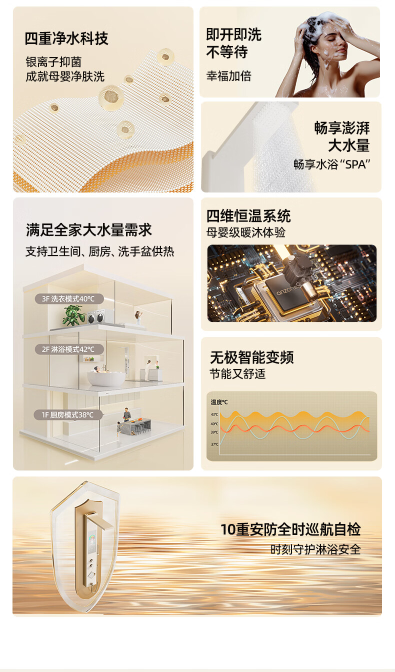 汉逊 集成热水器家用即热式淋浴屏别墅酒店卫生间速热洗澡沐浴机智能恒温省电HX-01 8500W 【银色】五种出水+四重过滤
