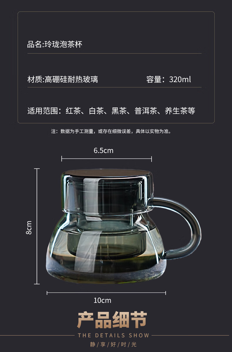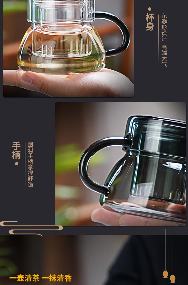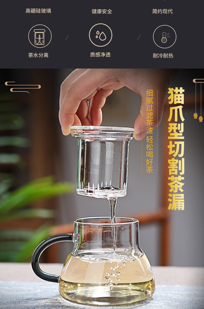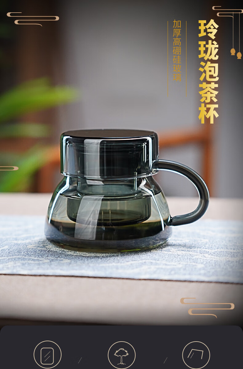 全度耐热玻璃泡茶杯2025新款茶水分离绿茶杯家用办公喝茶杯喝水杯 玲珑泡茶杯【透明】320ml