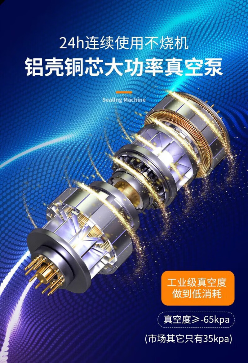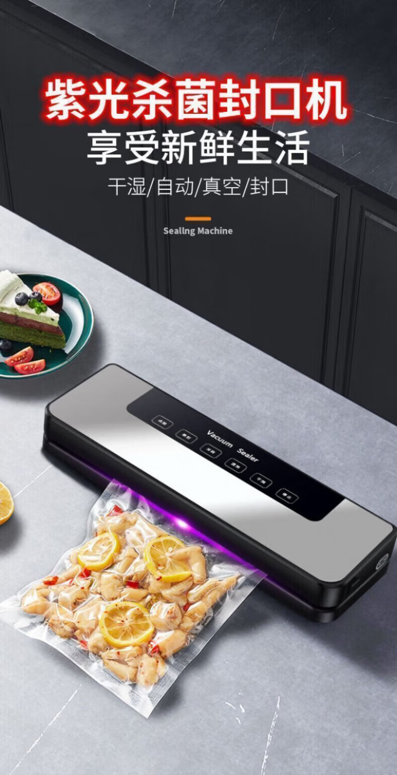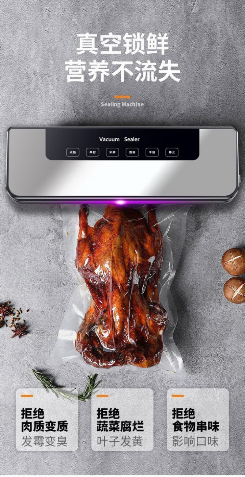 RSRDDY德国真空封口机干湿两用家用商用大功率食品保鲜机全自动抽真空包装机塑封机不挑袋抽腊肉 【升级封口机+100真空袋】紫光杀菌丨双泵大吸力