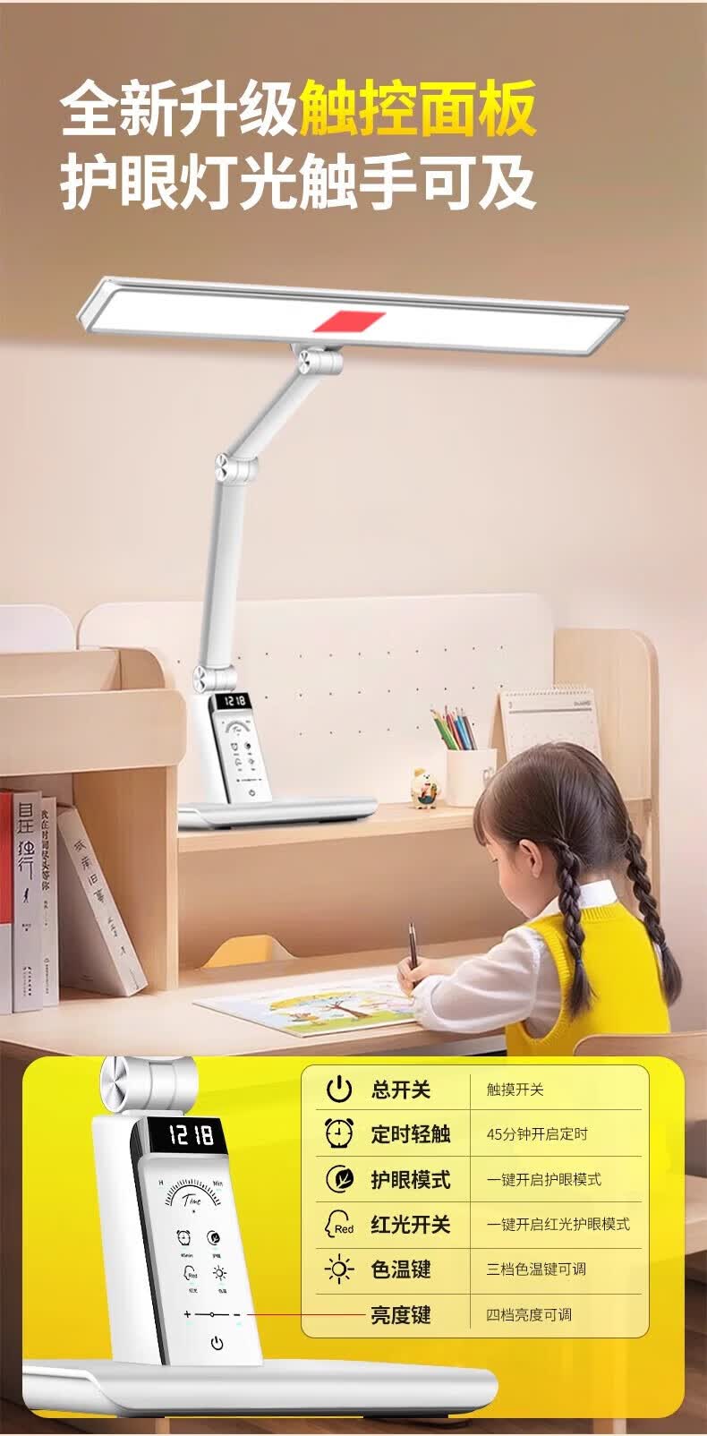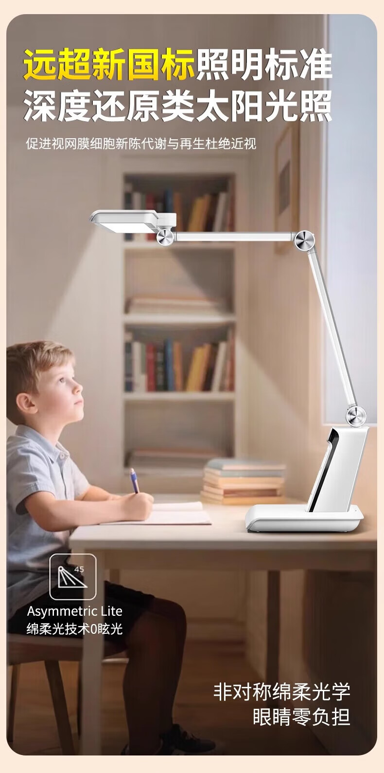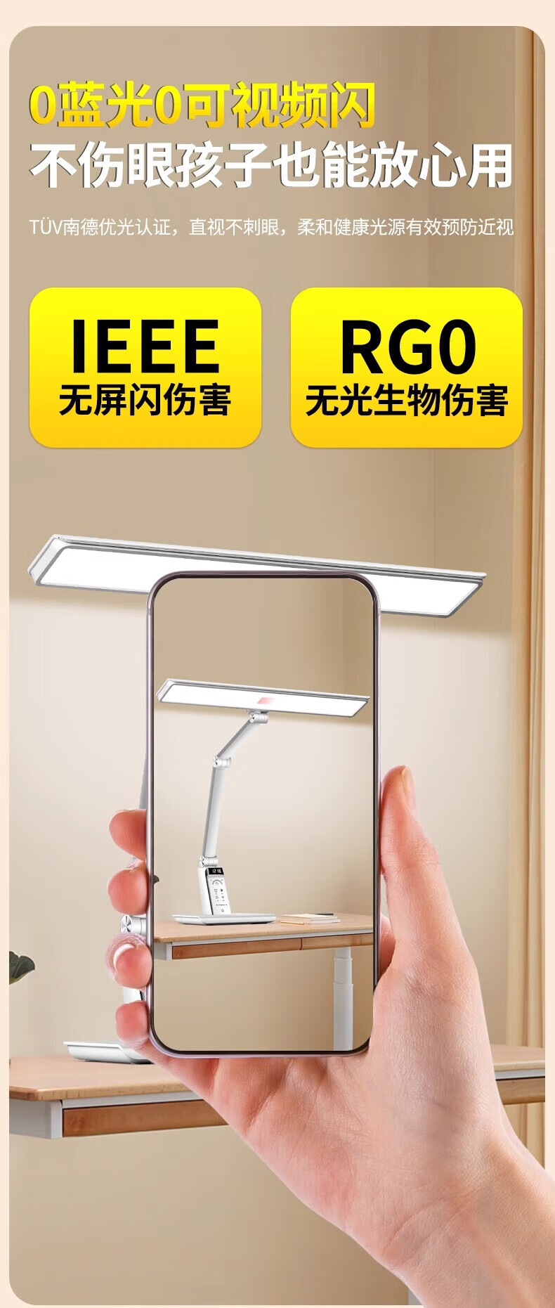 RASW德国台灯护眼学习学生宿舍专用超长续航防蓝光近视国5a儿童充电灯 【pro学霸款】充插两用+触摸开关+智能数显 2026新款