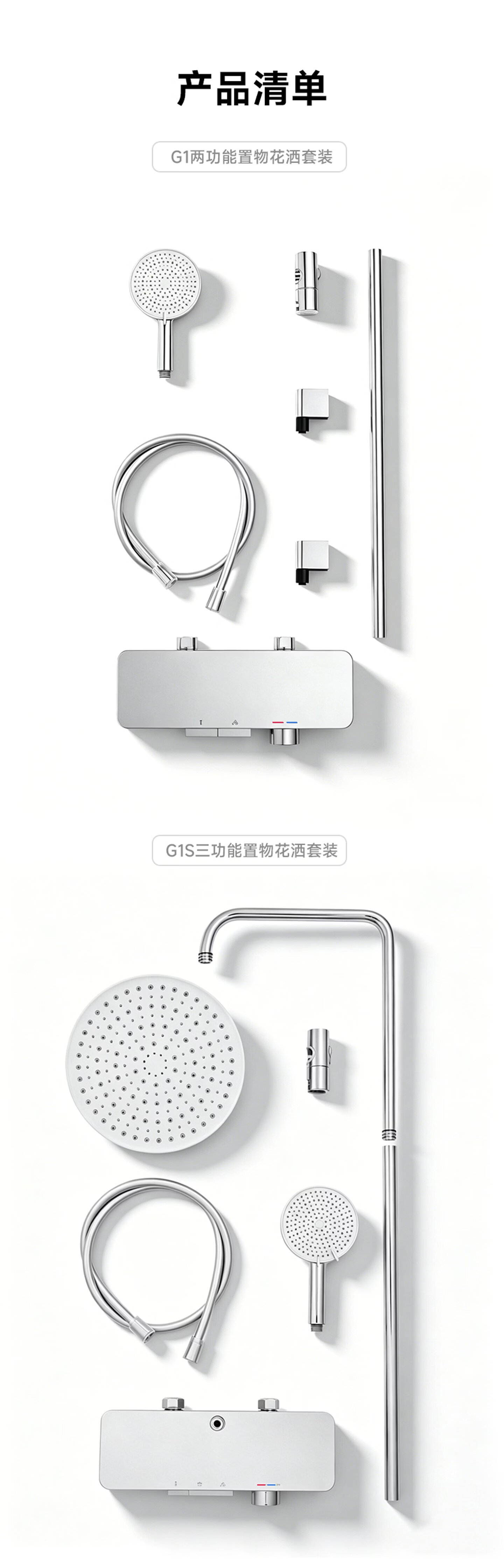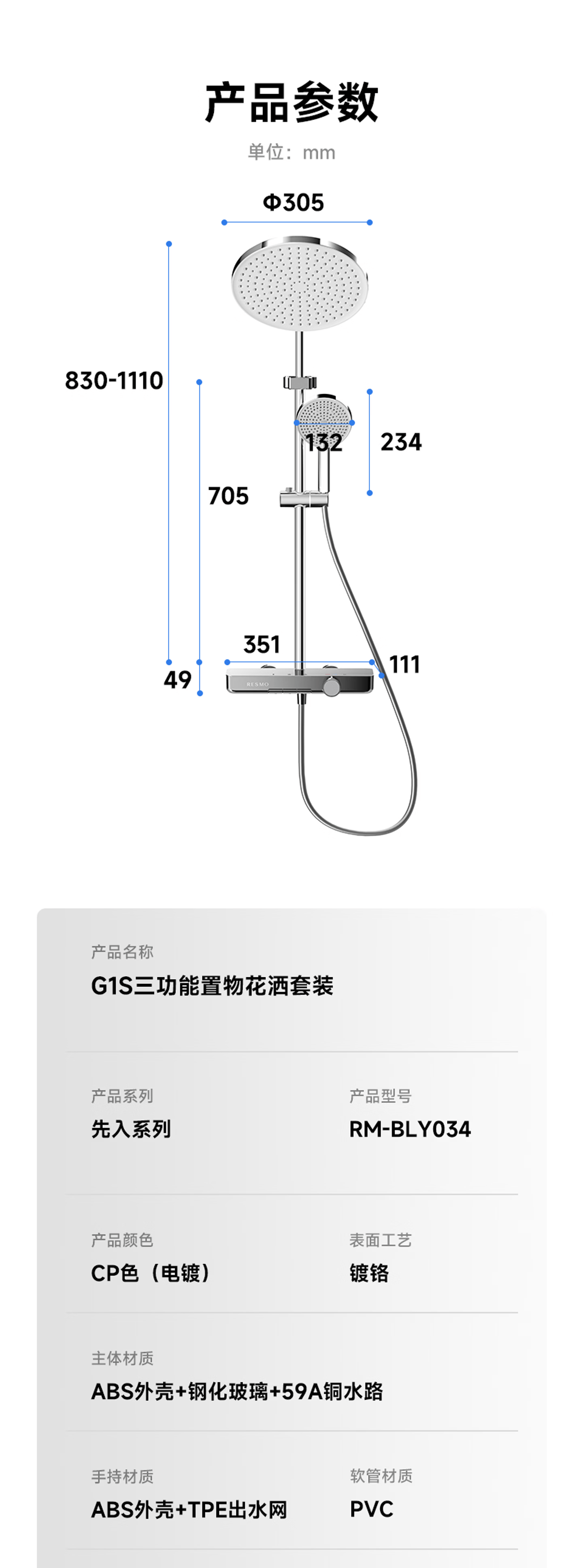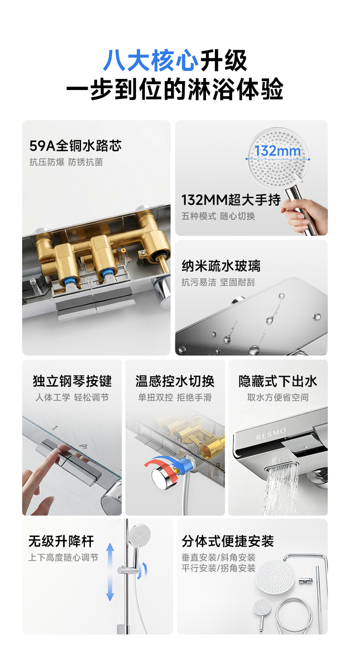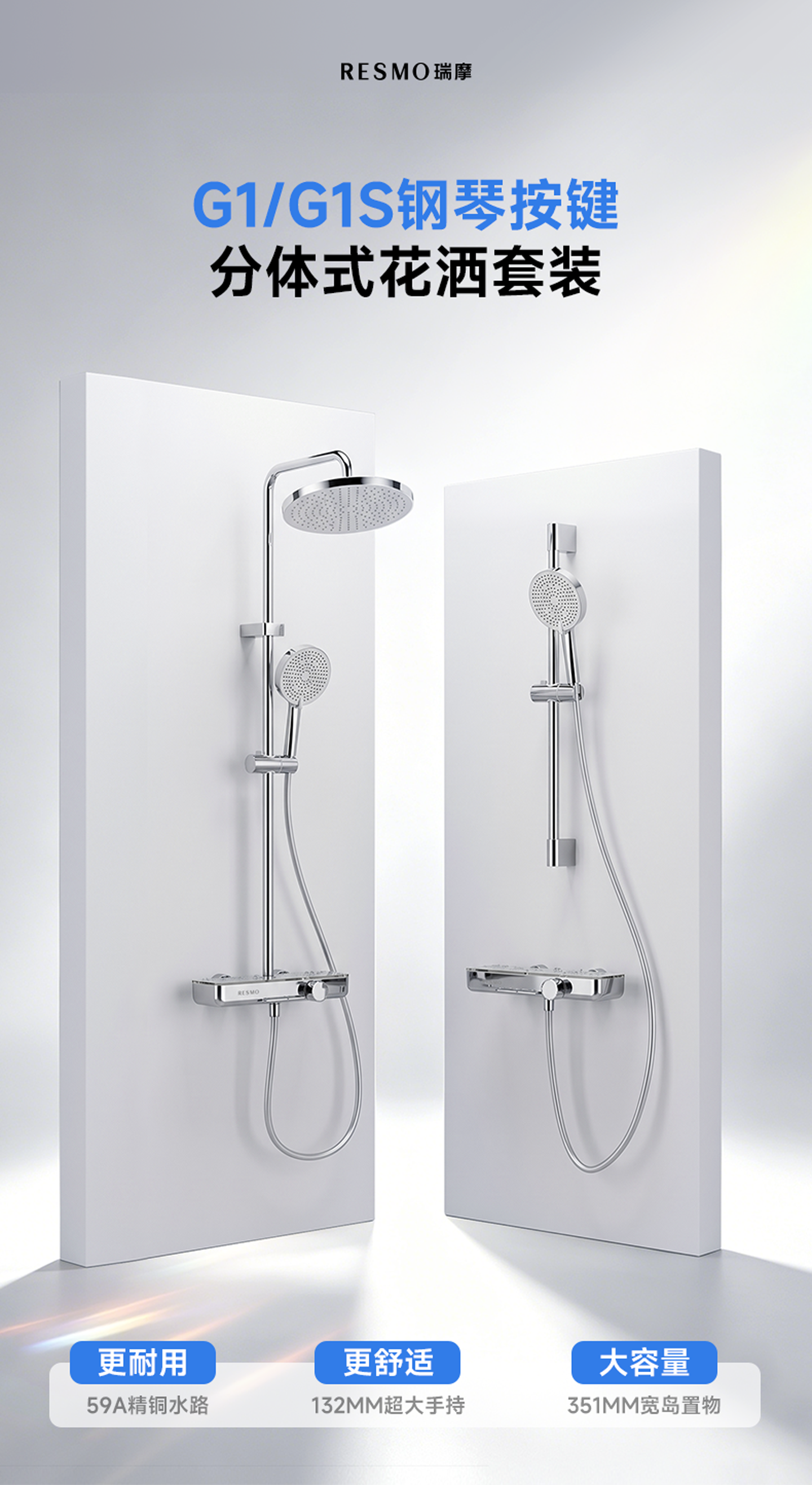 RESMO瑞摩卫浴淋浴花洒套装大顶喷全套一体上门安装2026新款花洒 镜面丨冷热款+59a全铜水路+5出水手持丨G1