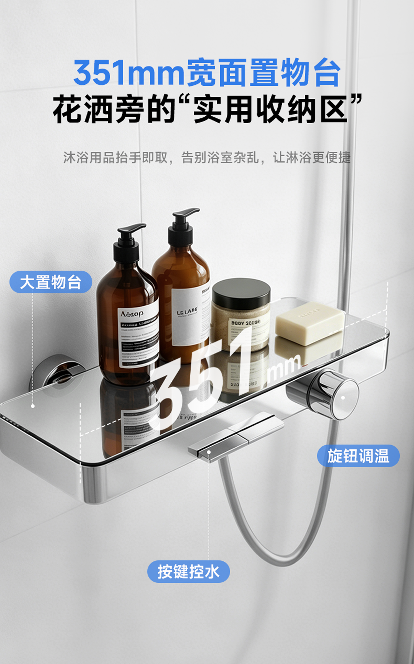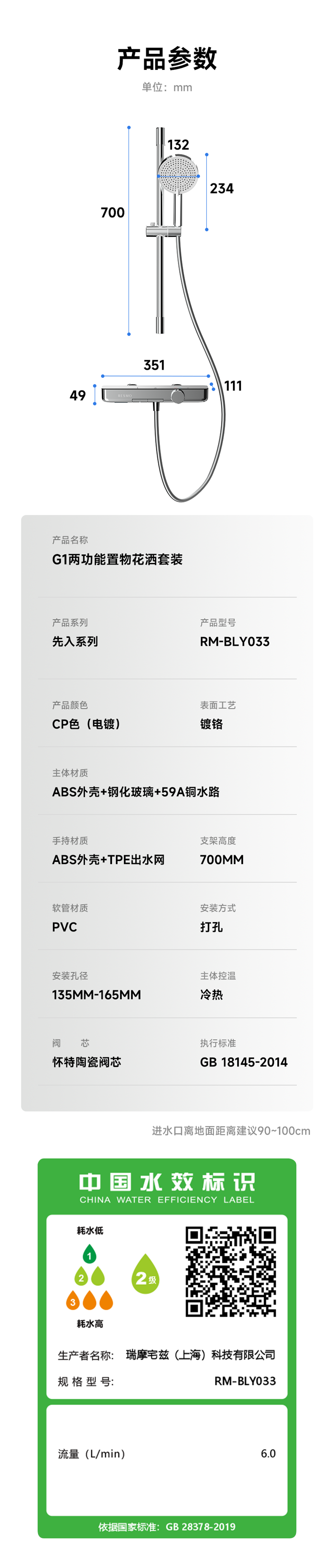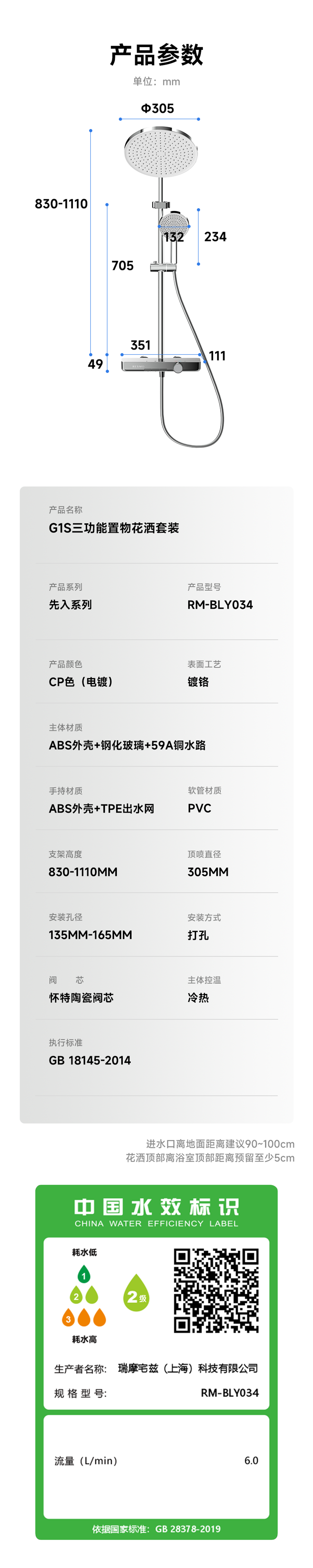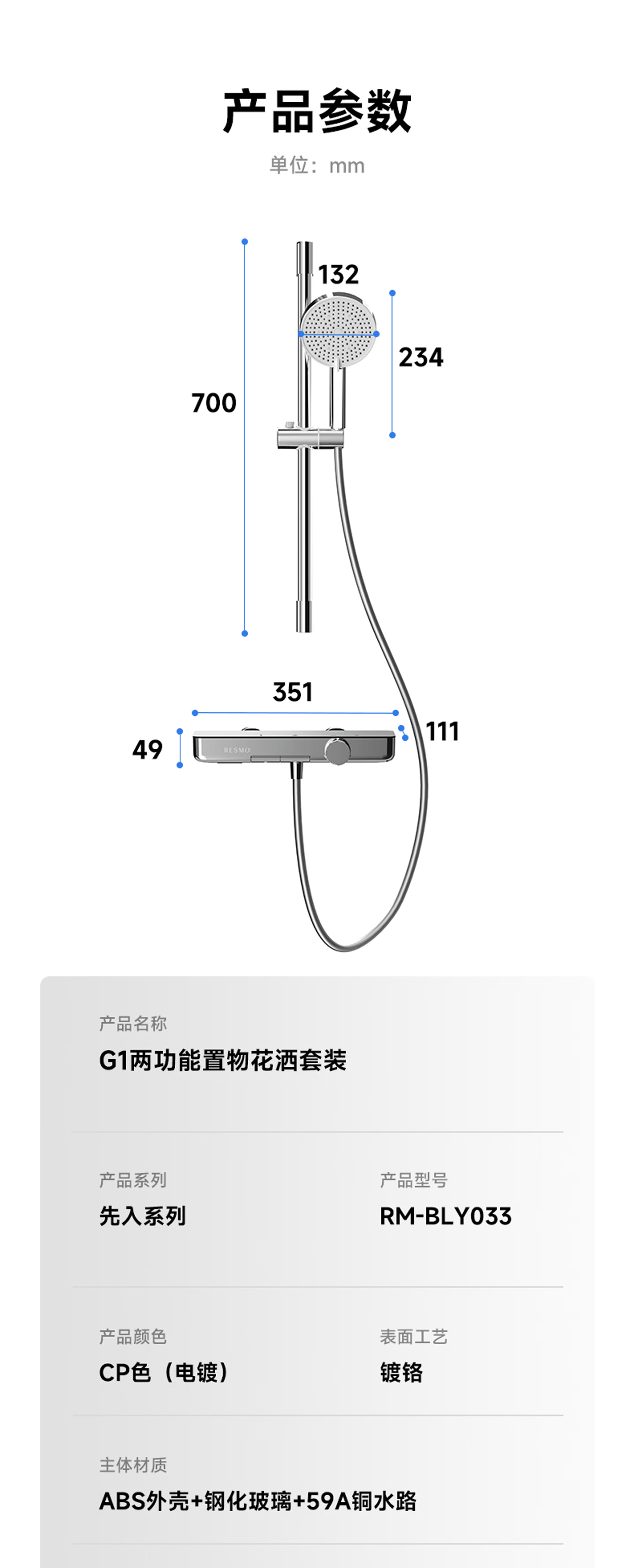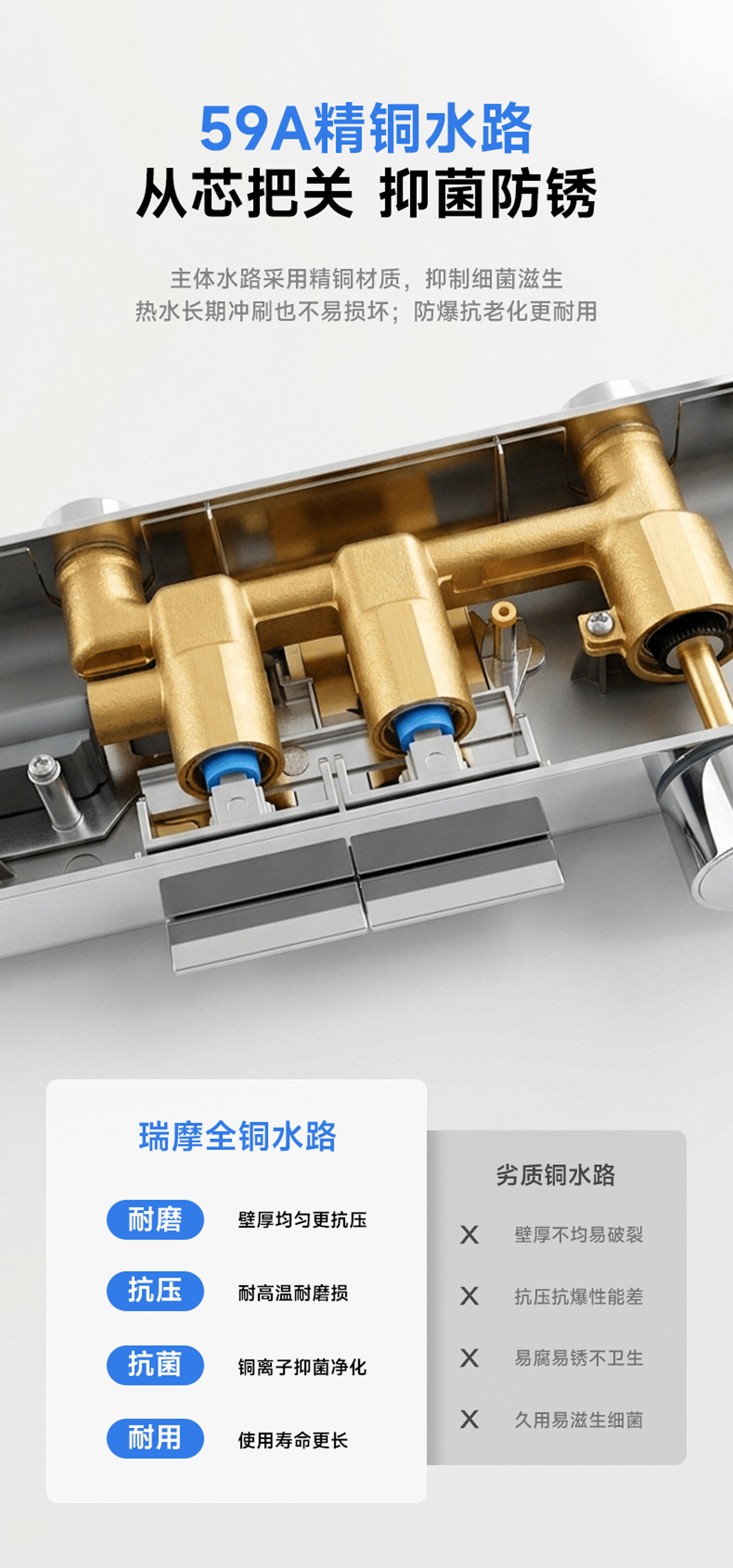 RESMO瑞摩卫浴淋浴花洒套装大顶喷全套一体上门安装2026新款花洒 镜面丨冷热款+59a全铜水路+5出水手持丨G1
