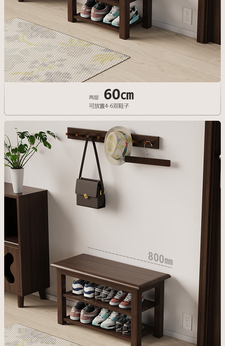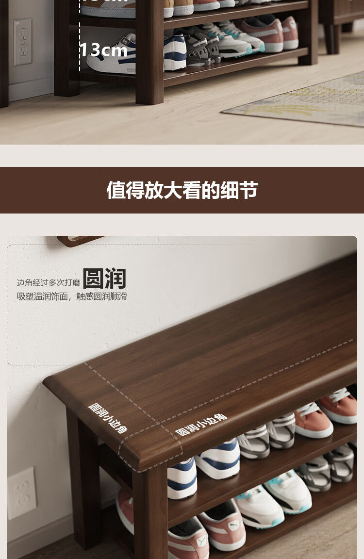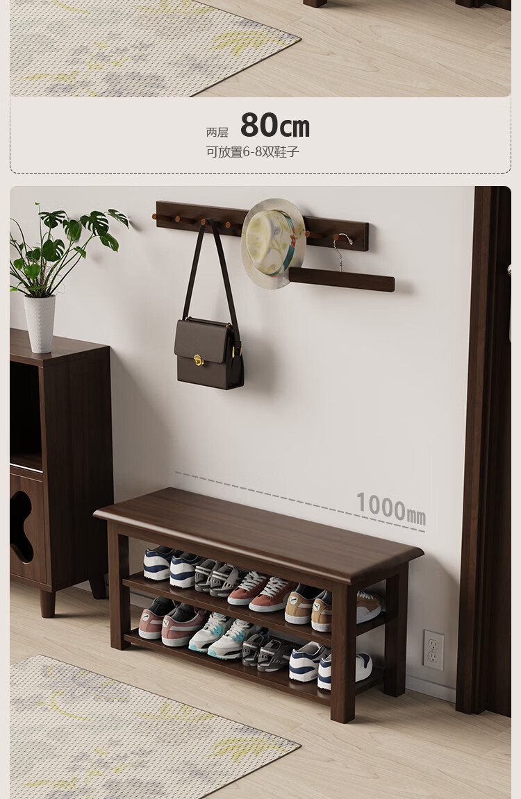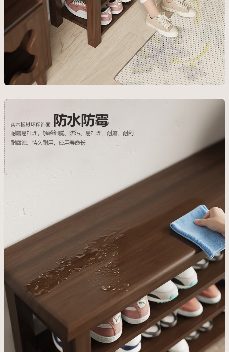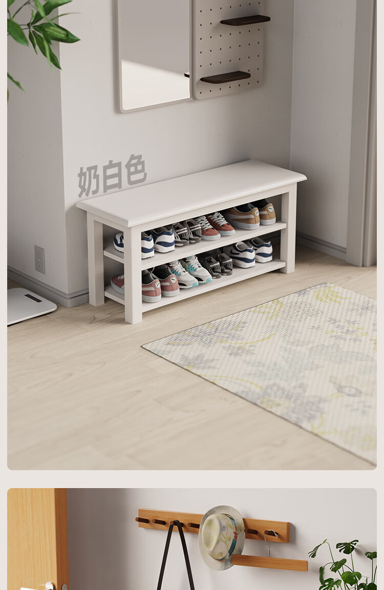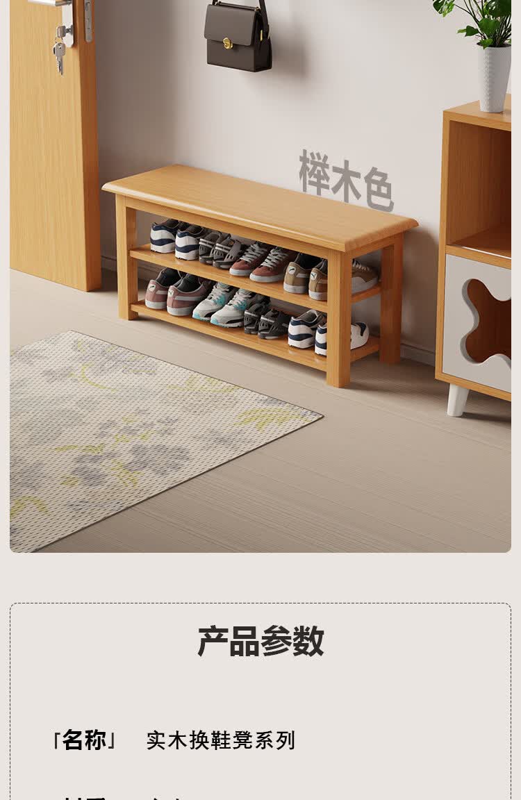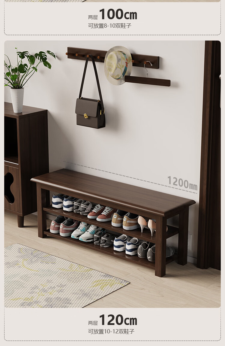 暖堂 WARM HALL免漆实木长条换鞋凳家用入户门口楼道可坐穿鞋 榉木色(原木座面) 120cm*30cm*42cm【两层】