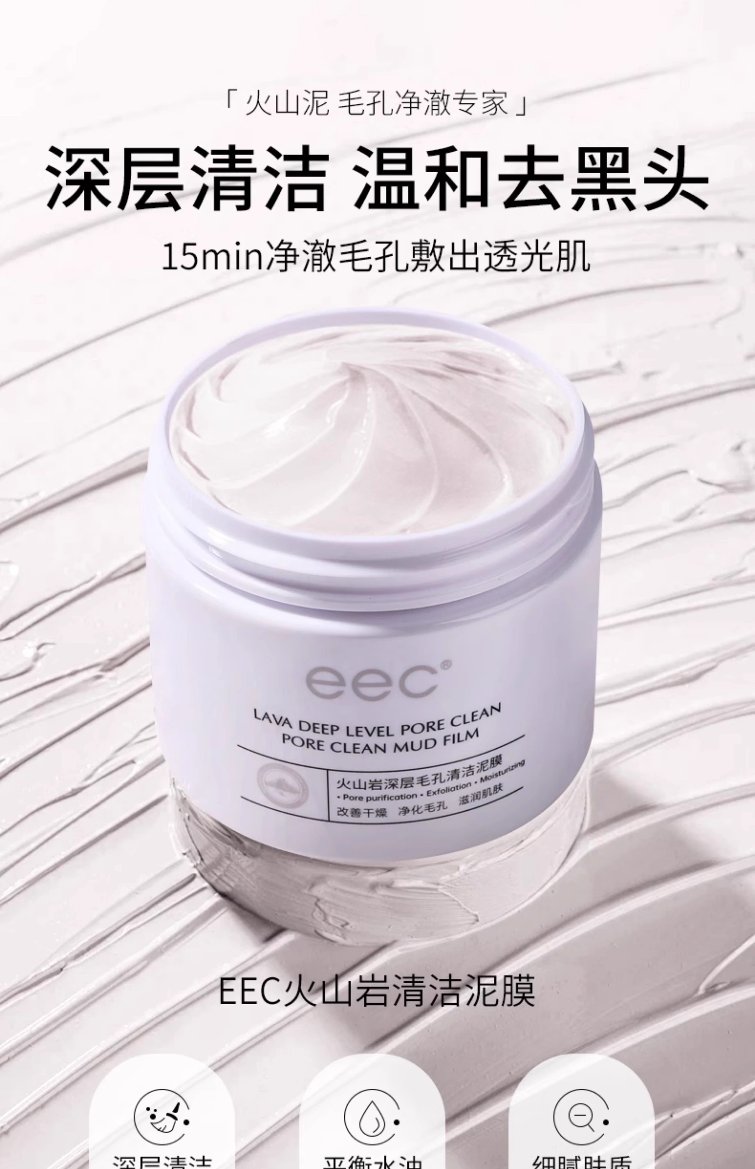 EEC清洁泥膜深层去黑头收缩毛孔粉刺涂抹式面膜女士黑头清理泥膜 100g*2【实惠装】