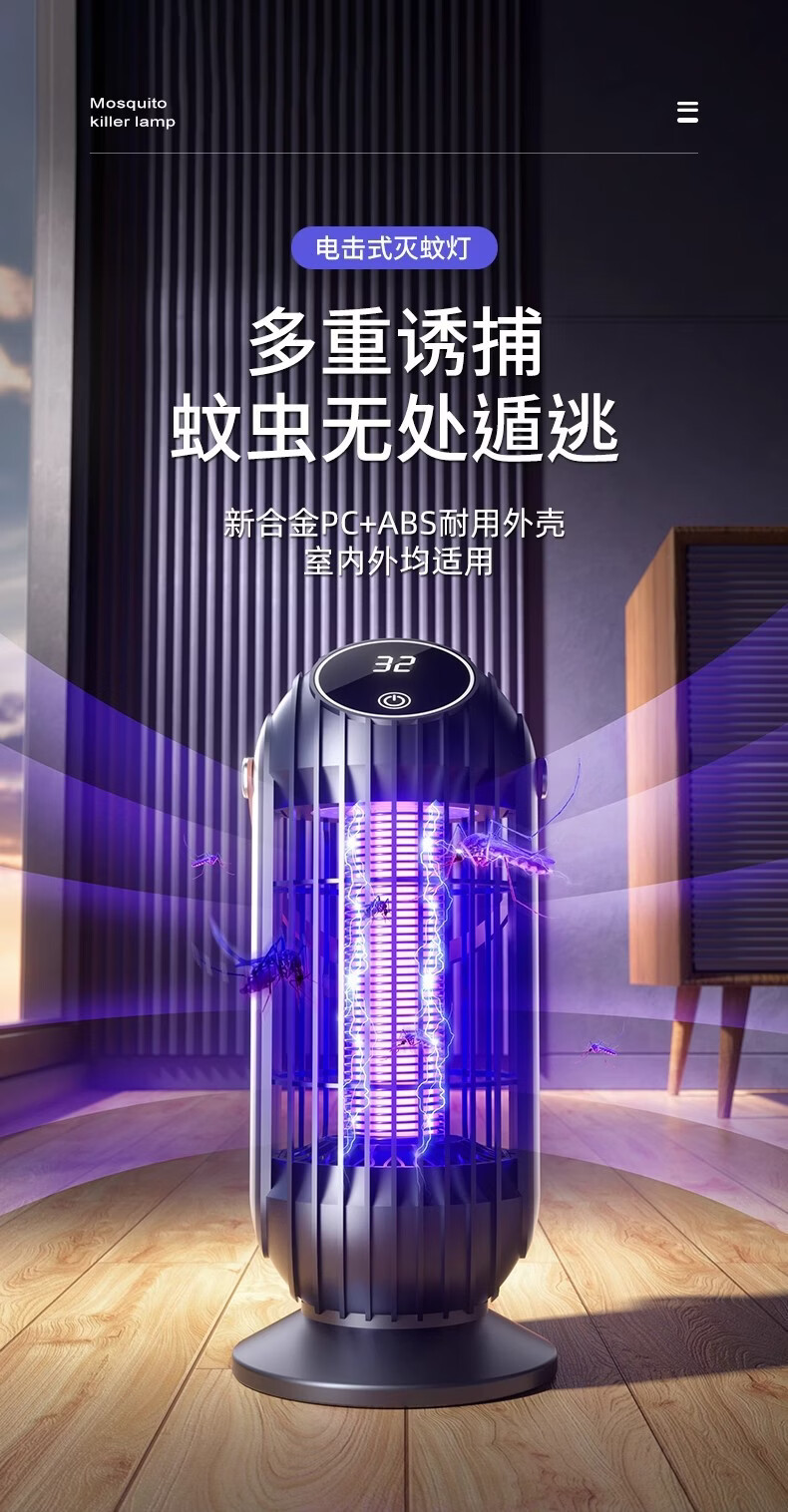 小猪饱饱灭蚊灯家用驱蚊超强力电击防蝇卧室内虫电蚊子婴儿诱杀 【充/插两用款】光控感应灭蚊灯 8仓当日发