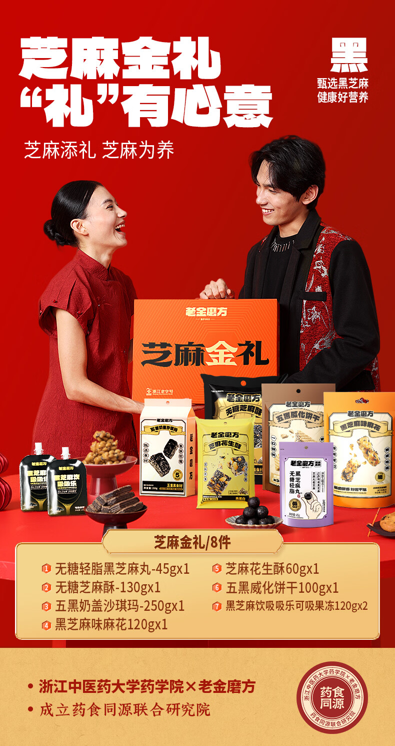 老金磨方芝麻佳礼零食礼盒健康佳节礼品大气送礼送亲友企业团购送礼年货节 【芝麻有礼】零食礼盒 945g*1盒