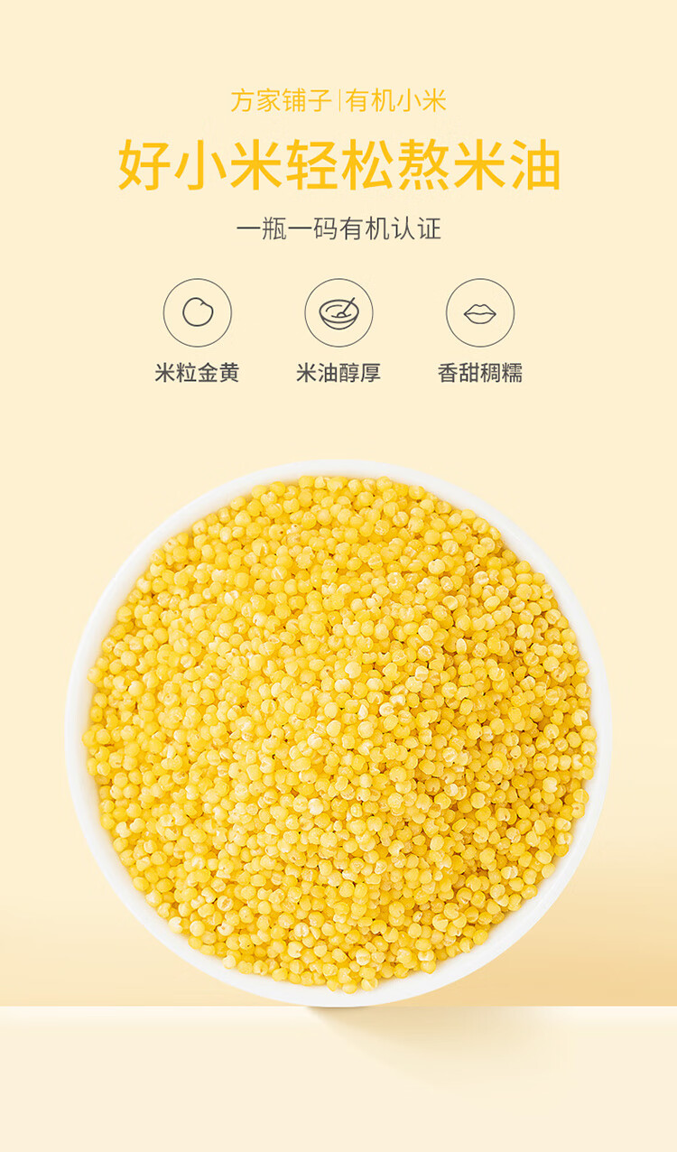 方家铺子敖汉有机黄小米450g 金苗K1 内蒙古赤峰小米 五谷杂粮粥 当季新米