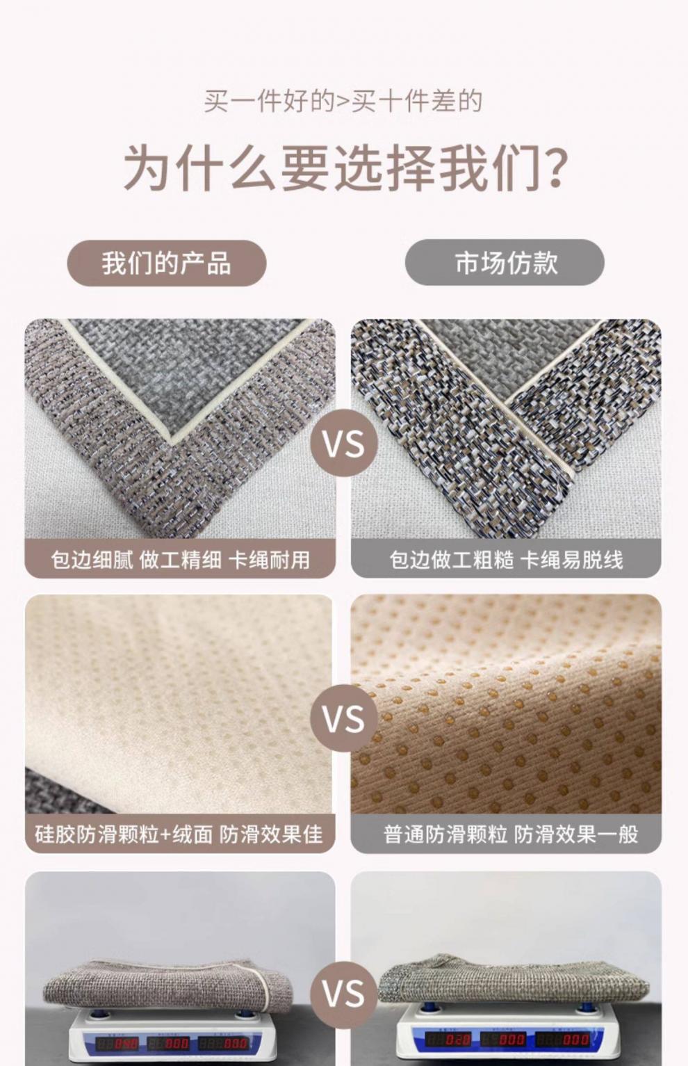 像素无胶地毯客厅法式风防水加厚防猫抓沙发地垫卧室毯高级感免洗可擦 素羽 160X230【适合2~2.4米沙发】