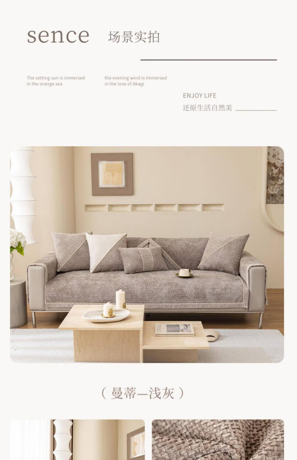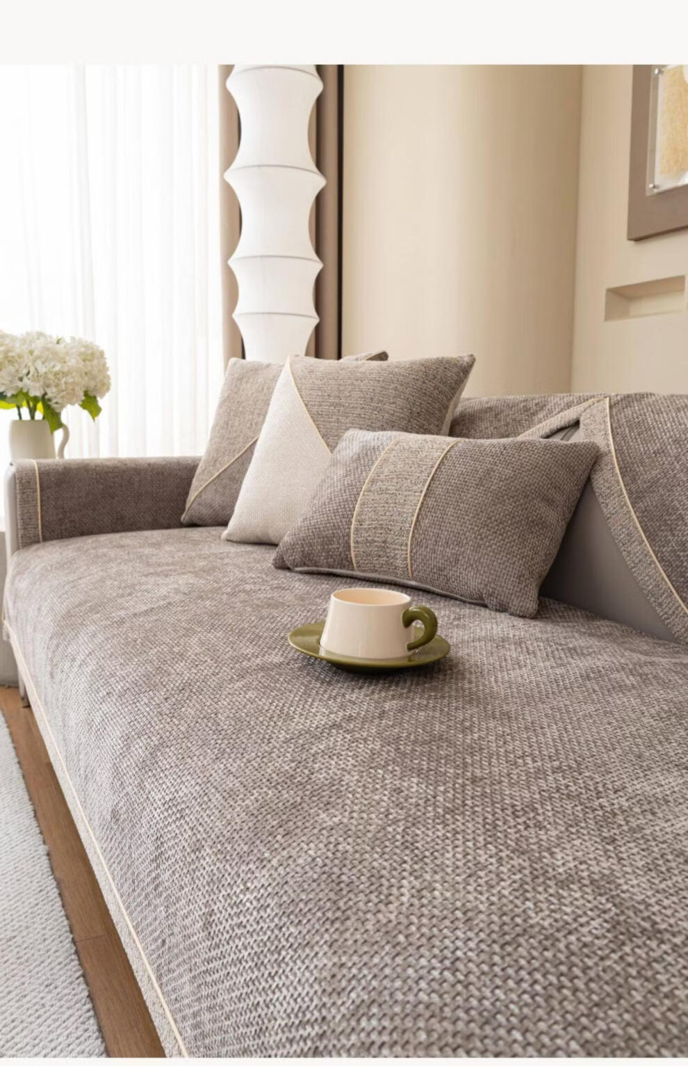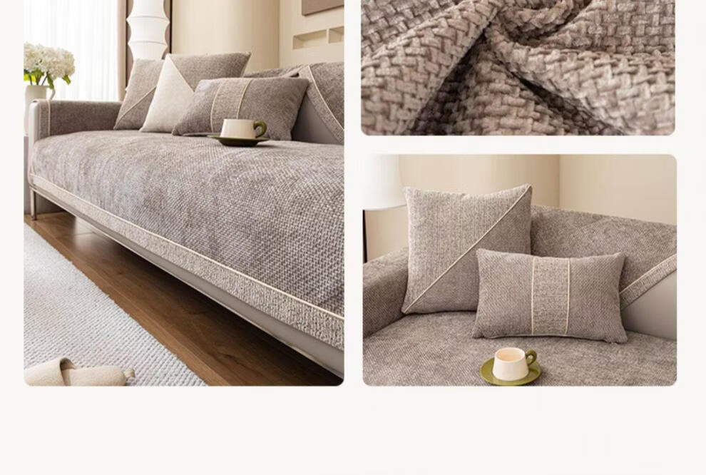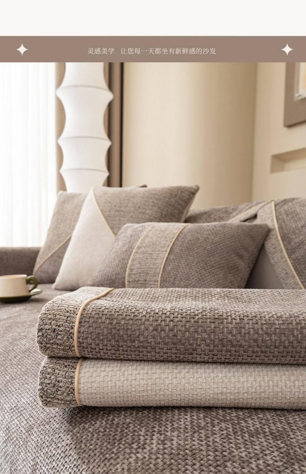 DONOYA 多罗亚简约现代轻奢皮沙发垫四季通用防滑2026年新款高端盖布雪尼尔坐垫 曼蒂-浅灰 1cm*1cm 定制专拍(定制不退换)