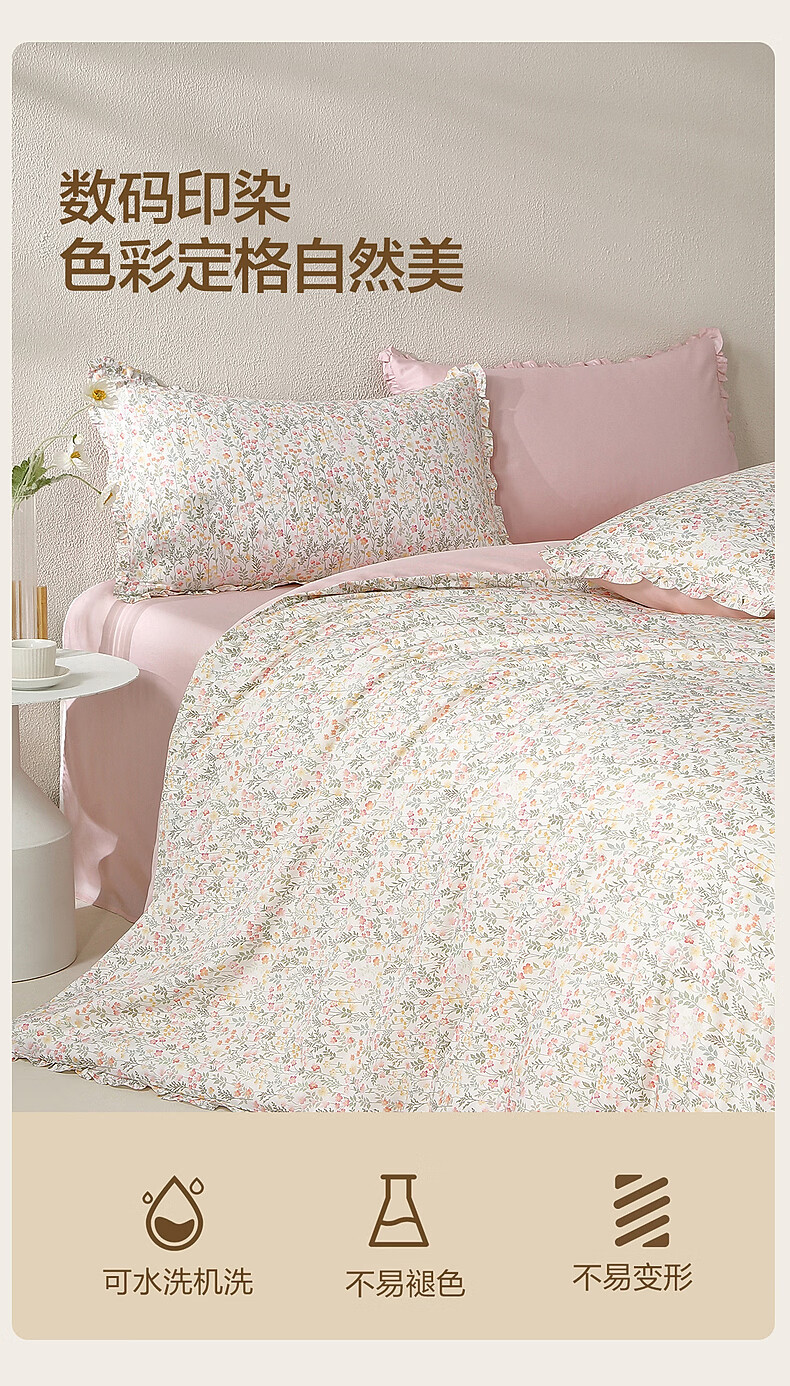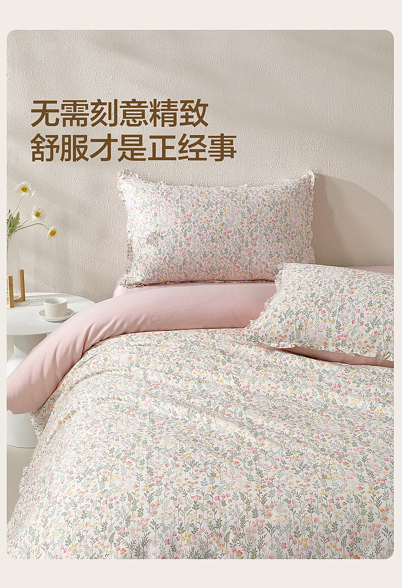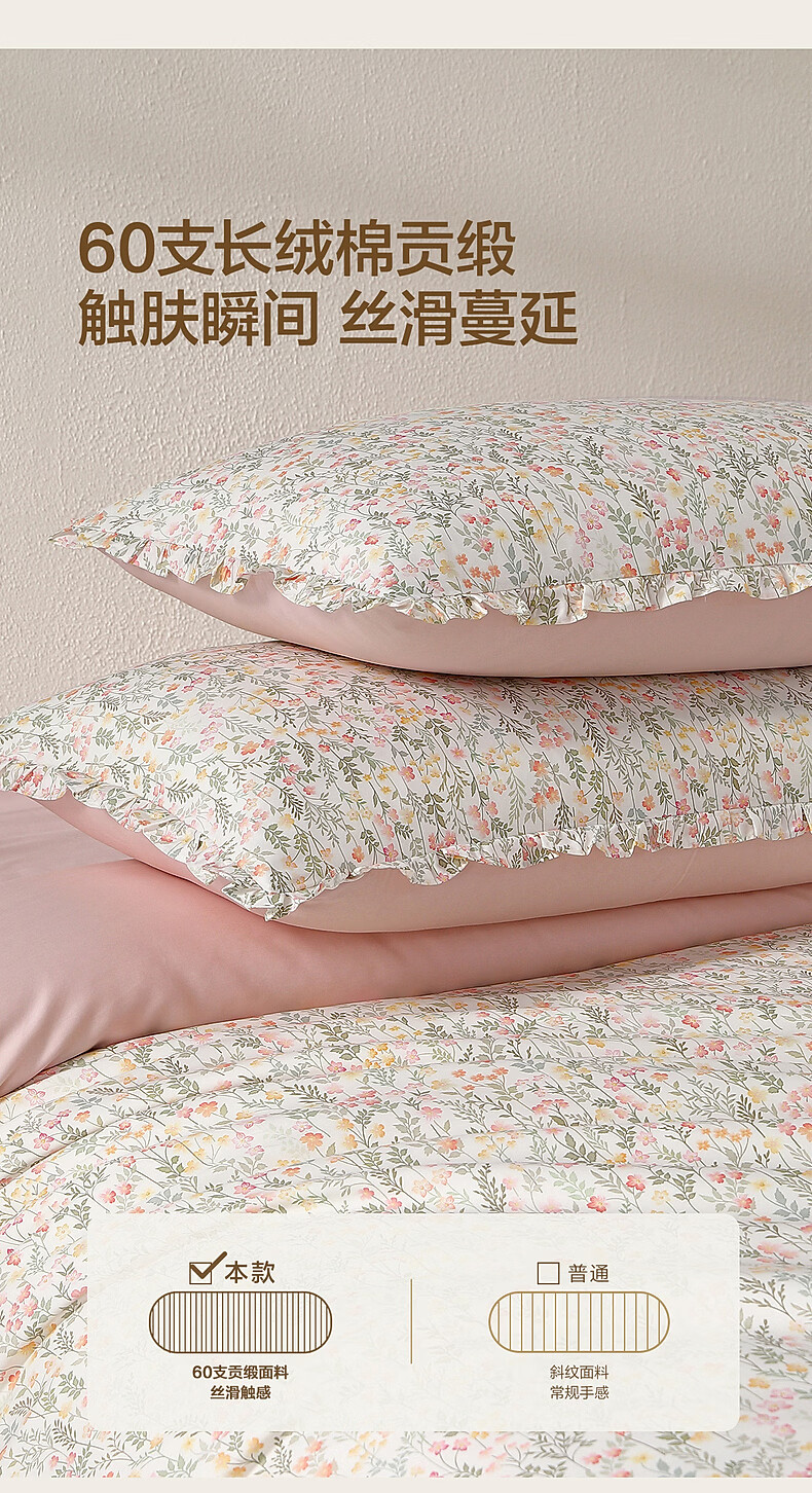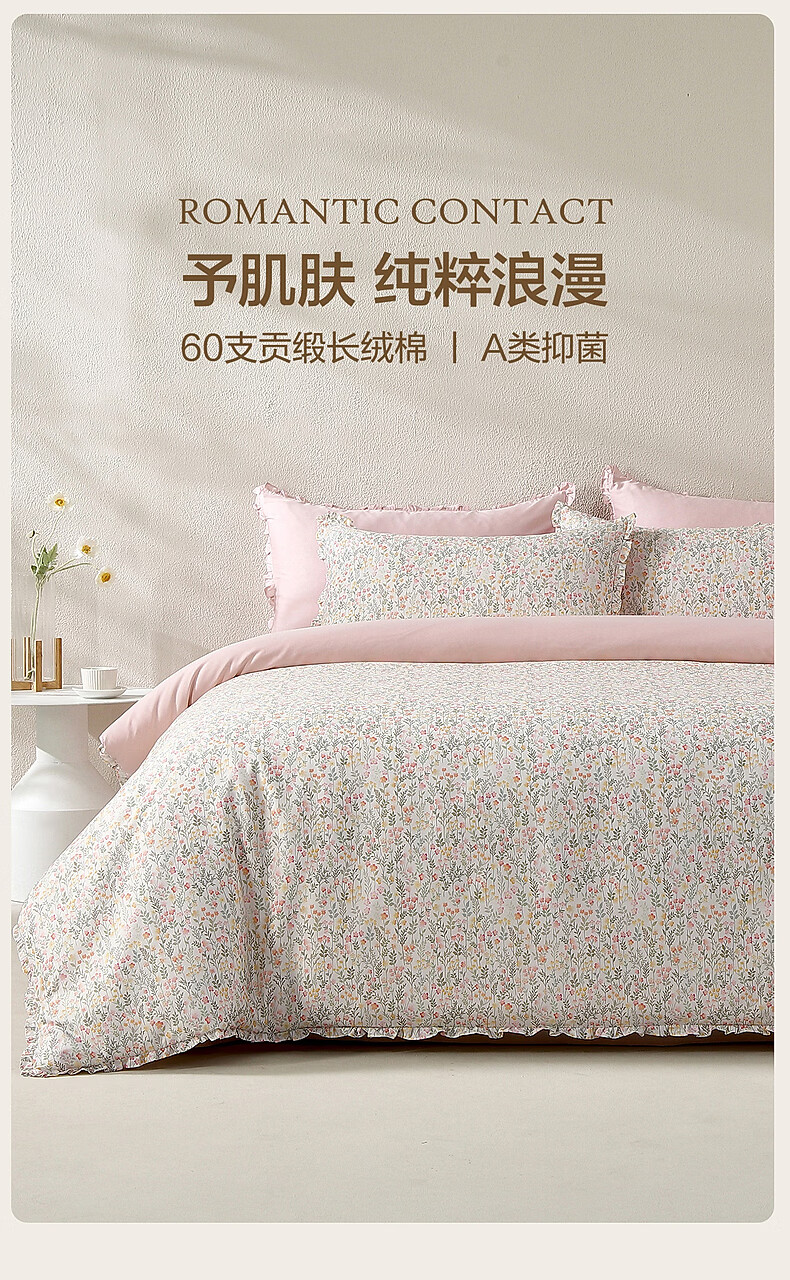 水星家纺床上四件套60支长绒棉纯棉100%A类轻奢高级26年春夏新品 春野花序·雅 床单款 (被套150*210cm)
