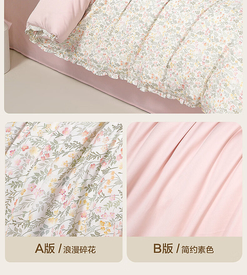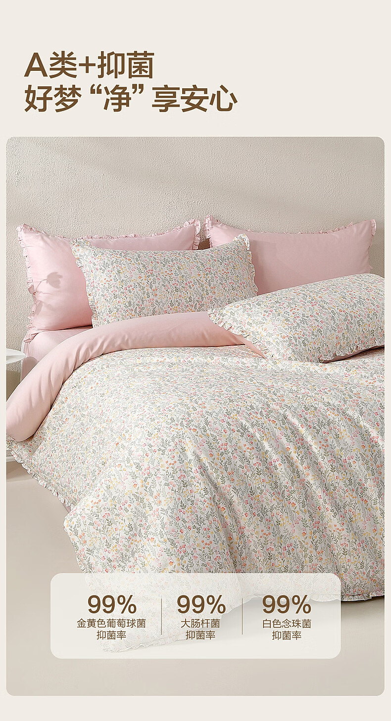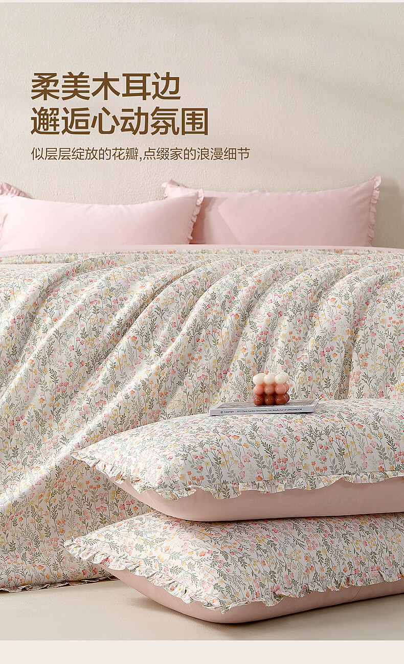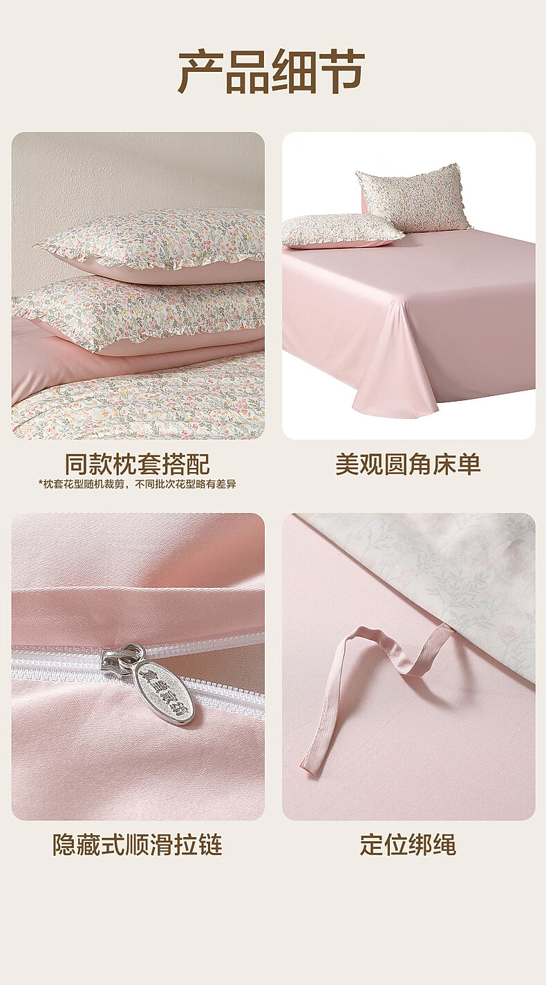 水星家纺床上四件套60支长绒棉纯棉100%A类轻奢高级26年春夏新品 春野花序·雅 床单款 (被套150*210cm)