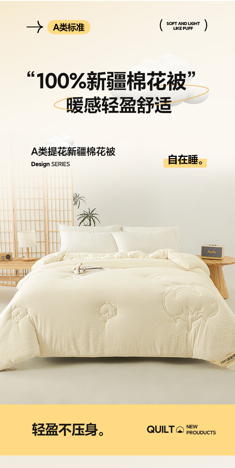 无印良品100%新疆纯棉花夏凉被空调被子夏季单人宿舍薄被子可机洗裸睡夏被 棉玲白【新疆一级棉花 可机洗】 150x200cm夏被