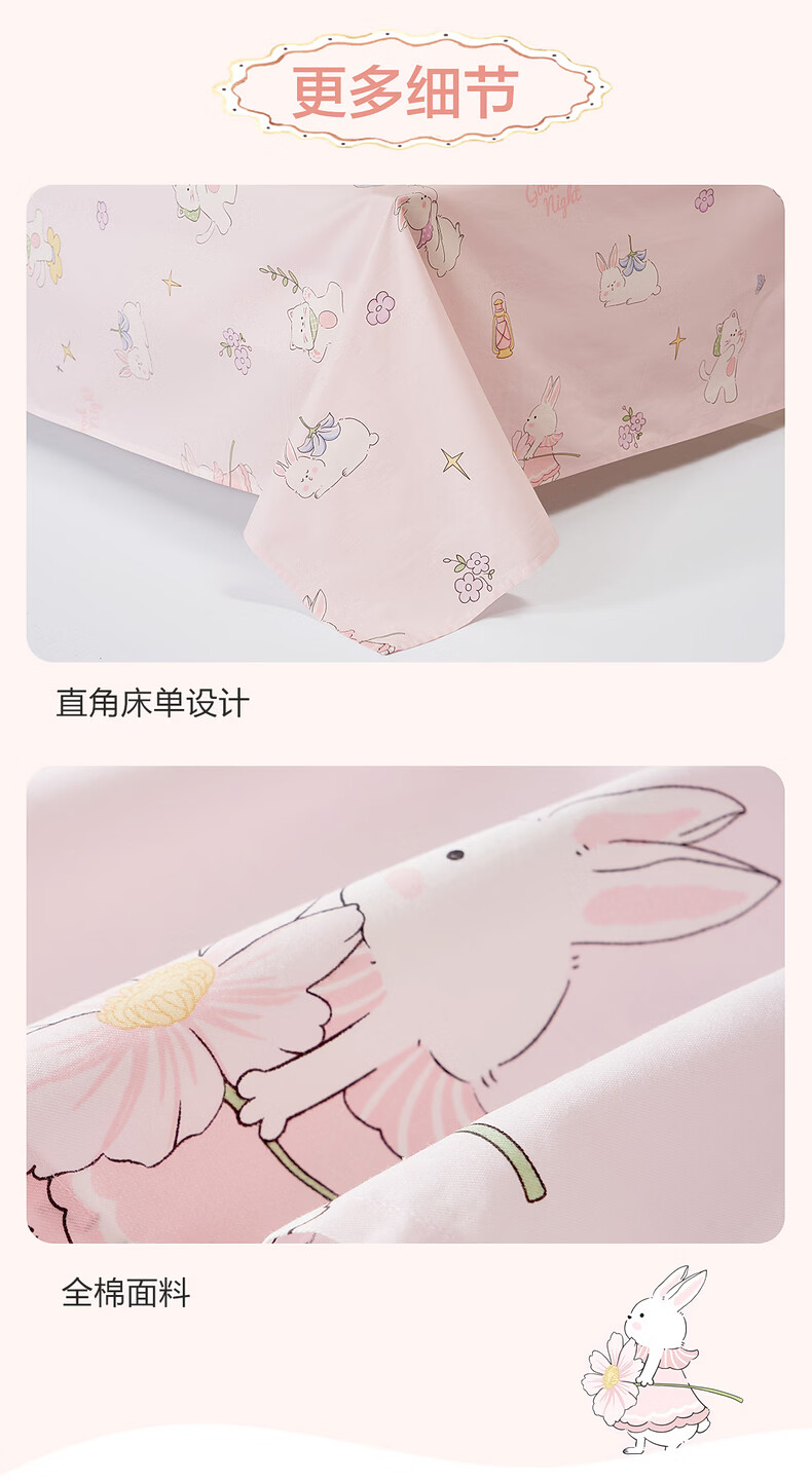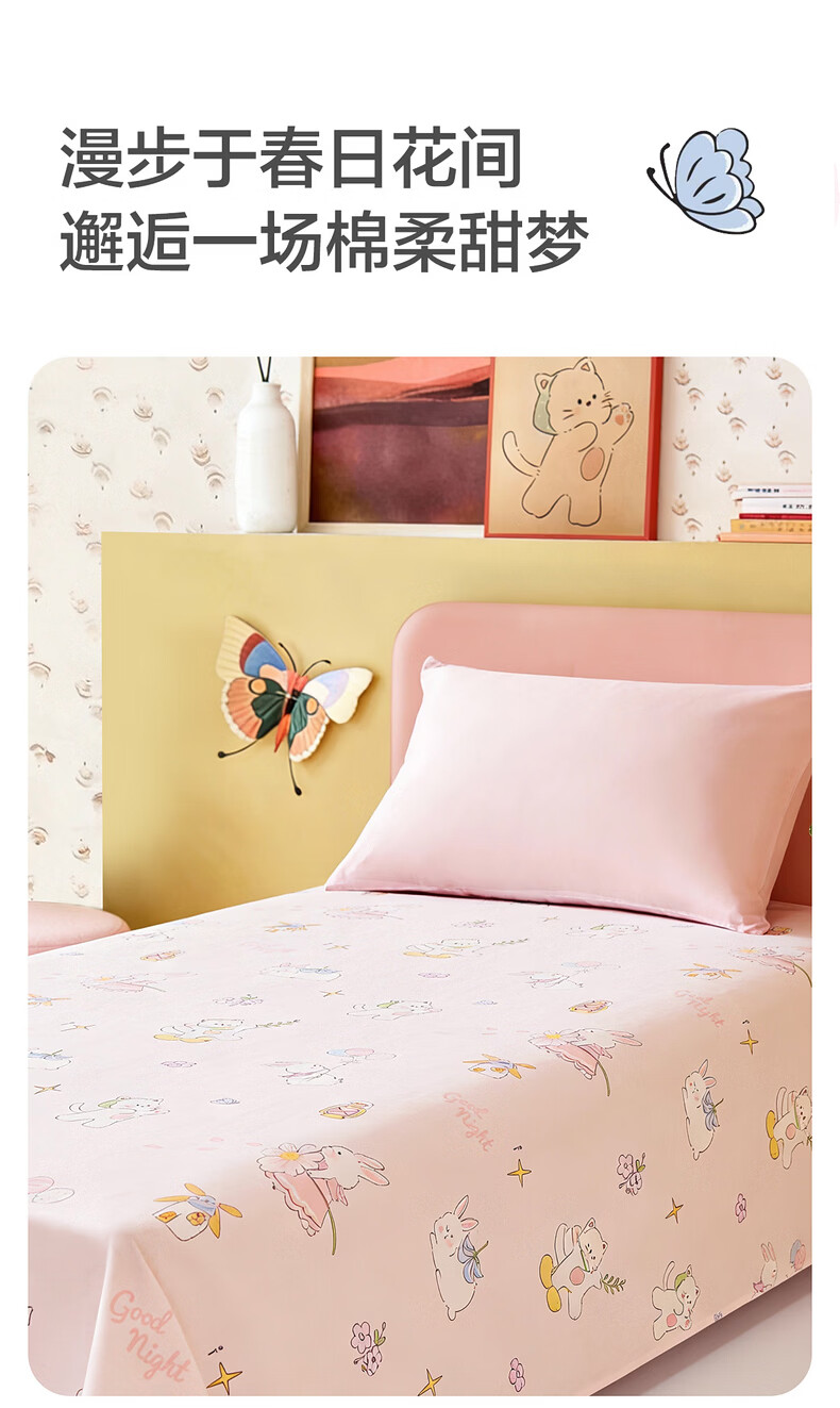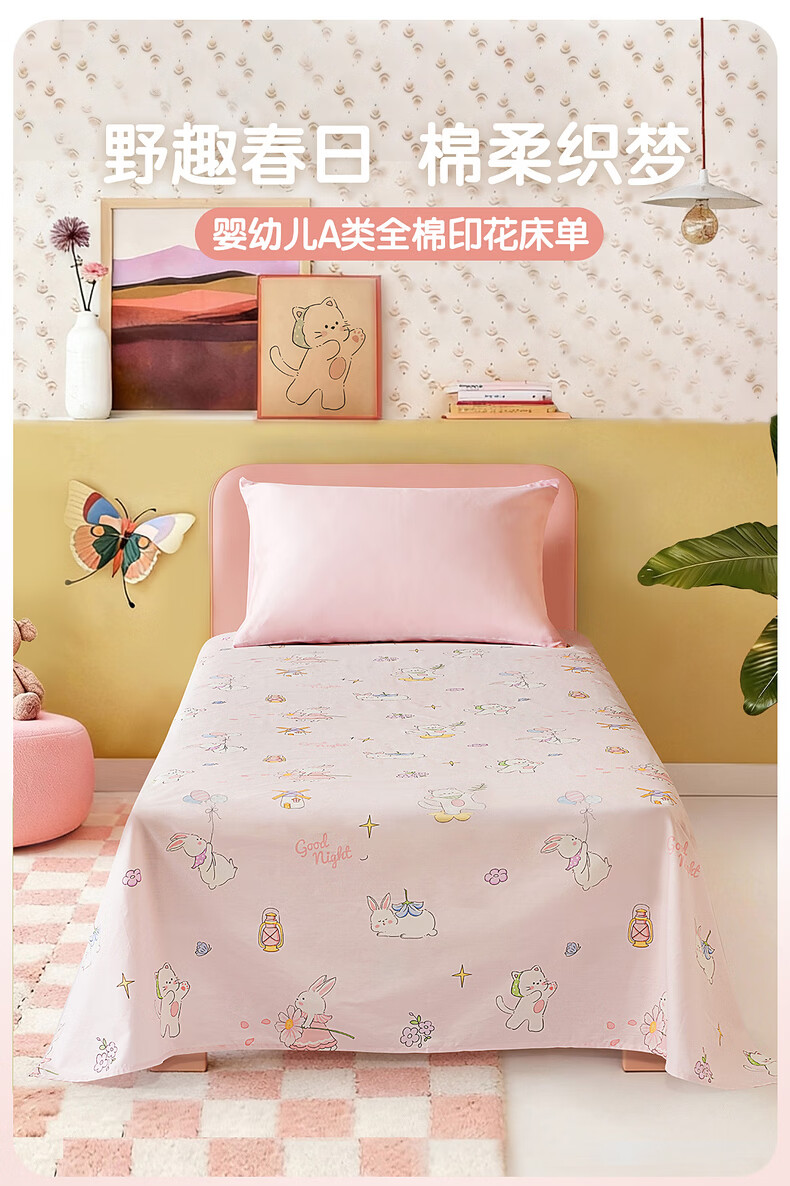 水星家纺野趣春日绒绒全棉印花床单 野趣春日绒绒全棉印花床单 160cm*230cm