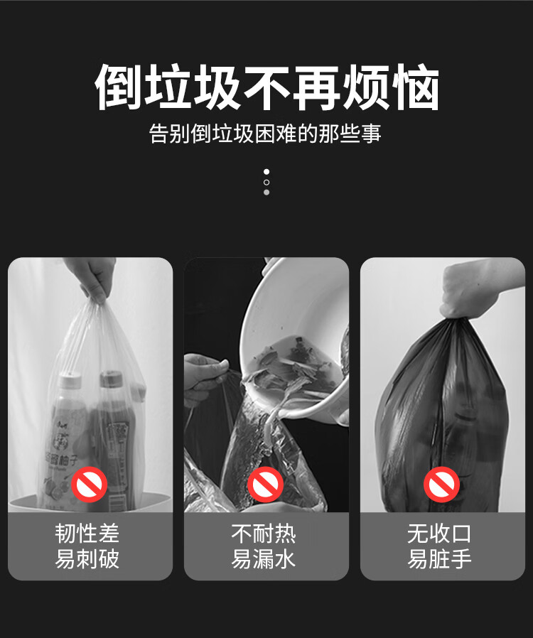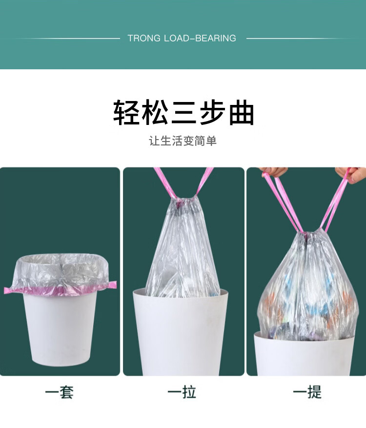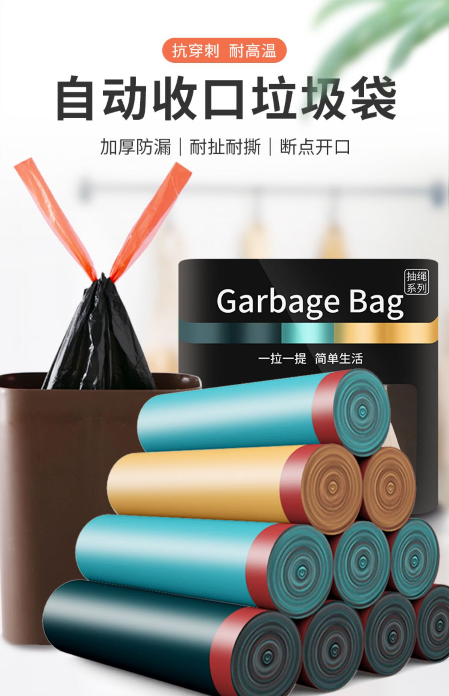 Kaooseen一次性餐厨具抽绳垃圾袋自动收口手提式加厚办公室客厅 1卷15只【体验装】
