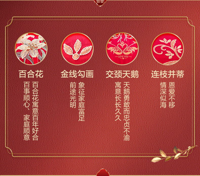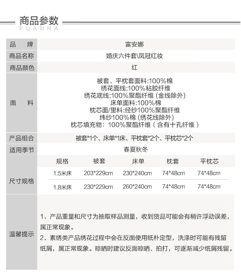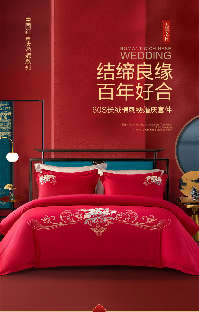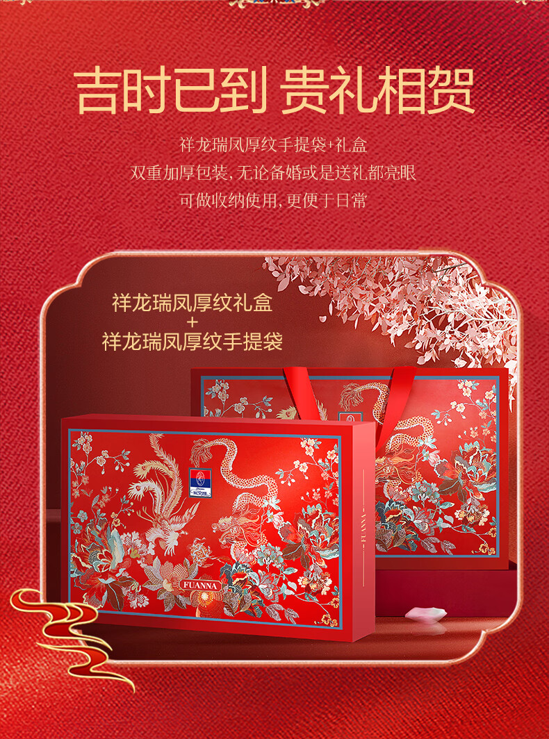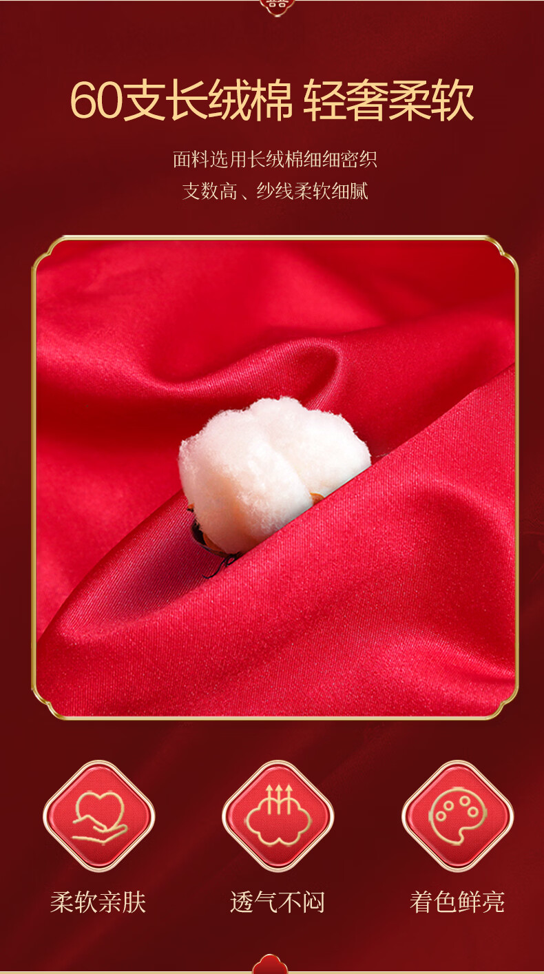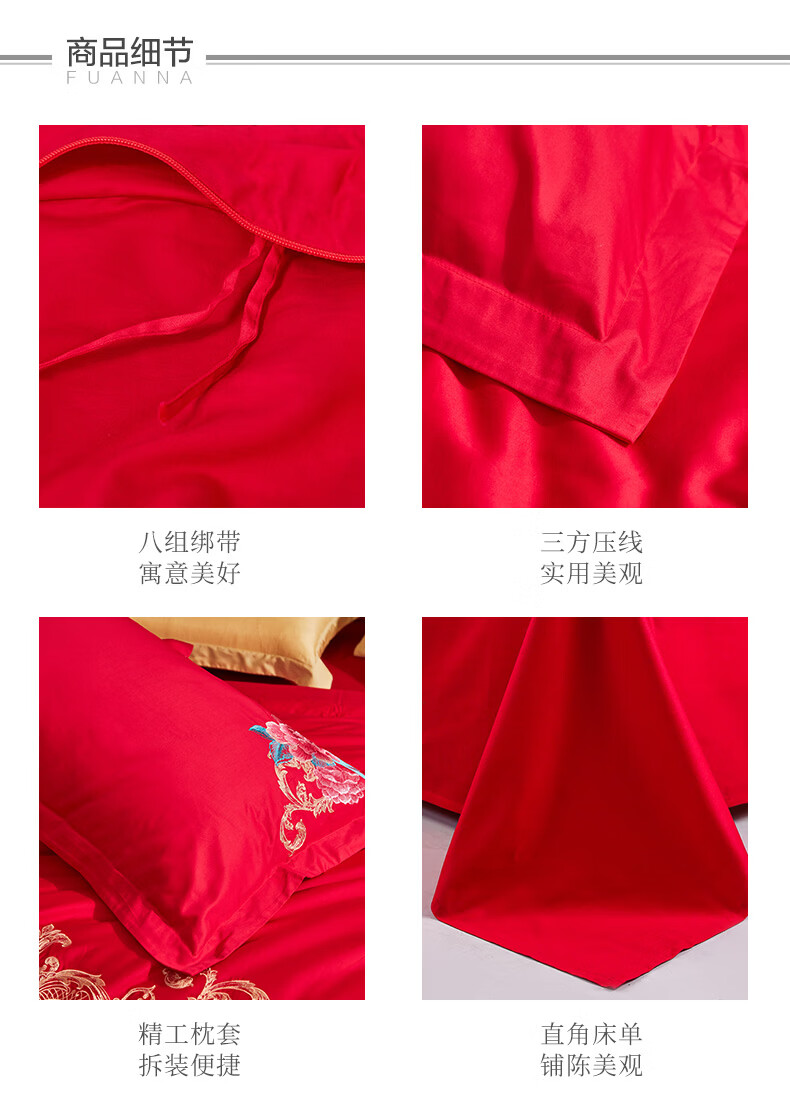 富安娜家纺 长绒棉刺绣婚庆组套 高级感结婚床品套装婚房陪嫁全套 凤冠红妆-【八件套】蚕丝二合一被 1.8米/2米床(230*229cm)