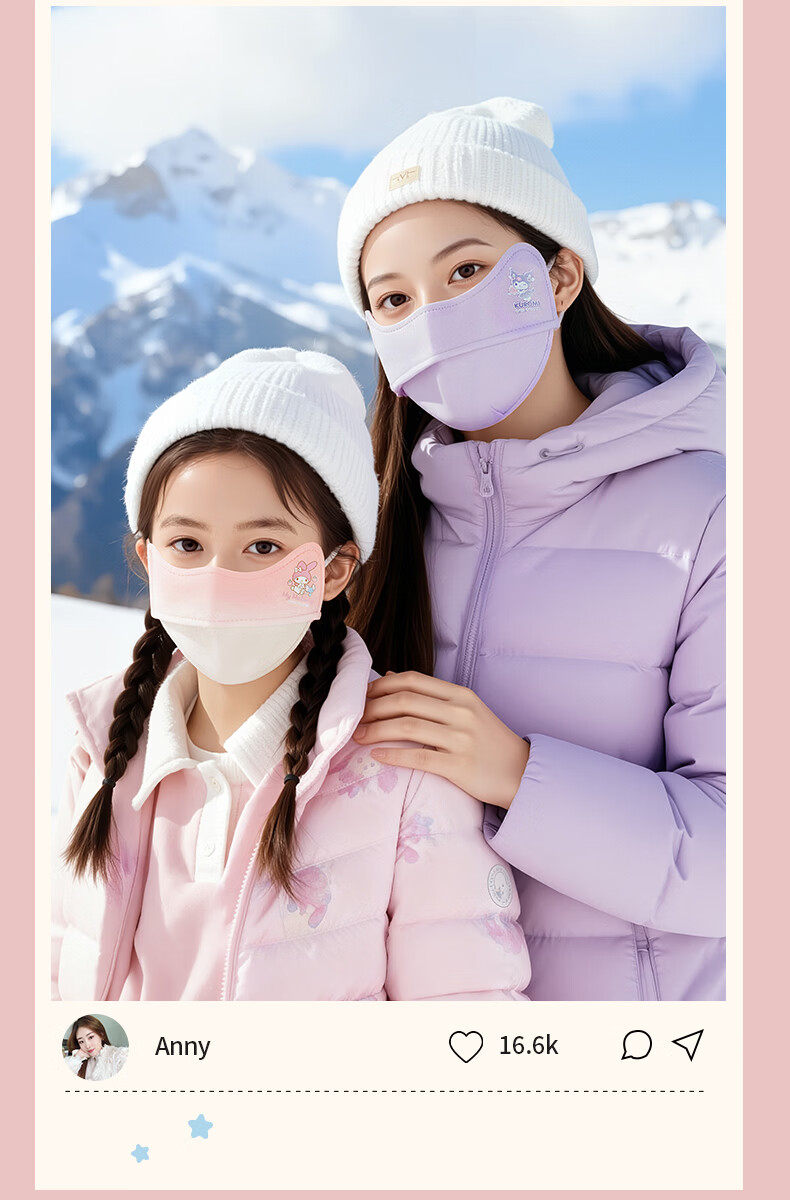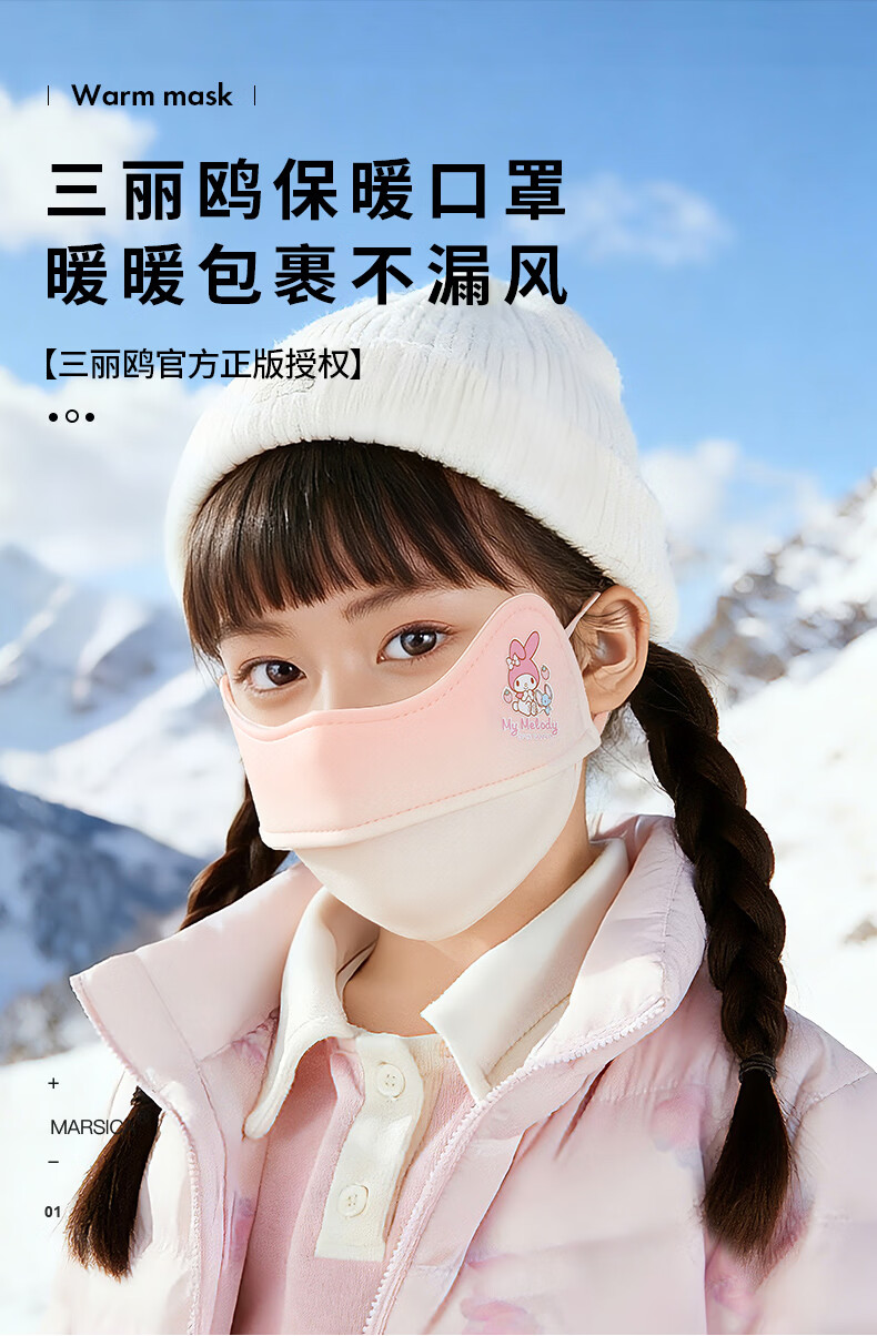 MARSICA三丽鸥口罩女高颜值2025新款成人保暖面罩儿童保暖口罩冬防寒防风 成人款37*17cm【凯蒂猫黑色】密绒保暖 | 可调节耳绳