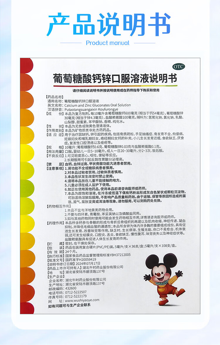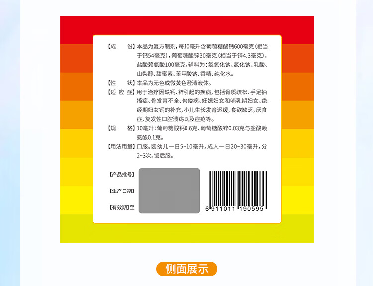 [金辛金丐特]葡萄糖酸钙锌口服溶液 10ml*30支 1盒装 10ml*30支 999澳诺 葡萄糖酸钙酸锌口服液儿童钙液体钙