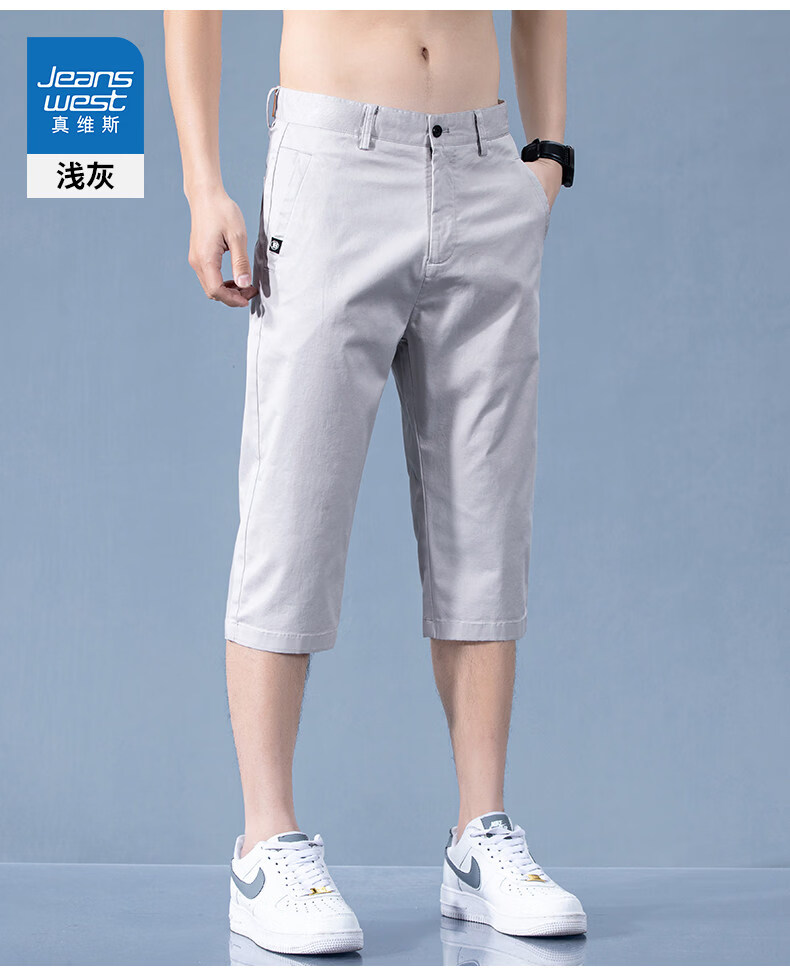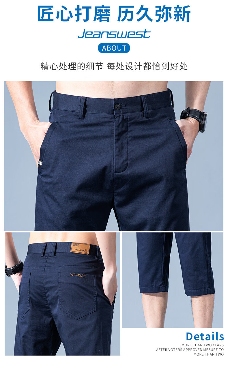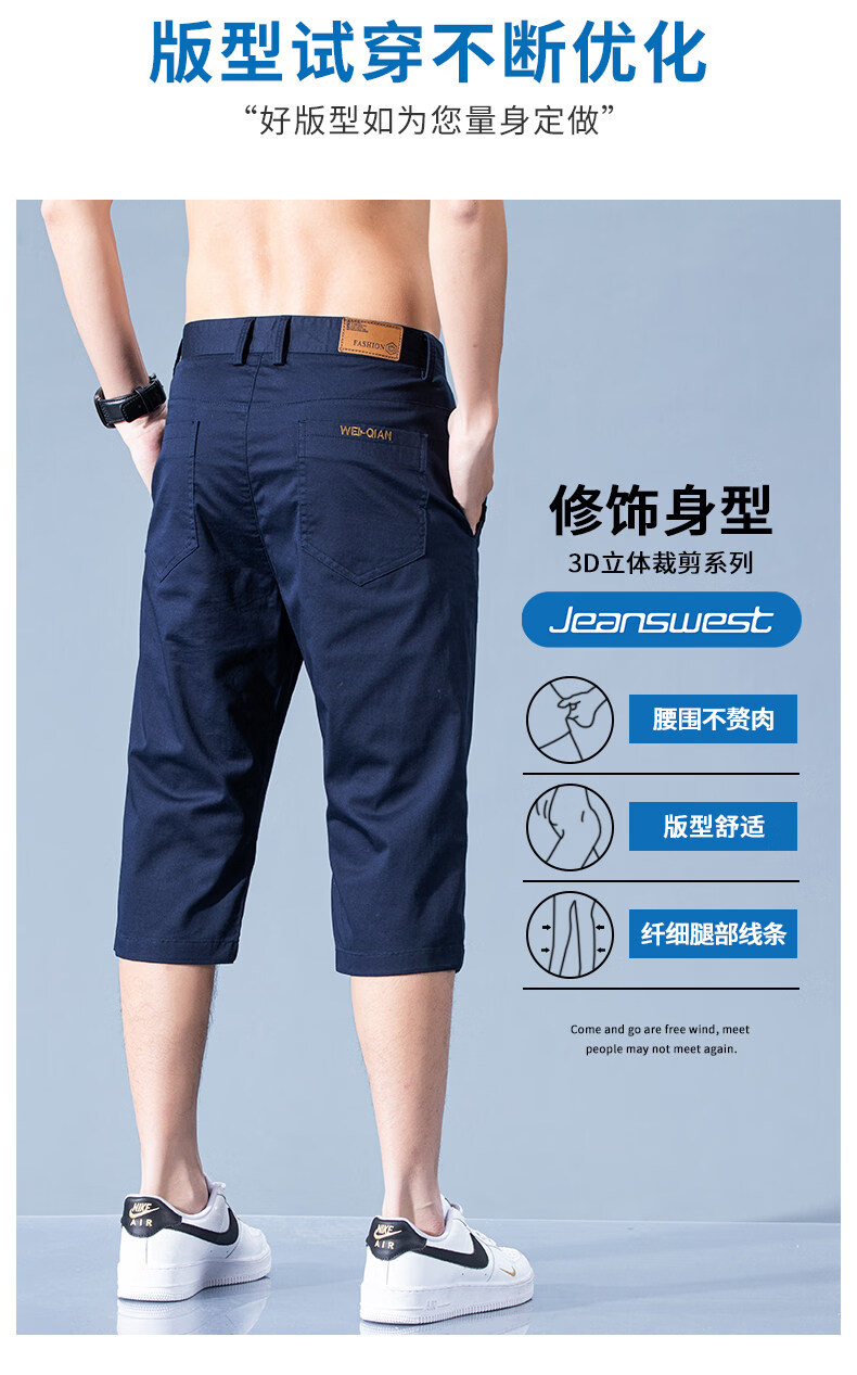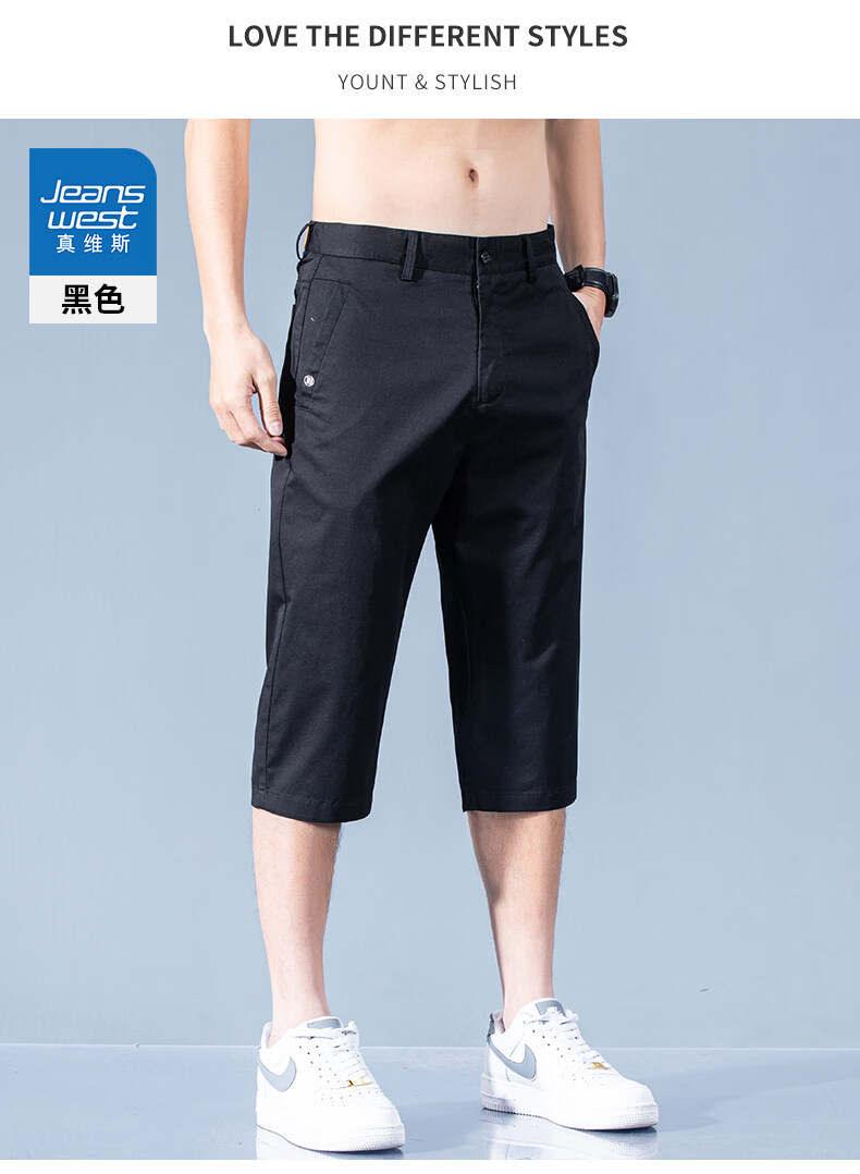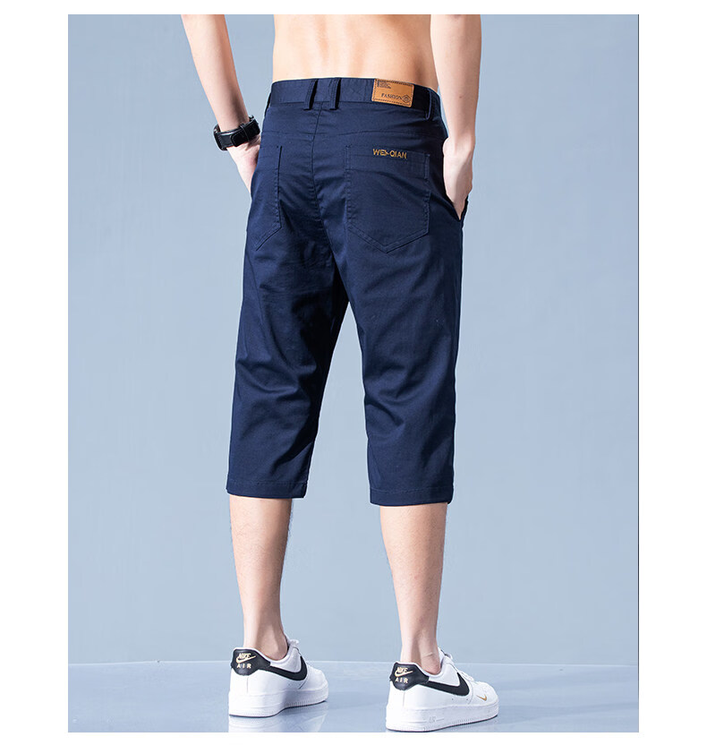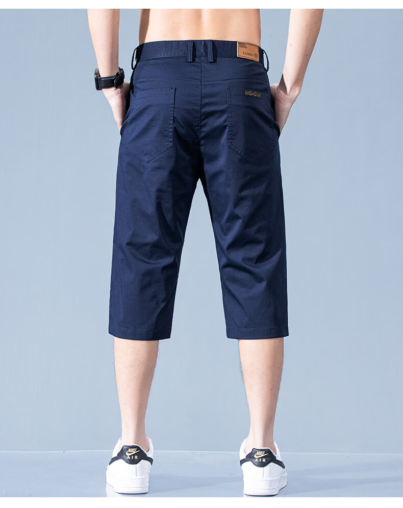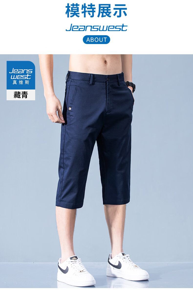 真维斯休闲短裤男款夏季薄款七分裤男士宽松直筒藏青纯棉中裤男士 藏青 28