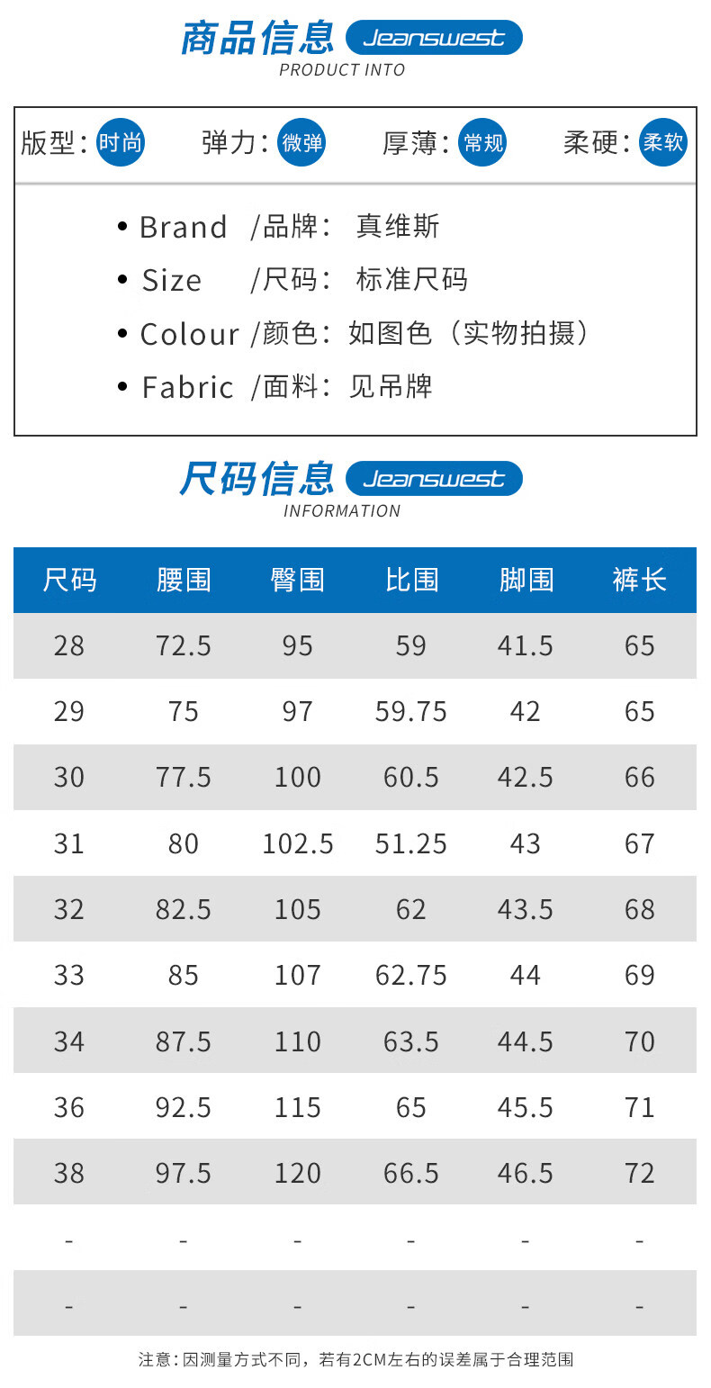 真维斯(Jeanswest)牛仔裤男潮牌新款男高街休闲裤男士2026春秋季百搭垂感直筒长裤男 深牛仔蓝 纯色 31 (2尺4)