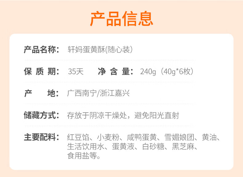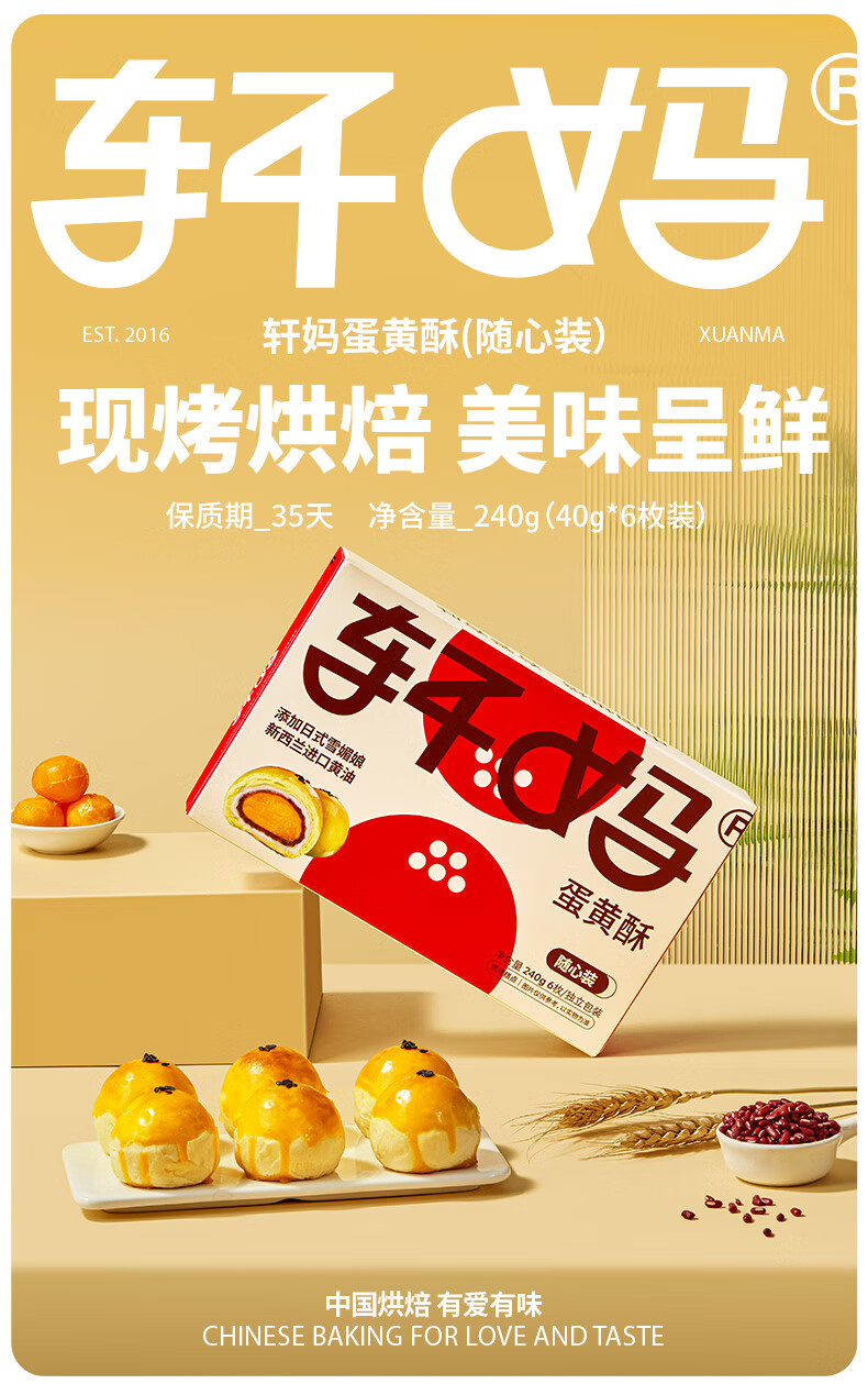 轩妈蛋黄酥40g*6枚装糕点礼盒蛋糕咸鸭蛋黄红豆味中式糕点多口味 随心装40g*6枚【满2送礼袋】