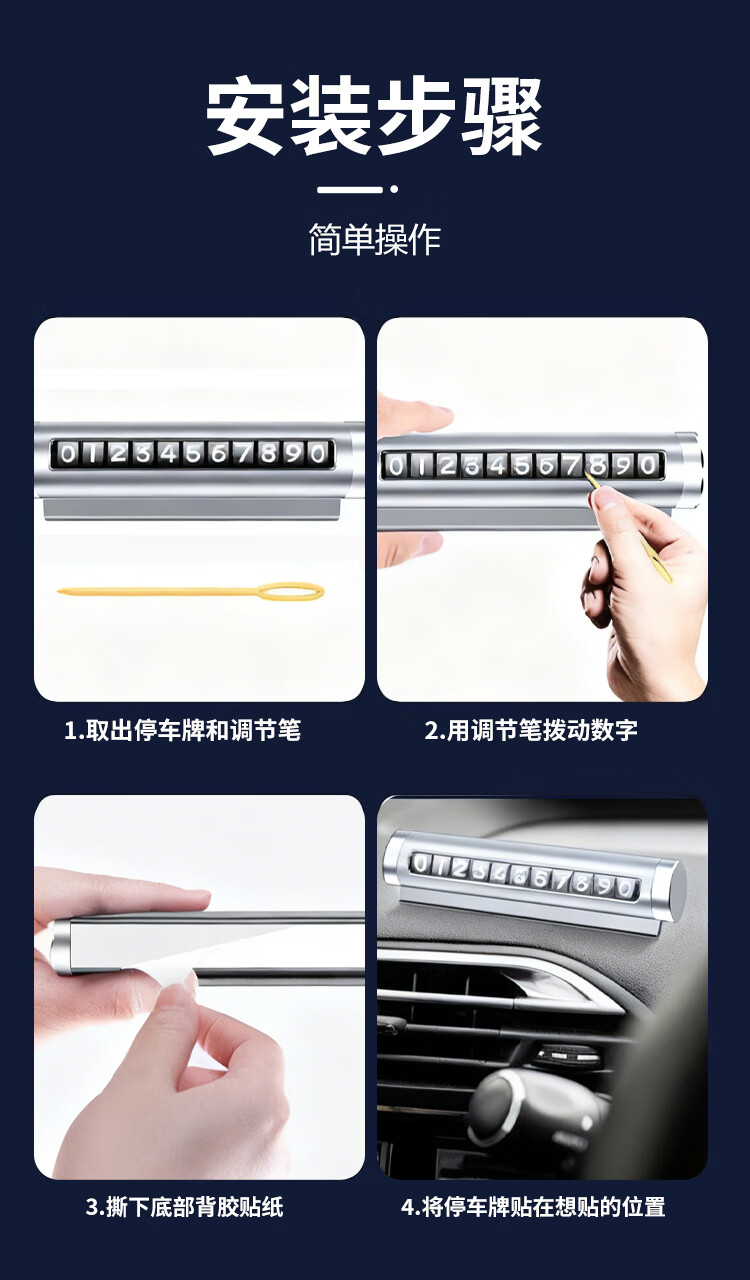 贝傅特挪车电话牌临时停车牌手机号码牌铝合金车载停靠牌汽车用品银色