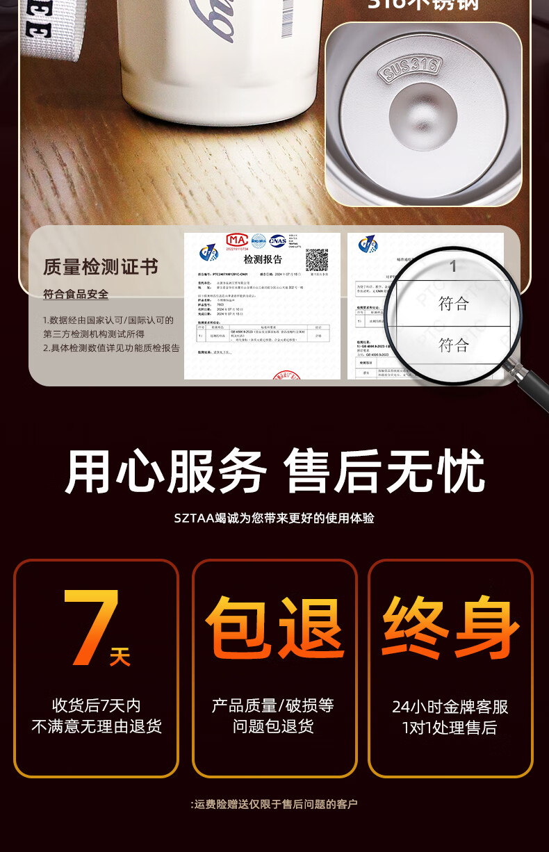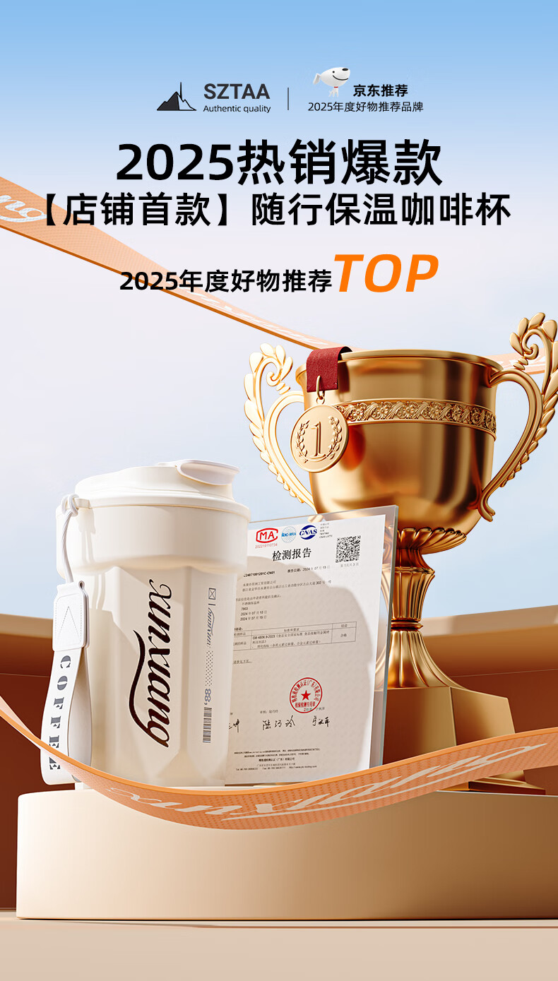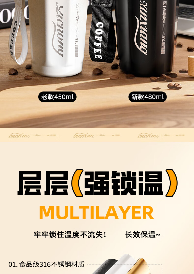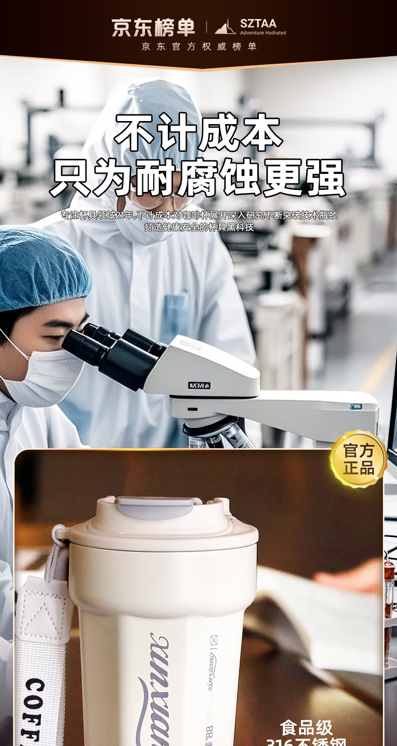 SZTAA保温杯男女士学生咖啡杯316不锈钢高颜值随手杯送女朋友节日礼物 尊享双拼色【抗菌内胆】480ml