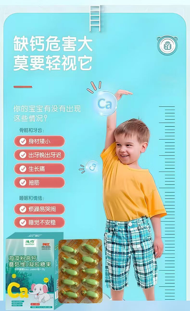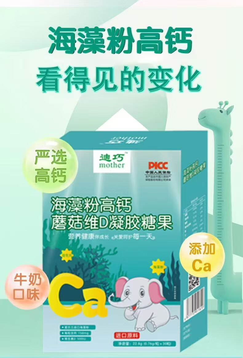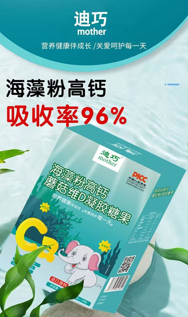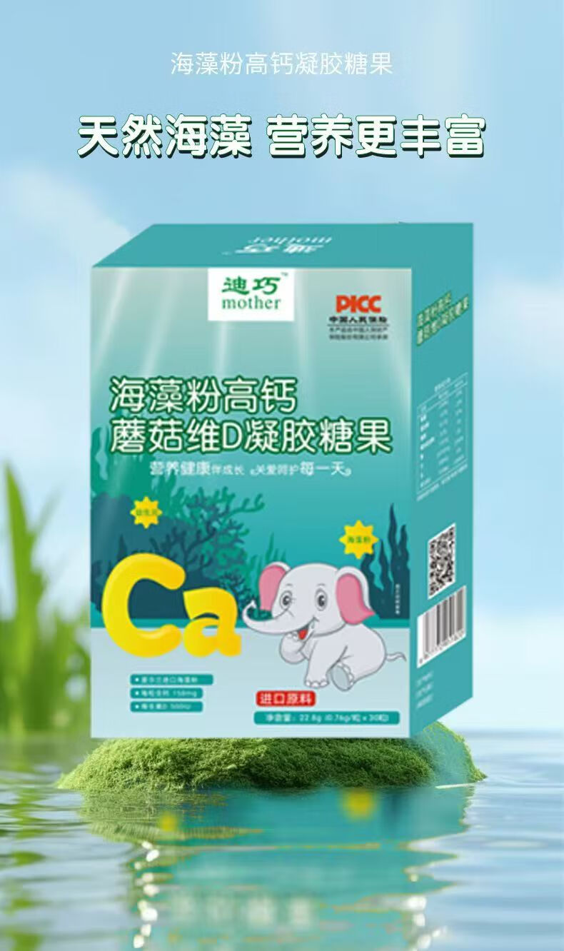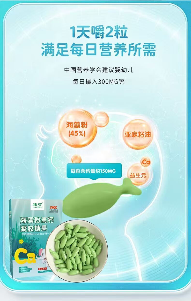 迪巧海藻钙液体钙婴幼儿童婴儿钙0-3岁宝宝缺钙6-12个月补钙0-18岁 【赢在起点】 30粒*1盒