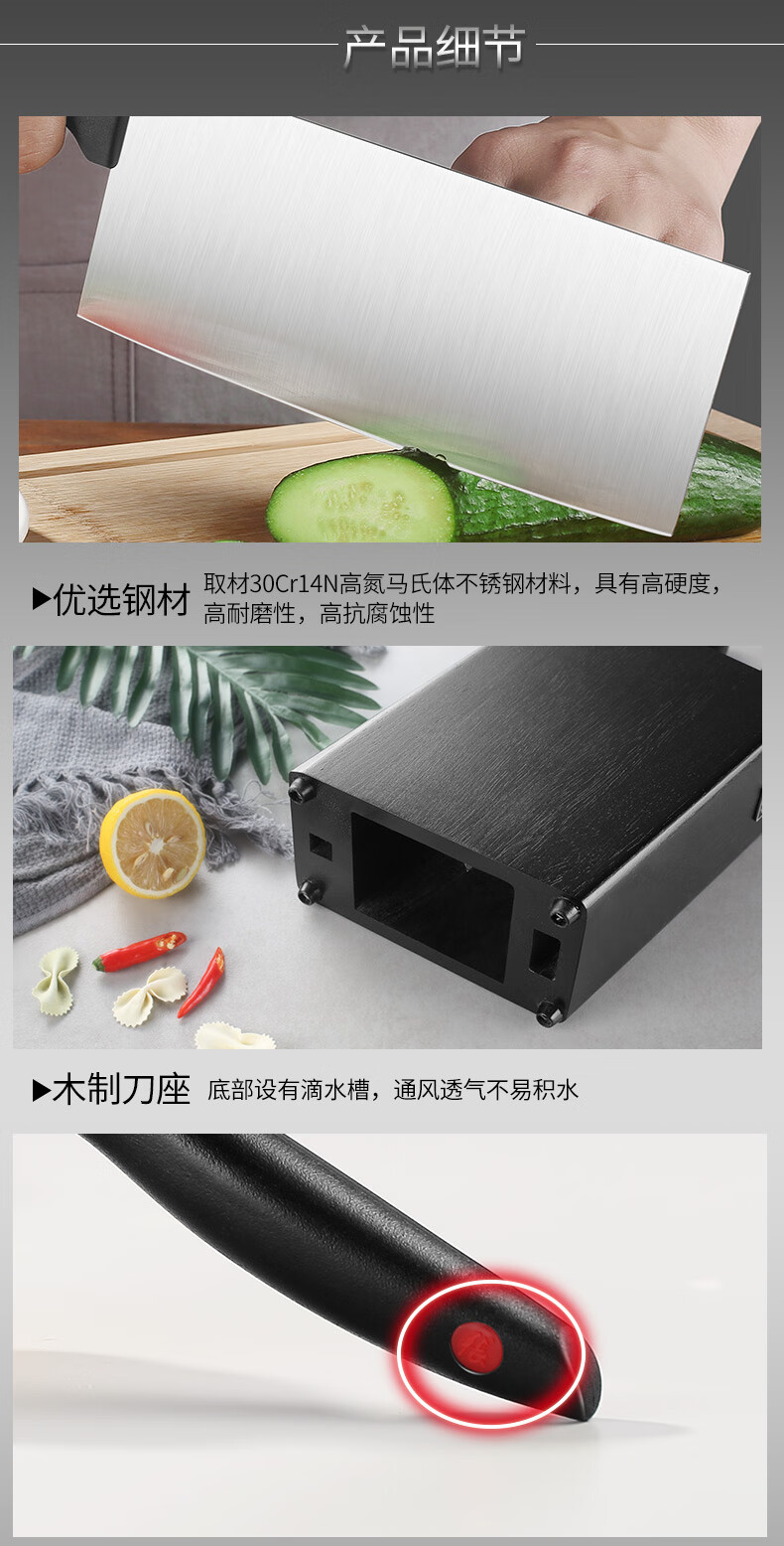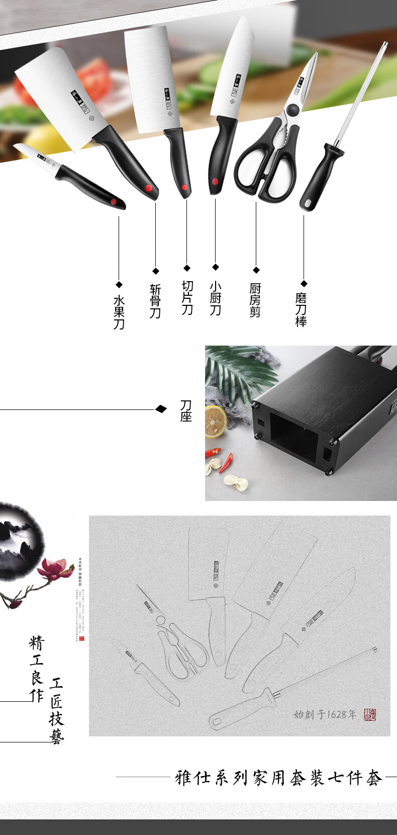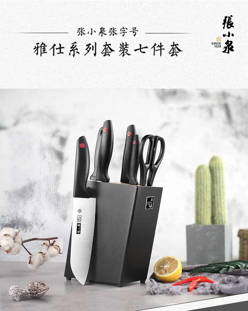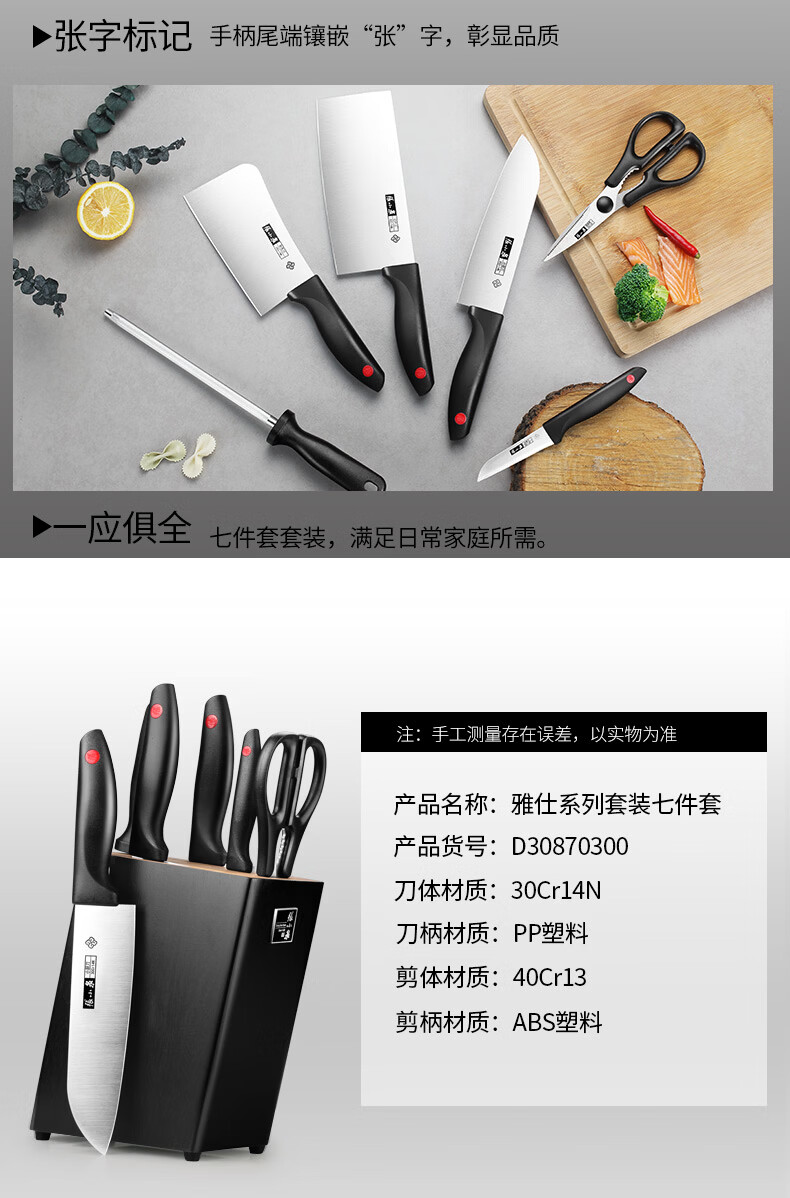 张小泉张字号【雅仕七件套】不锈钢厨房刀具防滑刀柄菜刀套装家用 张字号雅仕七件套