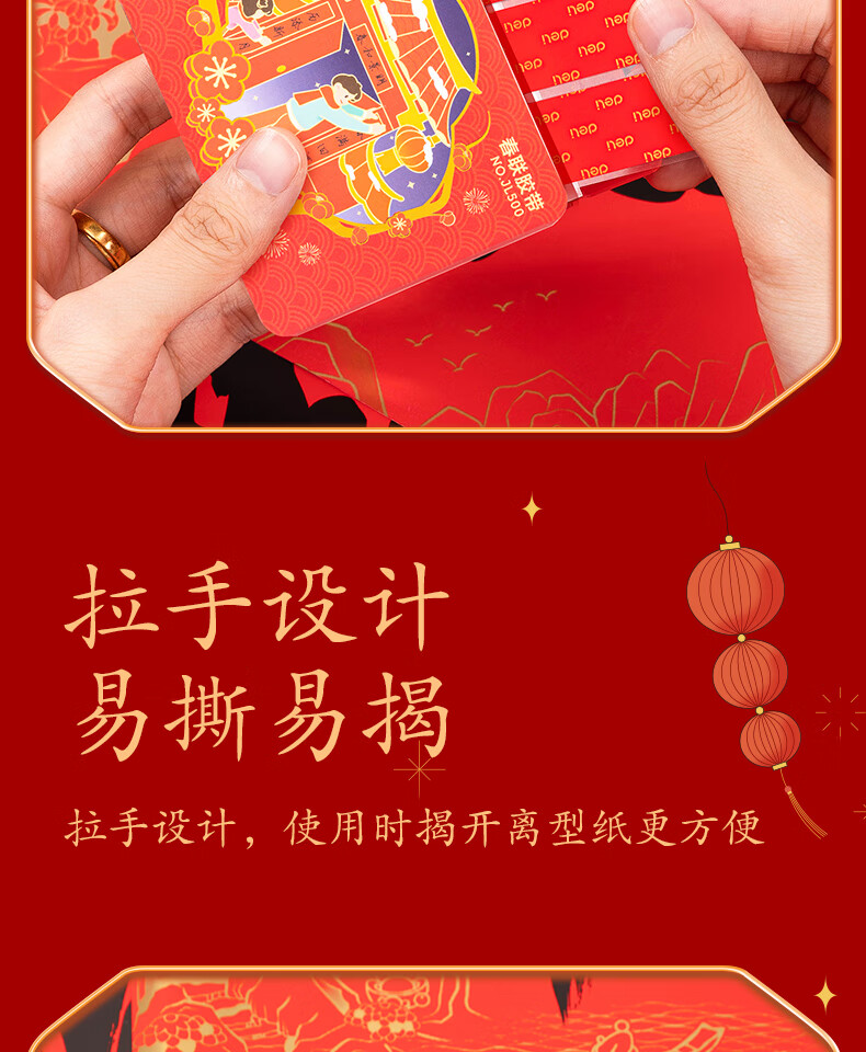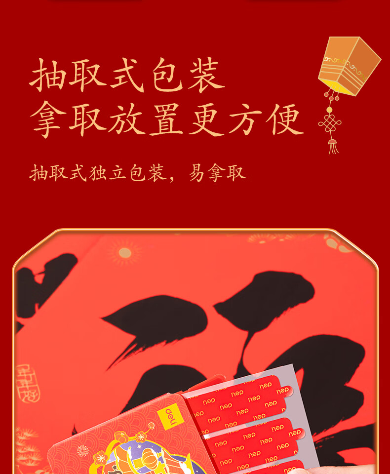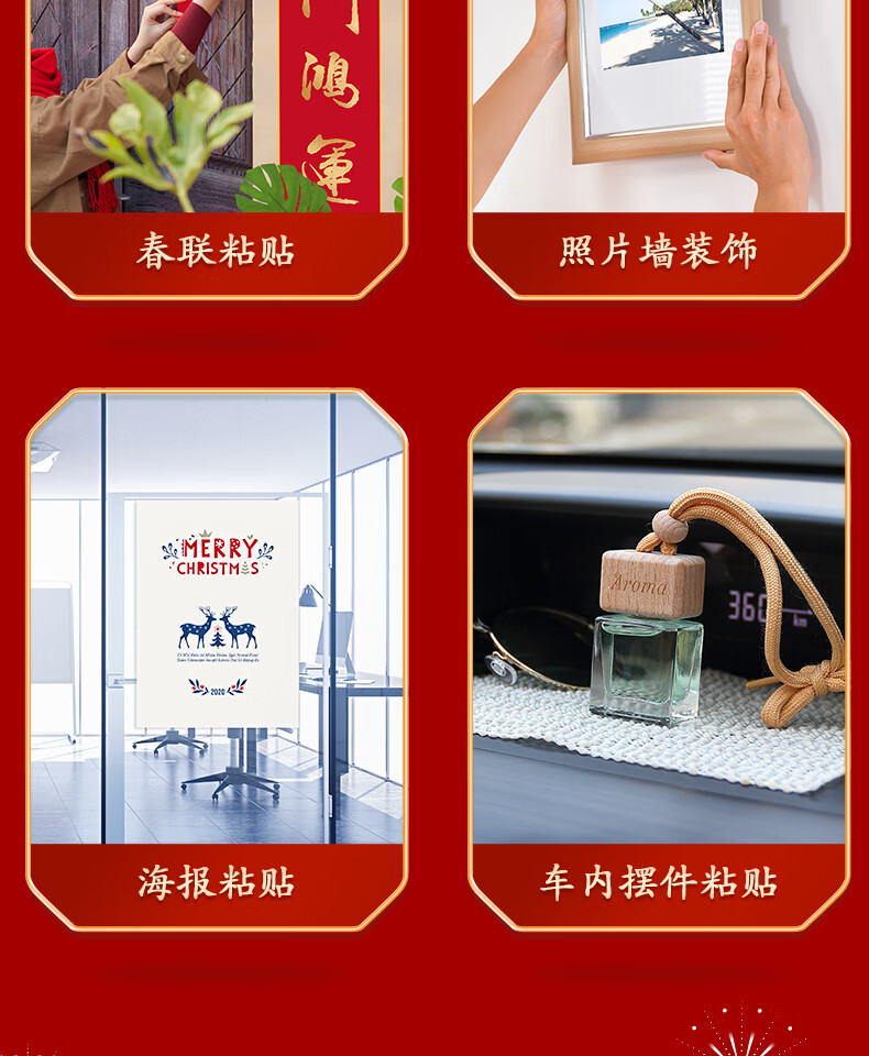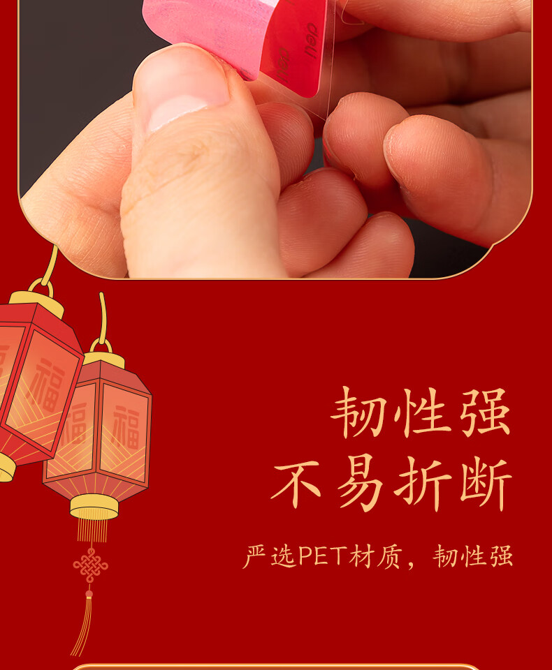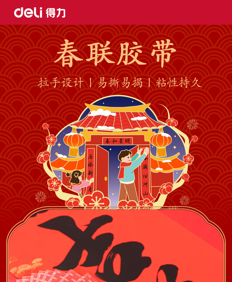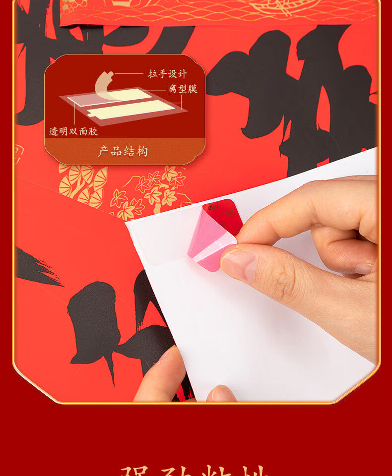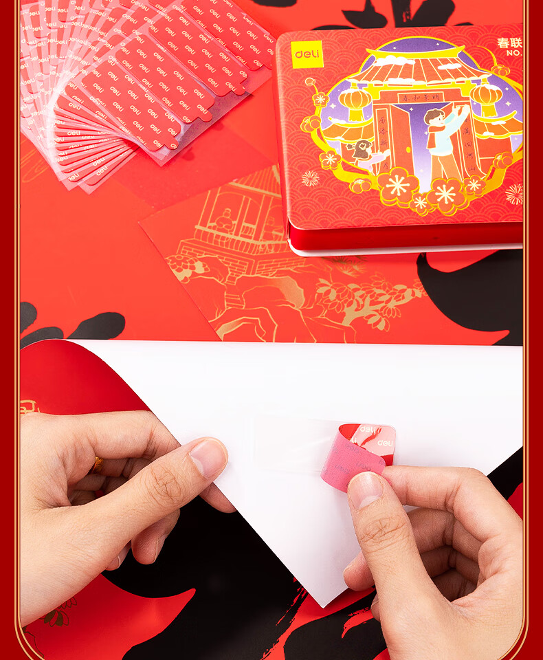 得力(deli)春联胶带 对联双面胶带 纳米无痕双面胶透明胶带喜庆张贴 可撕胶反复使用福字贴对联神器 【好事成双】2盒120片/无痕不伤墙