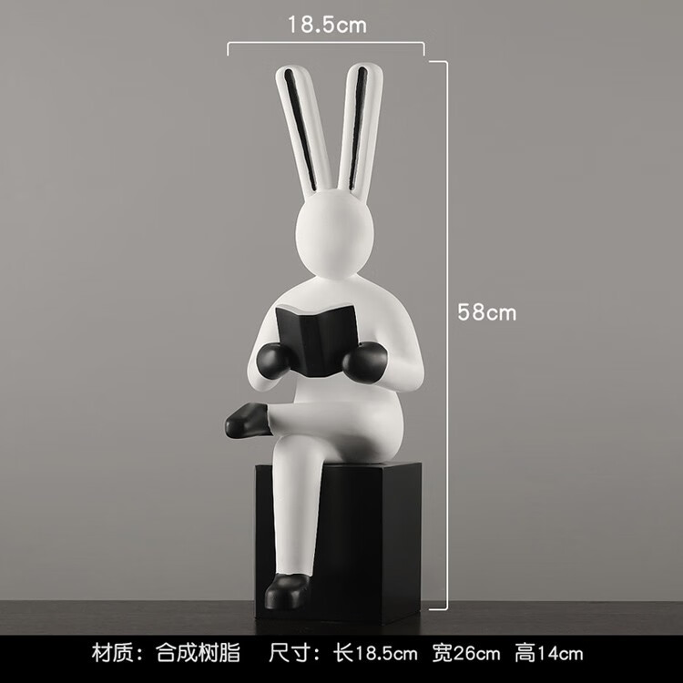 裕谷现代简约轻奢创意摆件抽象艺术雕塑办公室卧室桌面家居橱窗摆设 大号看书兔子(白色)