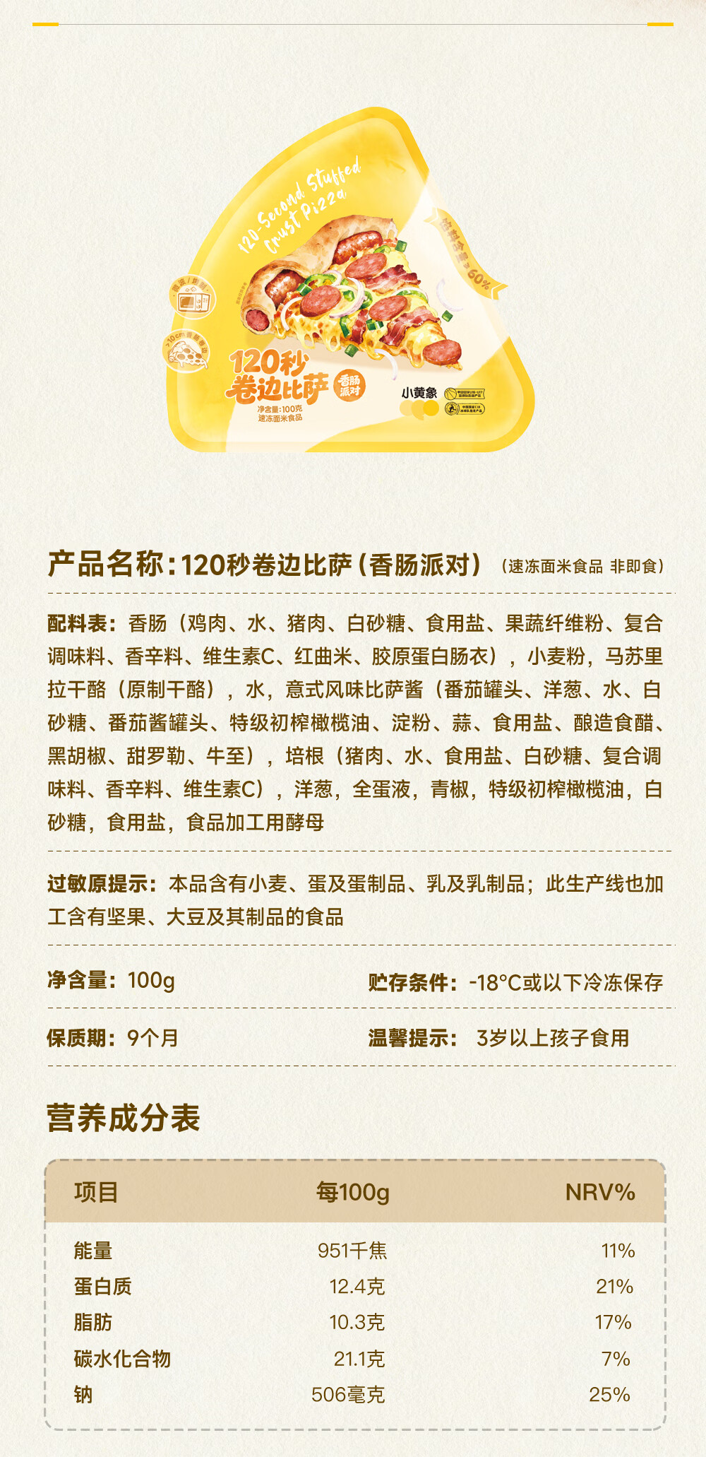 小黄象香肠披萨面点烘焙儿童早餐速食半成品空气炸锅美食 【100g*8袋】香肠比萨