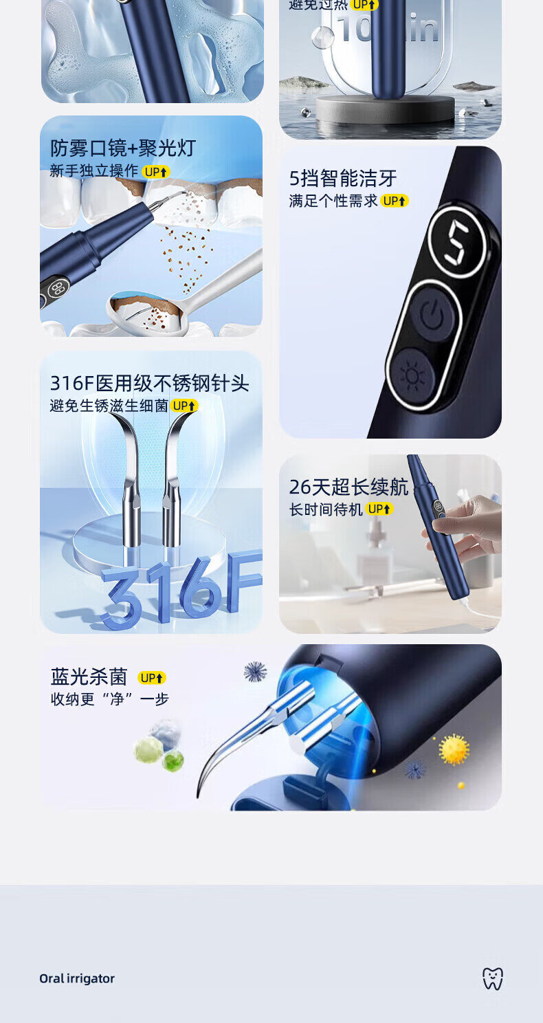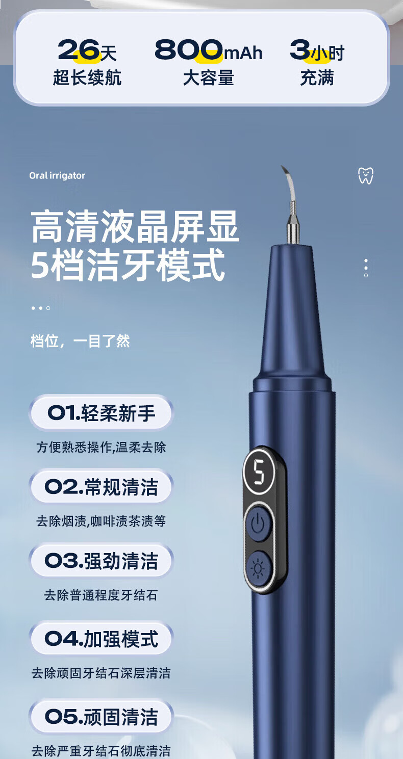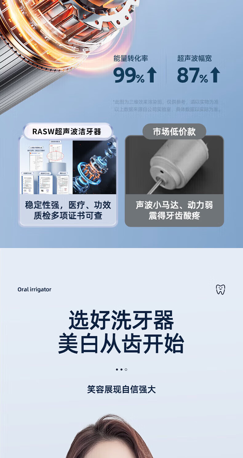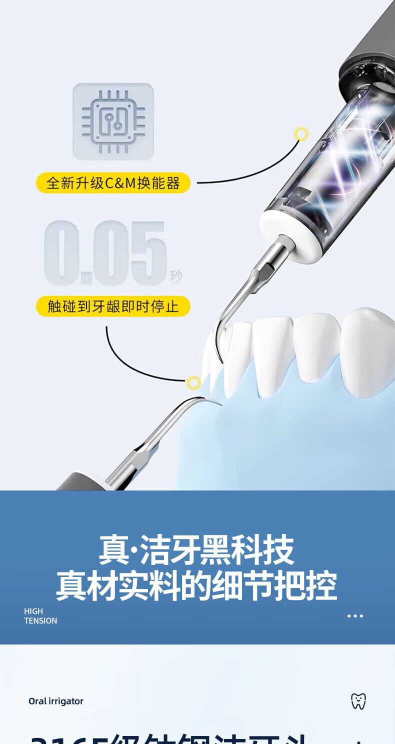 RASW德国牙结石去除器真超声波洁牙器洗牙仪可视化冲牙器礼物电动剔牙神器小家电清除牙垢工具烟渍清除 【可视白】五档+1500万像素+紫光杀菌 德国品牌 超清可视 精准清洁