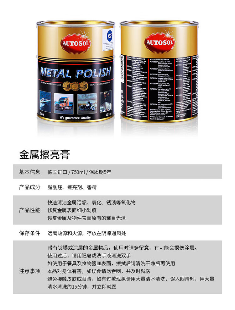 AUTOSOL欧德素金属擦亮膏 擦铜膏除锈抛光膏 去污去氧化金属清洁除锈剂 德国进口 50g 1支